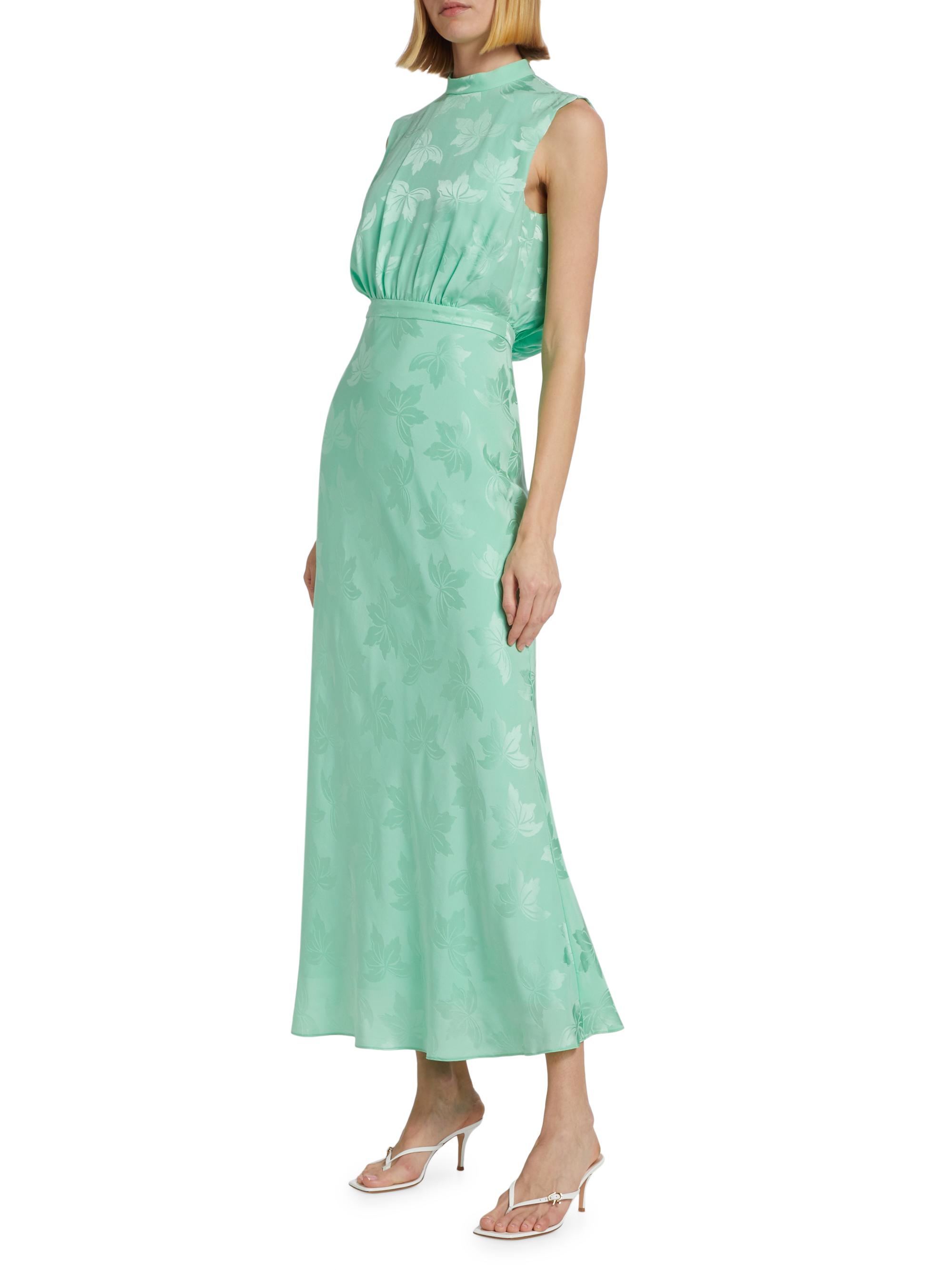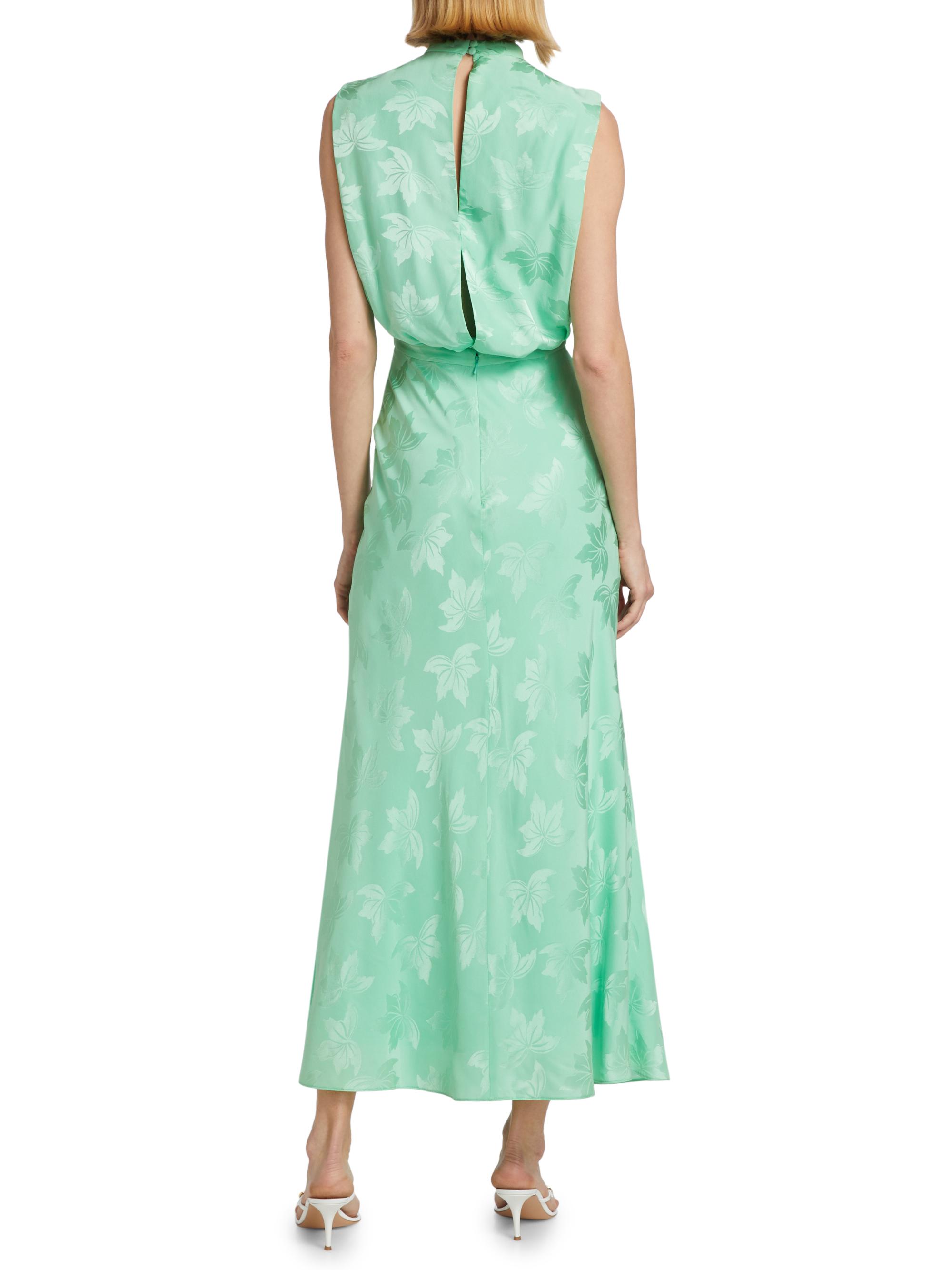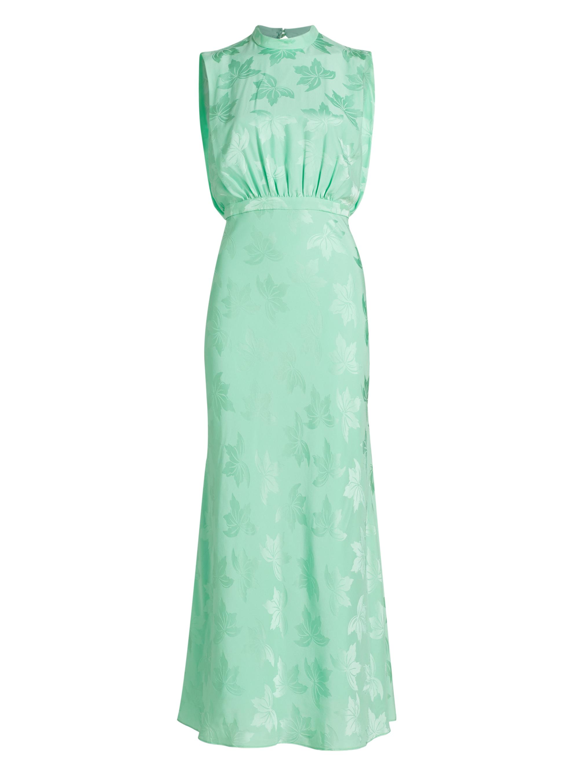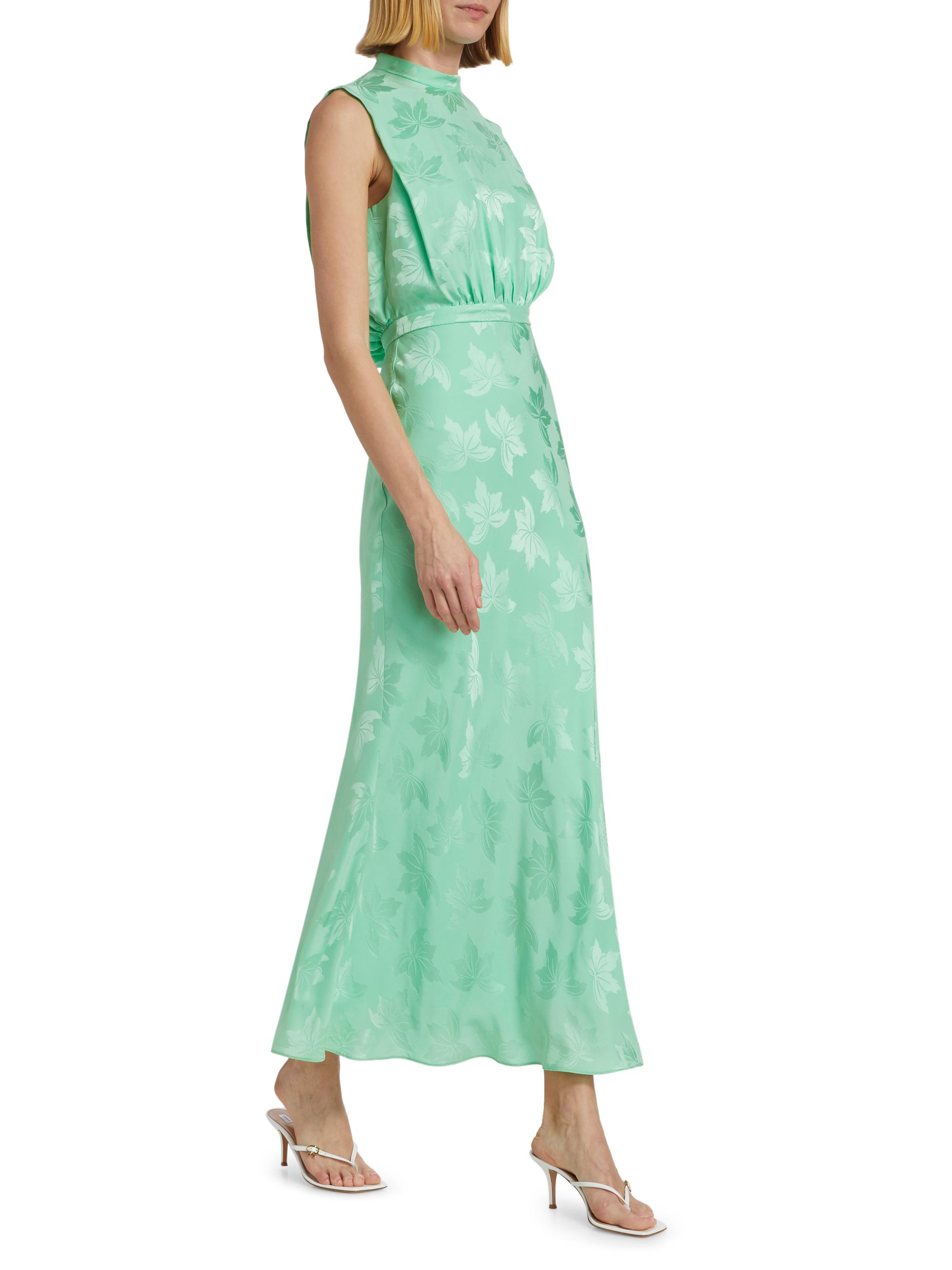 Saloni Stamped Silk Sleeveless Midi-Dress MIST GREEN