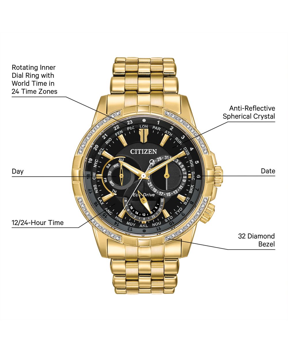 Citizen Eco Drive Mens Calendrier Diamond Accent Gold Tone Stainless Steel Bracelet Watch 44mm