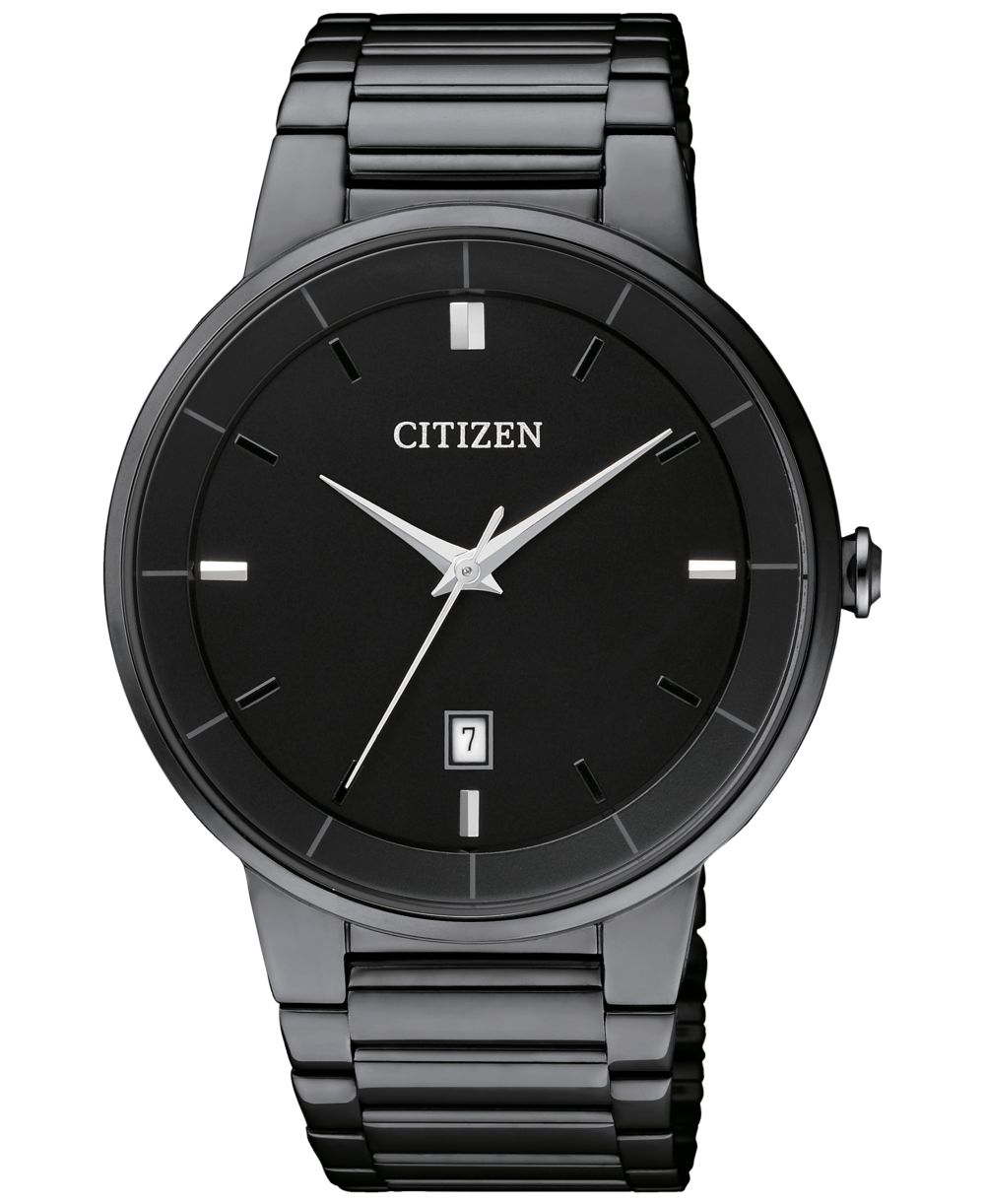 Citizen Mens Quartz Black Ion Plated Stainless Steel Bracelet Watch 40mm BI5017 50E