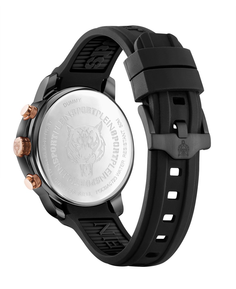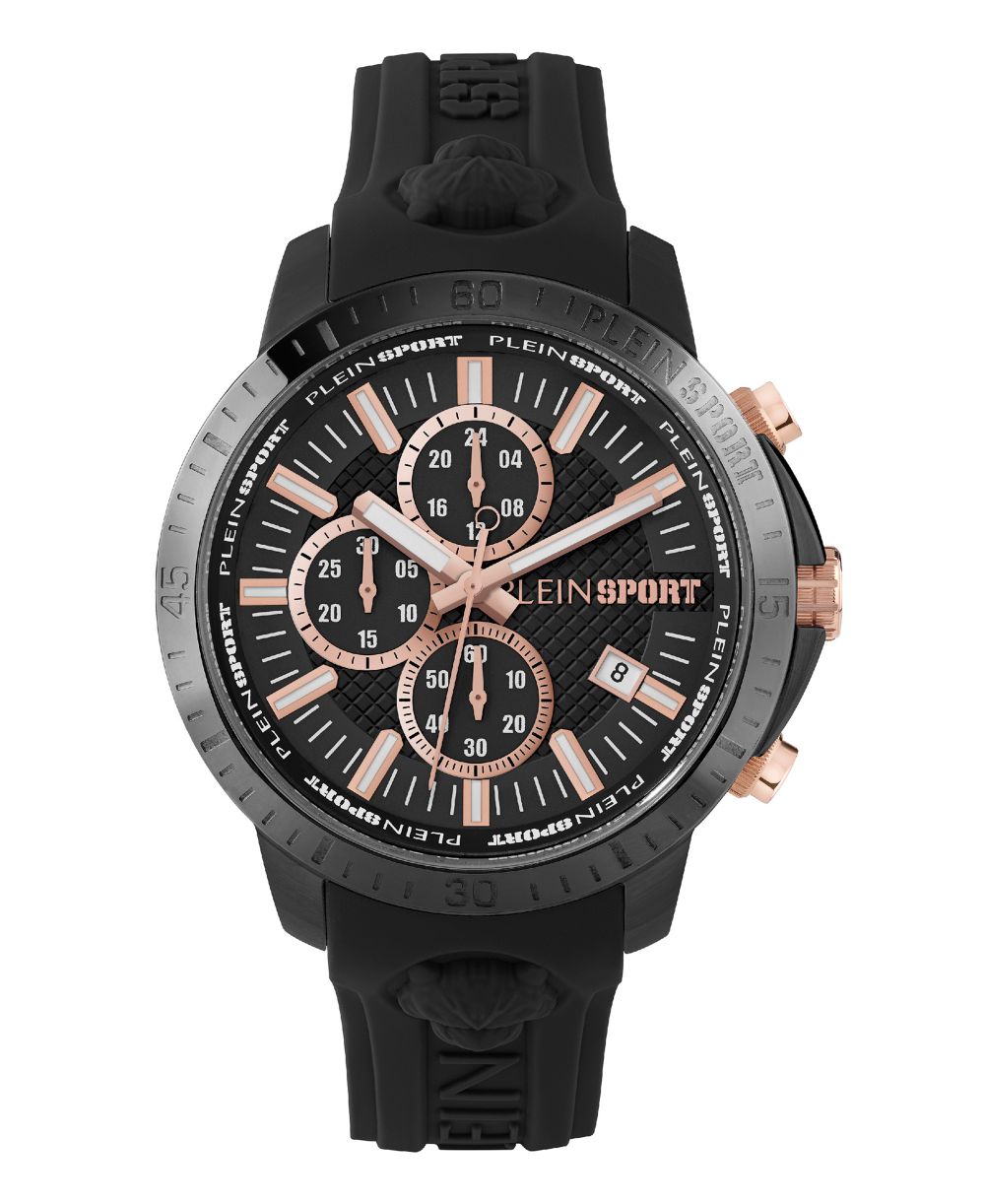 Plein Sport Mens Chronograph Date Quartz Plein Gain Black Silicone Strap Watch 43mm