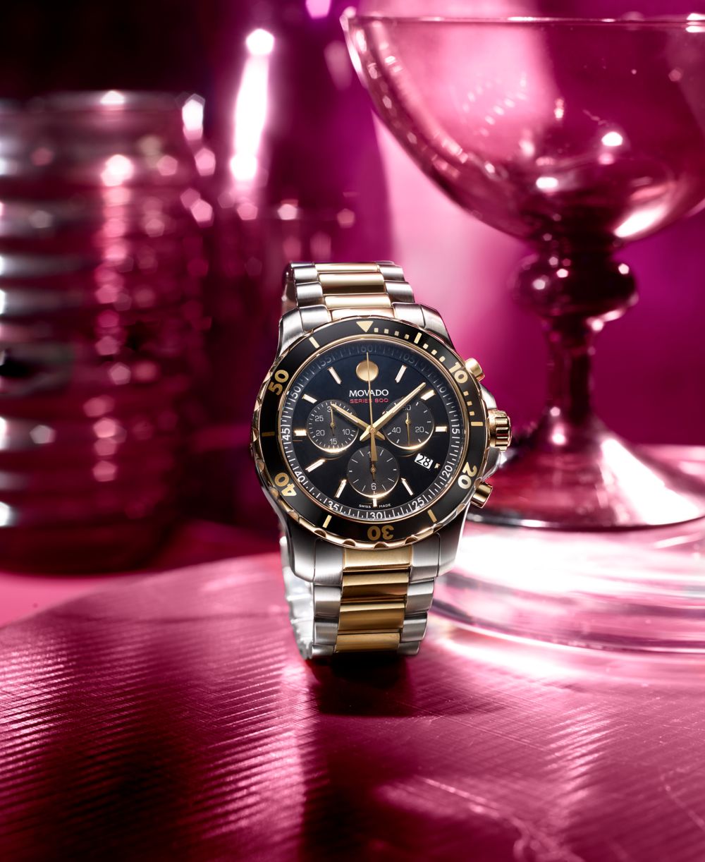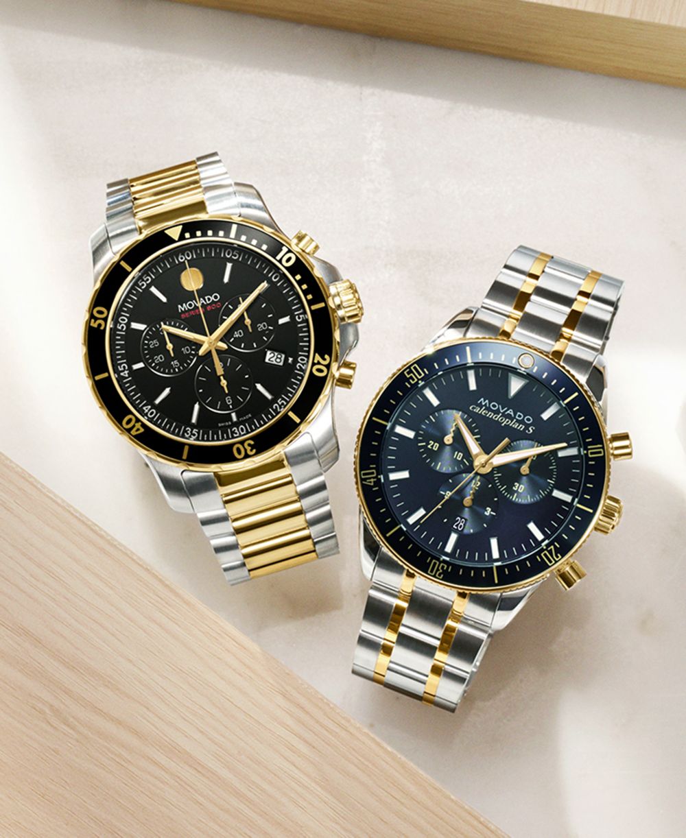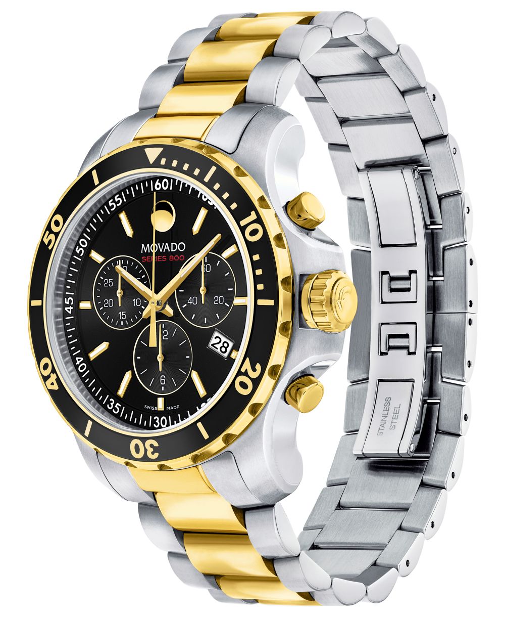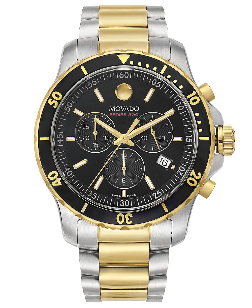 Movado Mens Swiss Chronograph Series 800 Two Tone PVD Stainless Steel Bracelet Diver Watch 42mm