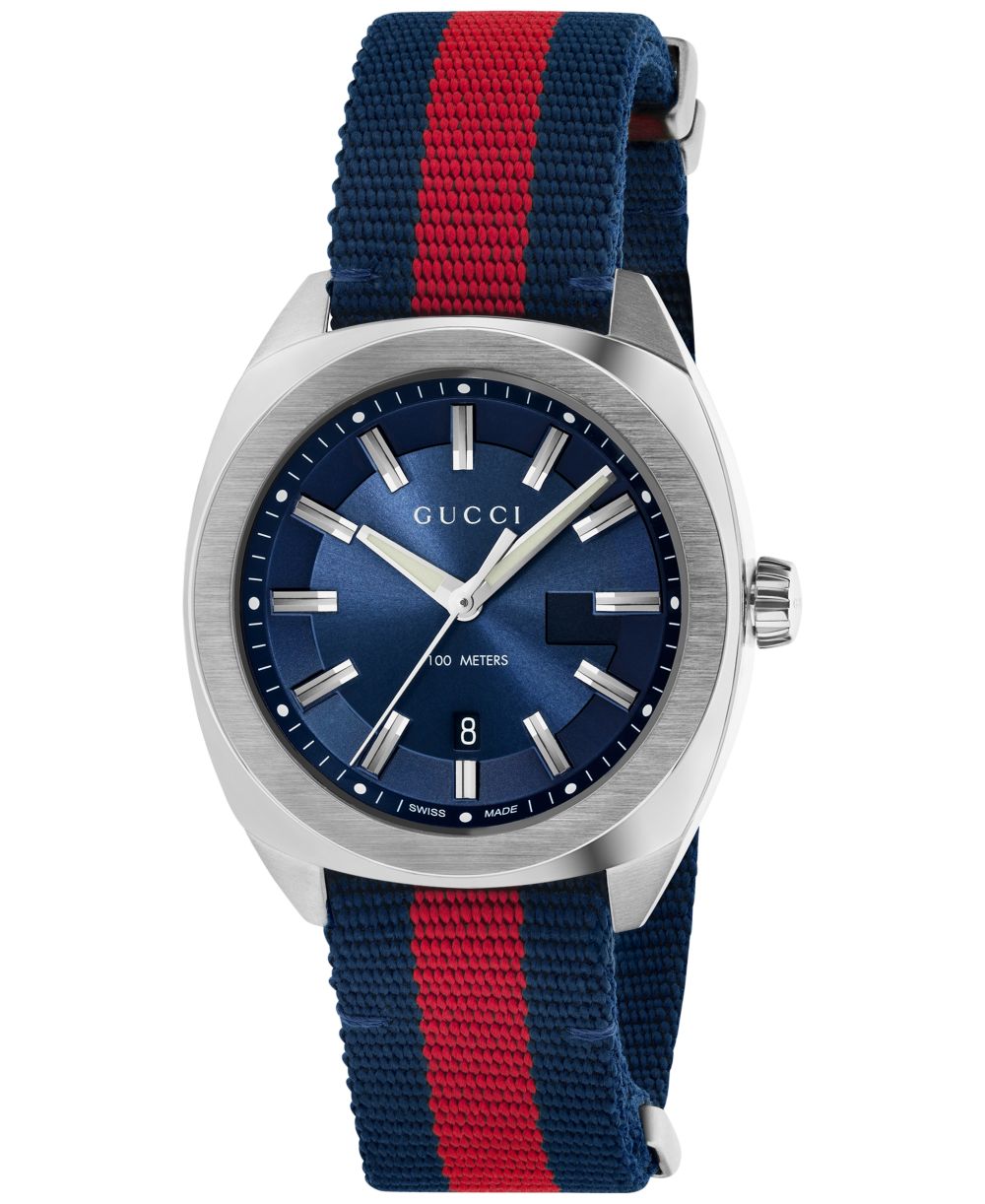 Gucci Mens GG2570 Swiss Blue Red Blue Web Nylon Strap Watch 41mm YA142304