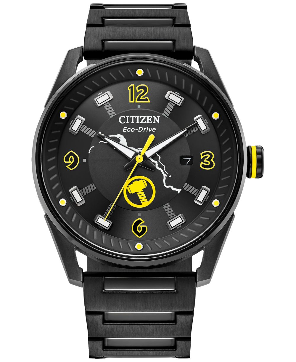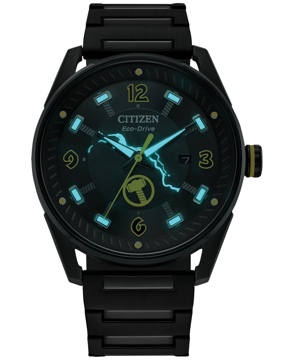 Citizen Mens Eco Drive Marvel Thor Black Ion Plated Stainless Steel Bracelet Watch 42mm