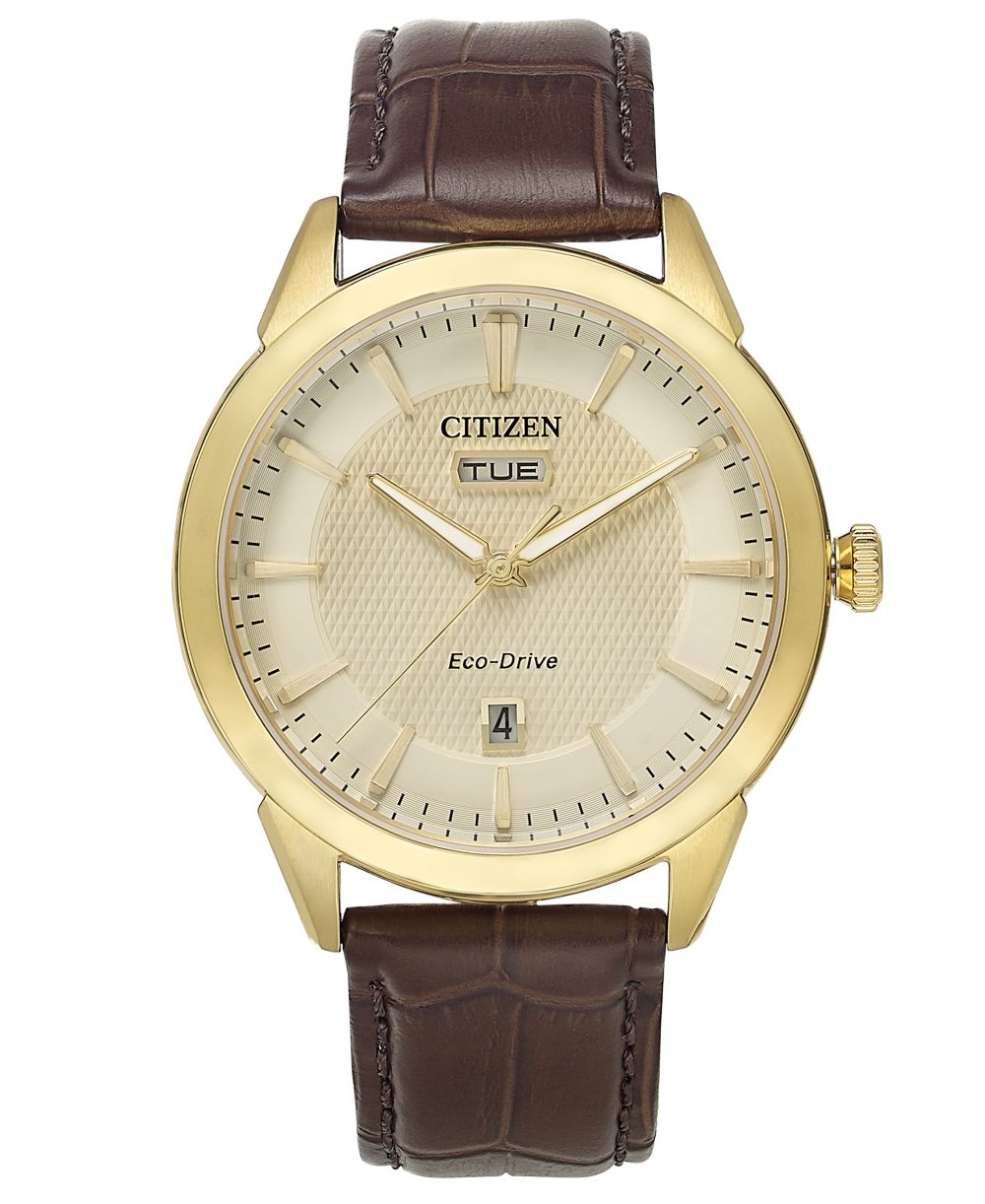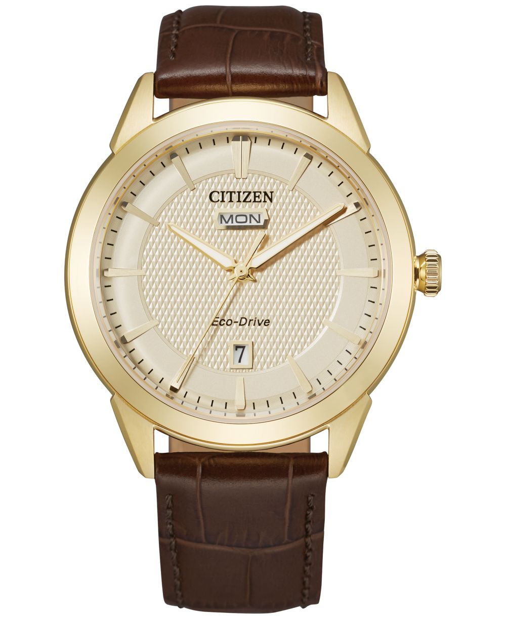 Citizen Eco Drive Mens Corso Brown Leather Strap Watch 40mm