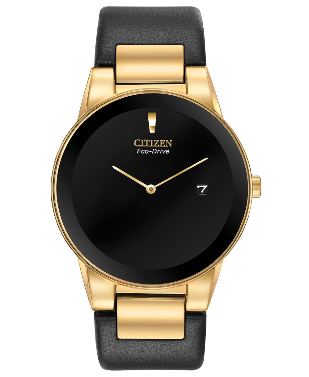 Citizen Eco Drive Mens Axiom Black Leather Strap Watch 40mm