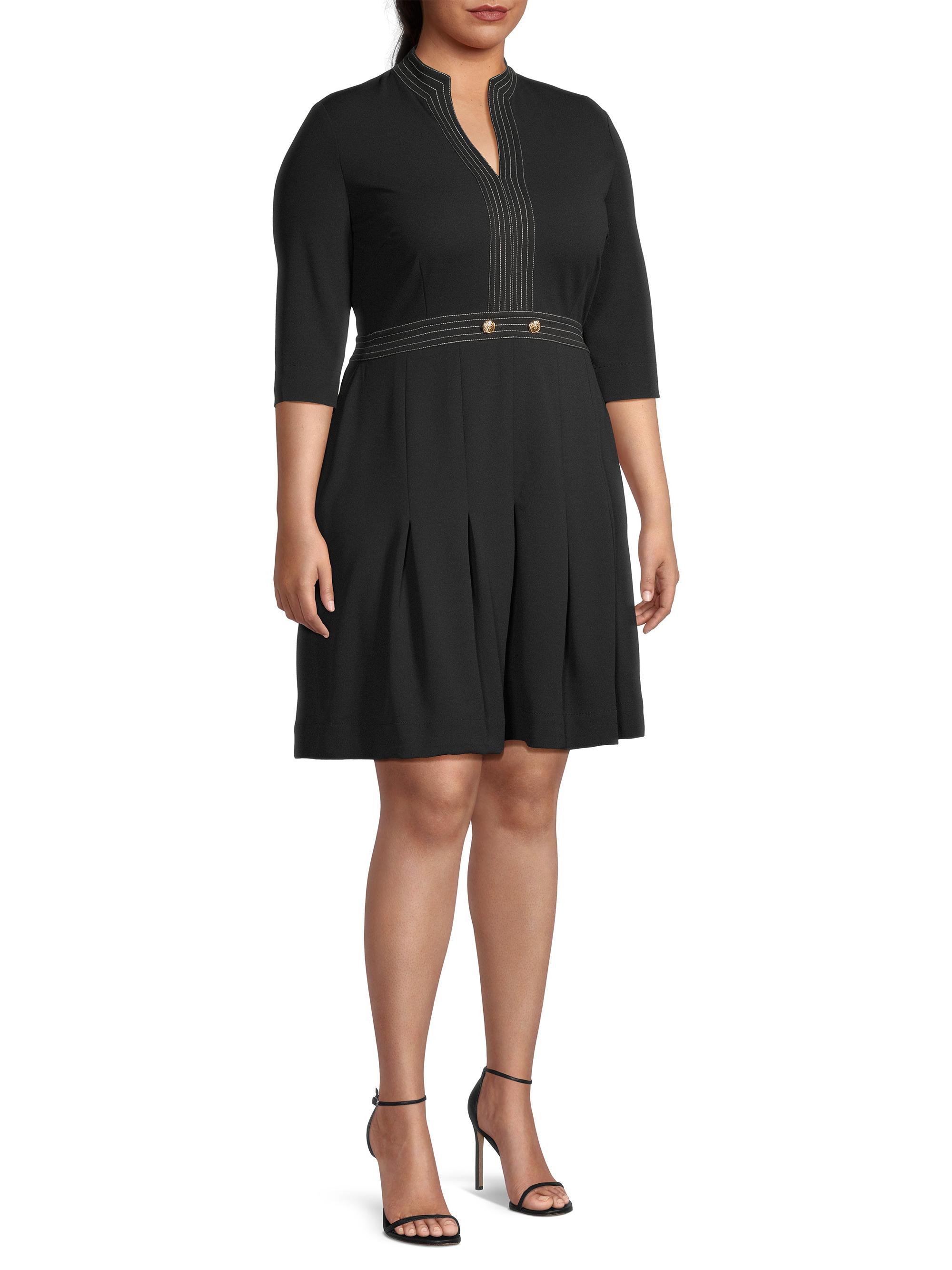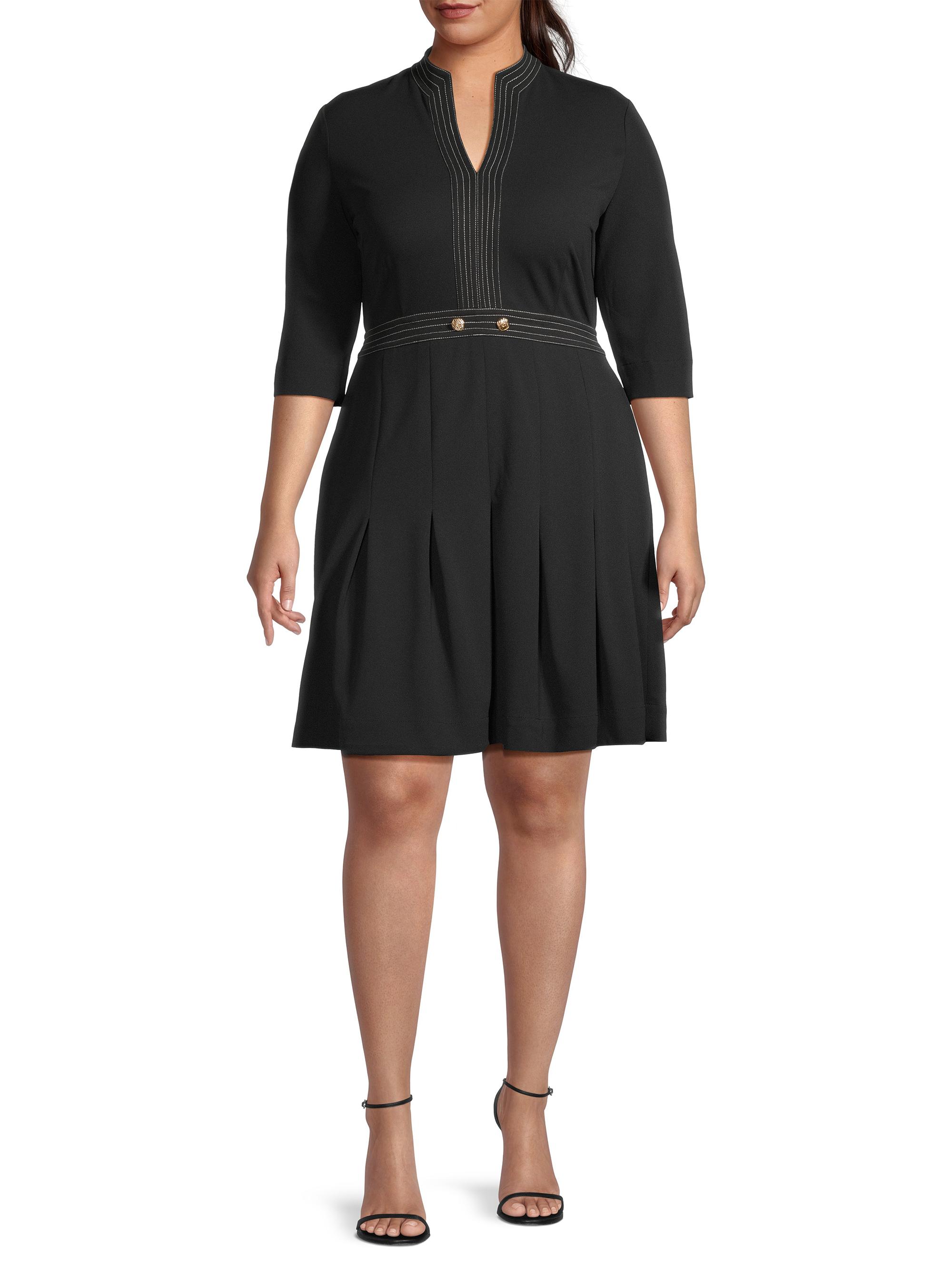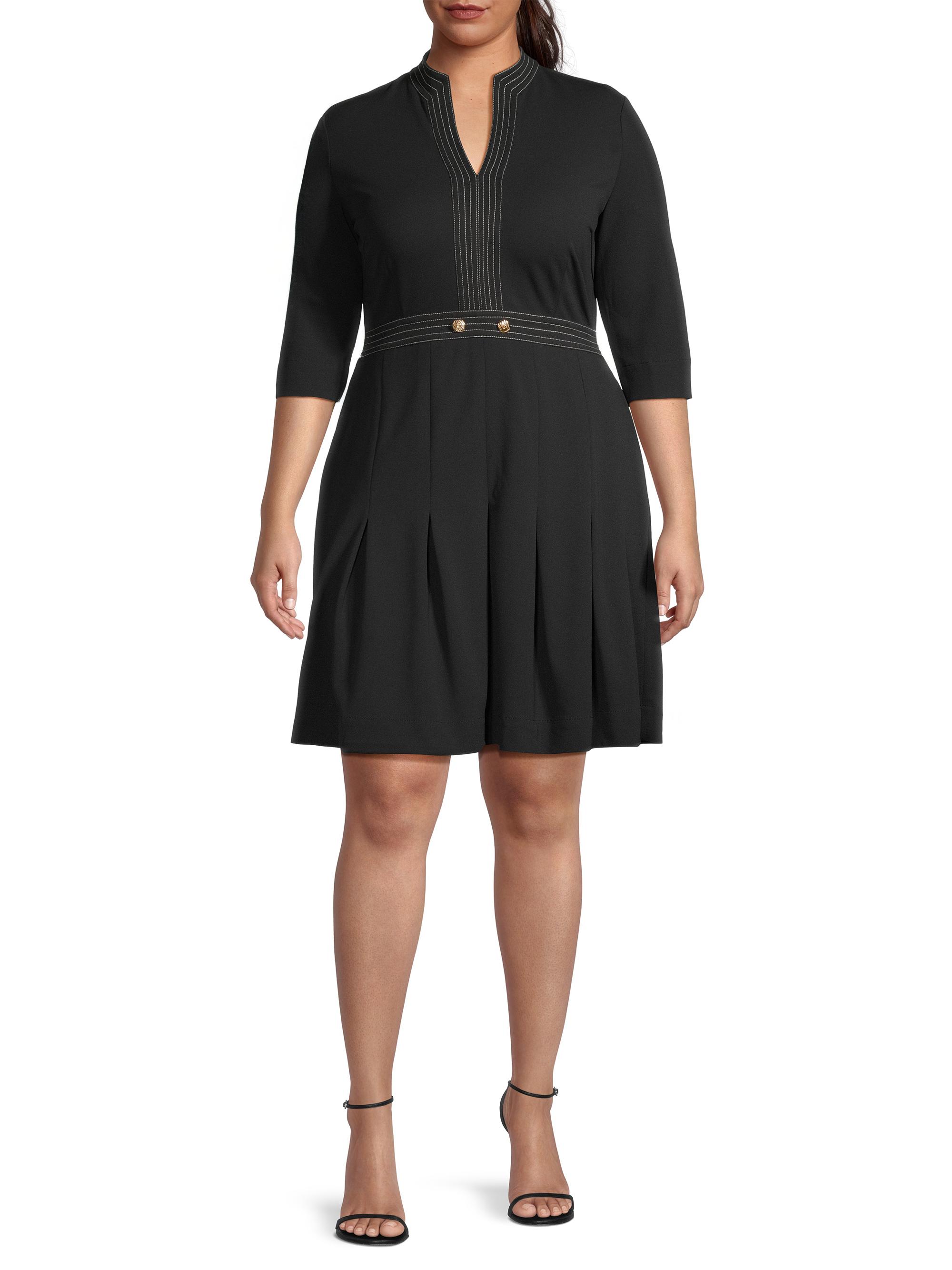 Ming Wang, Plus Size Pleated Knee-Length Dress