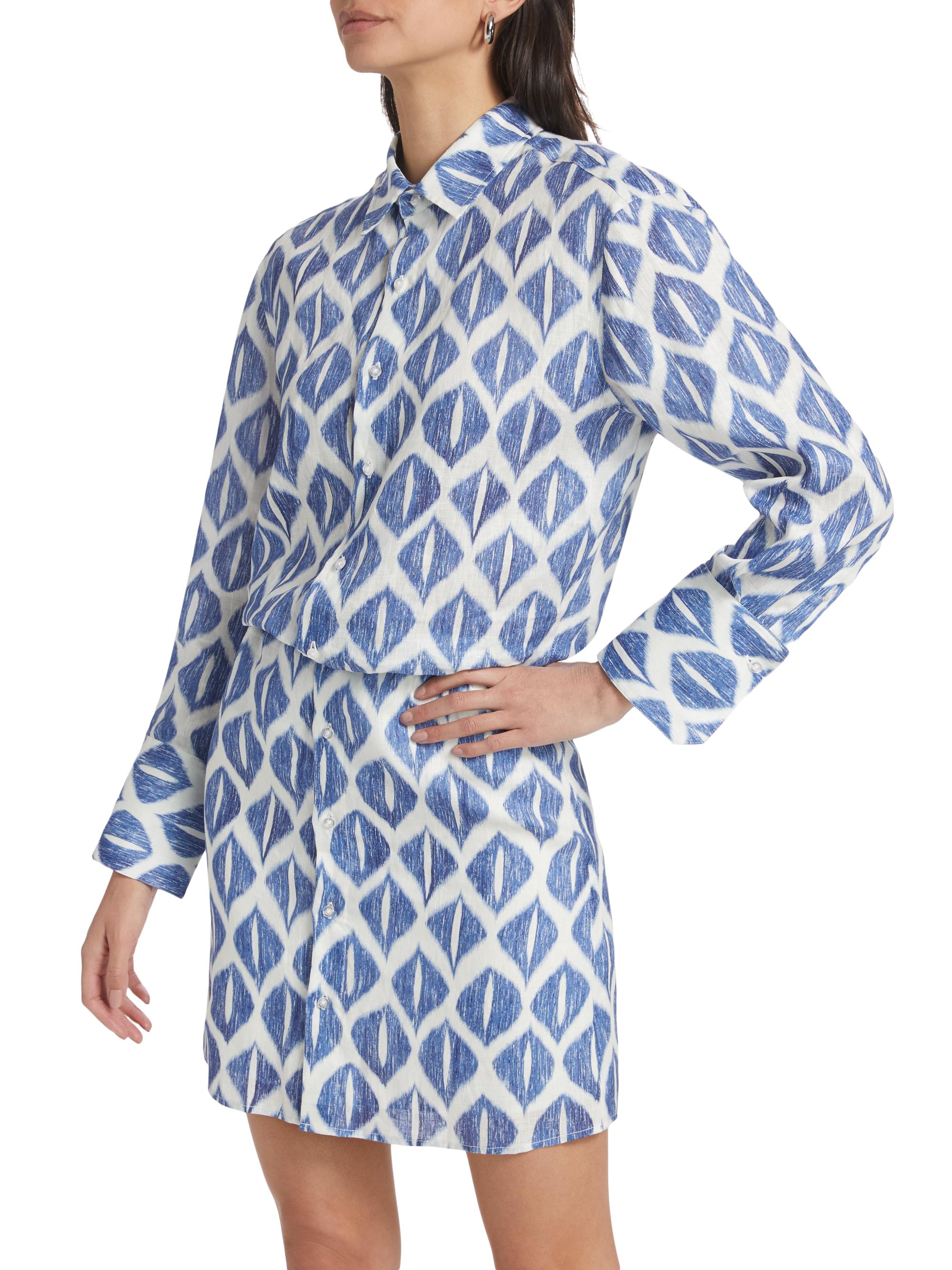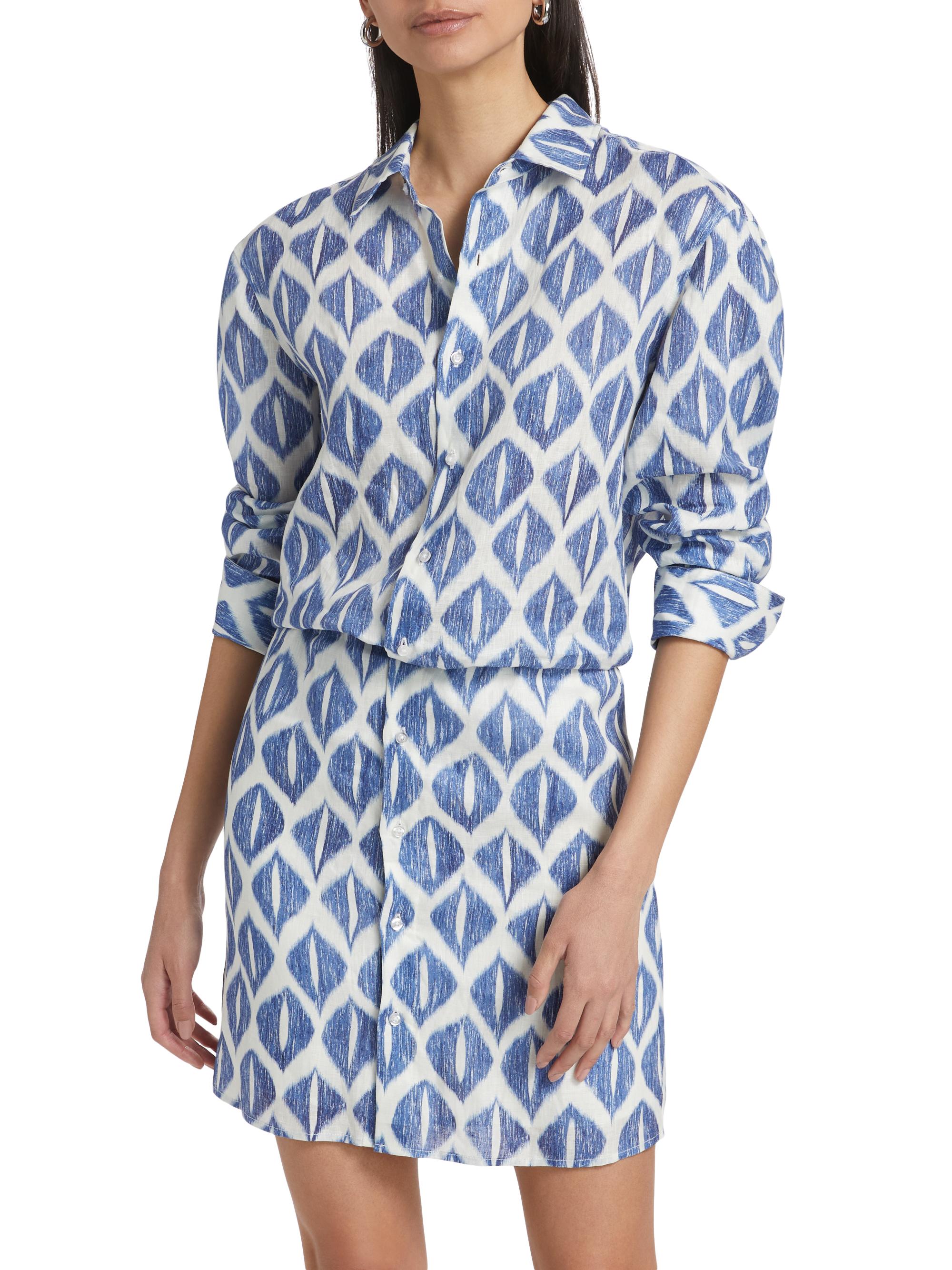 If Only Studio Ikat-Inspired Printed Linen Shirtdress