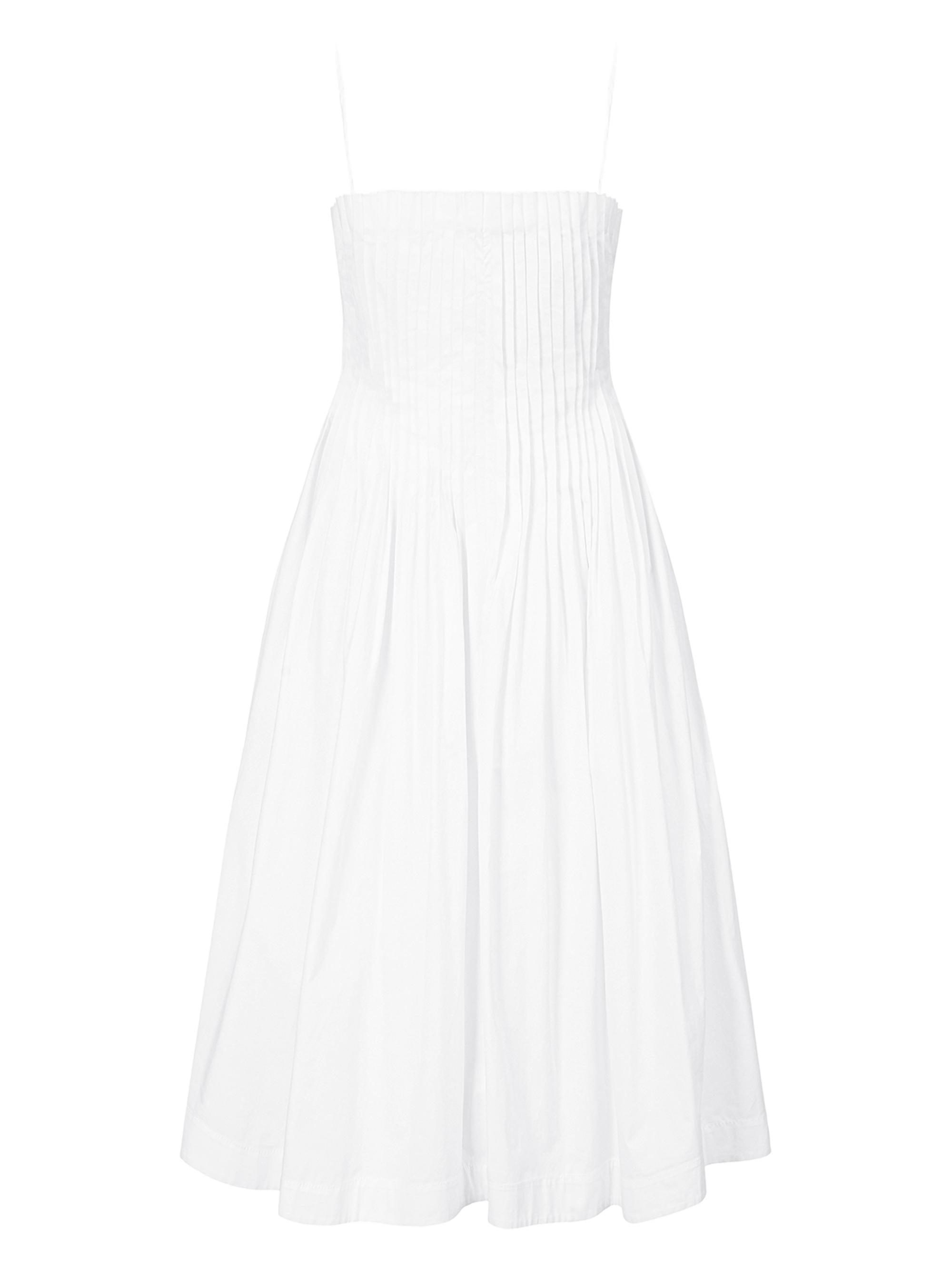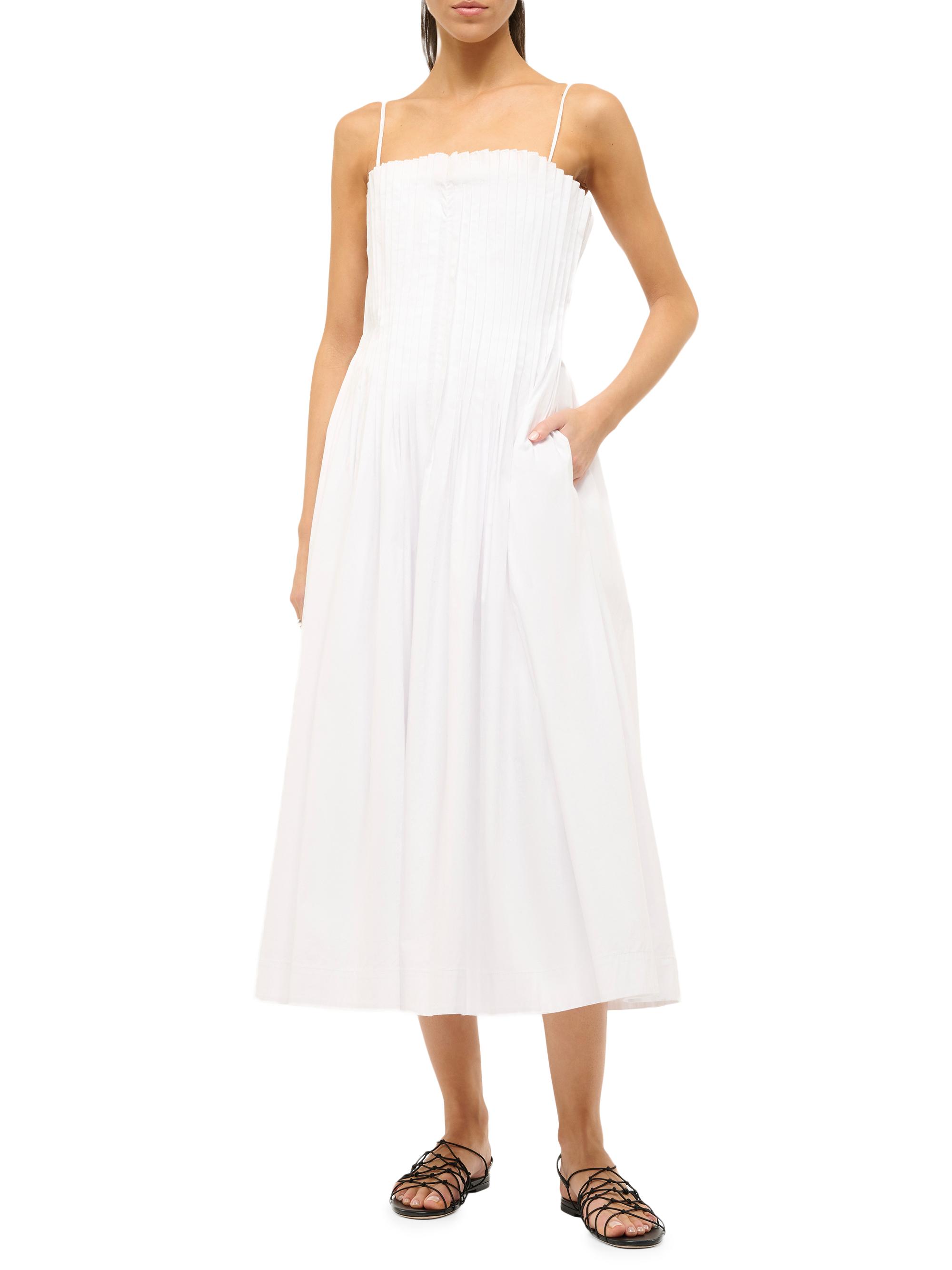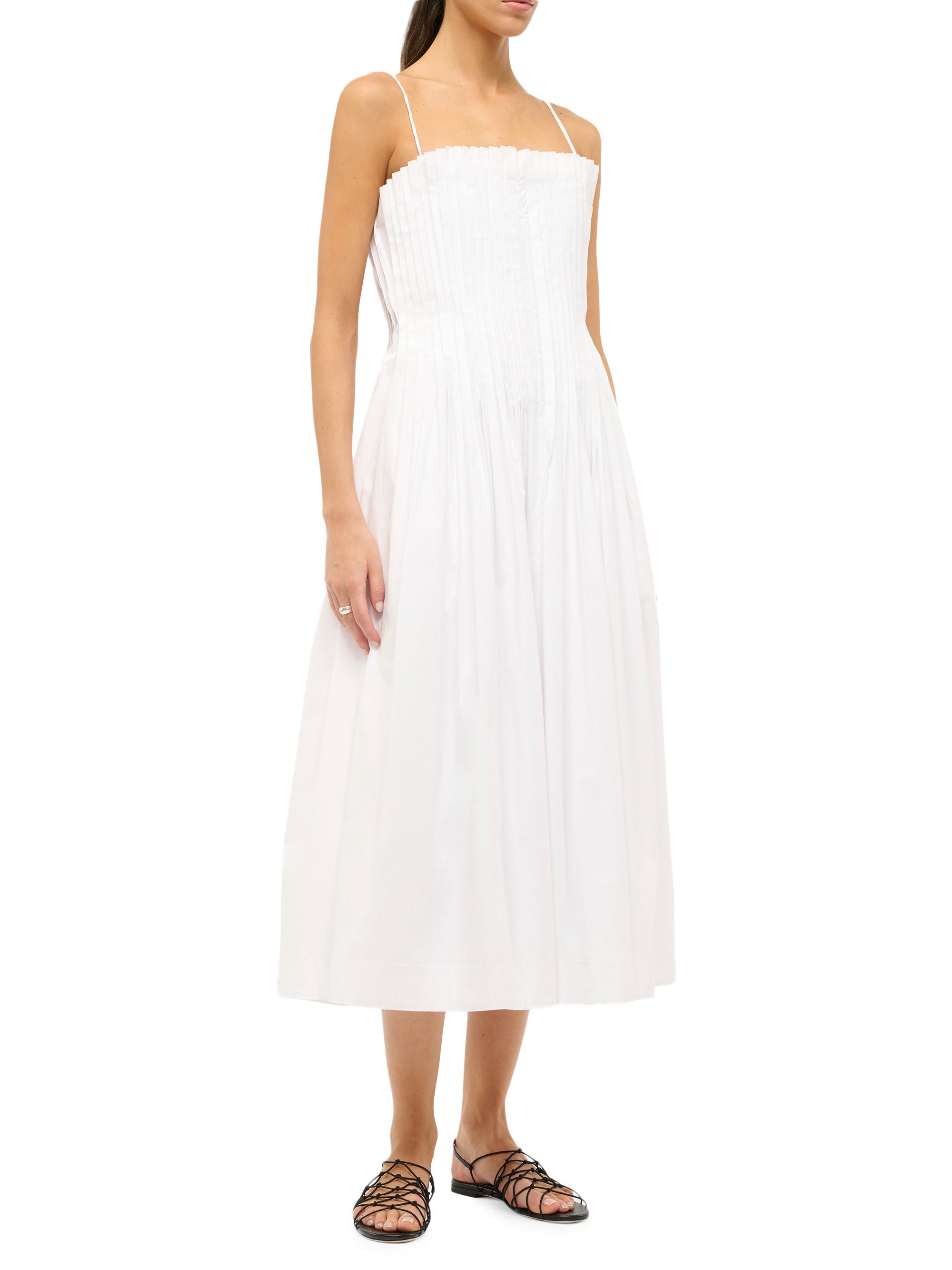 Staud Bella Pleated Cotton-Blend Sleeveless Midi-Dress WHITE