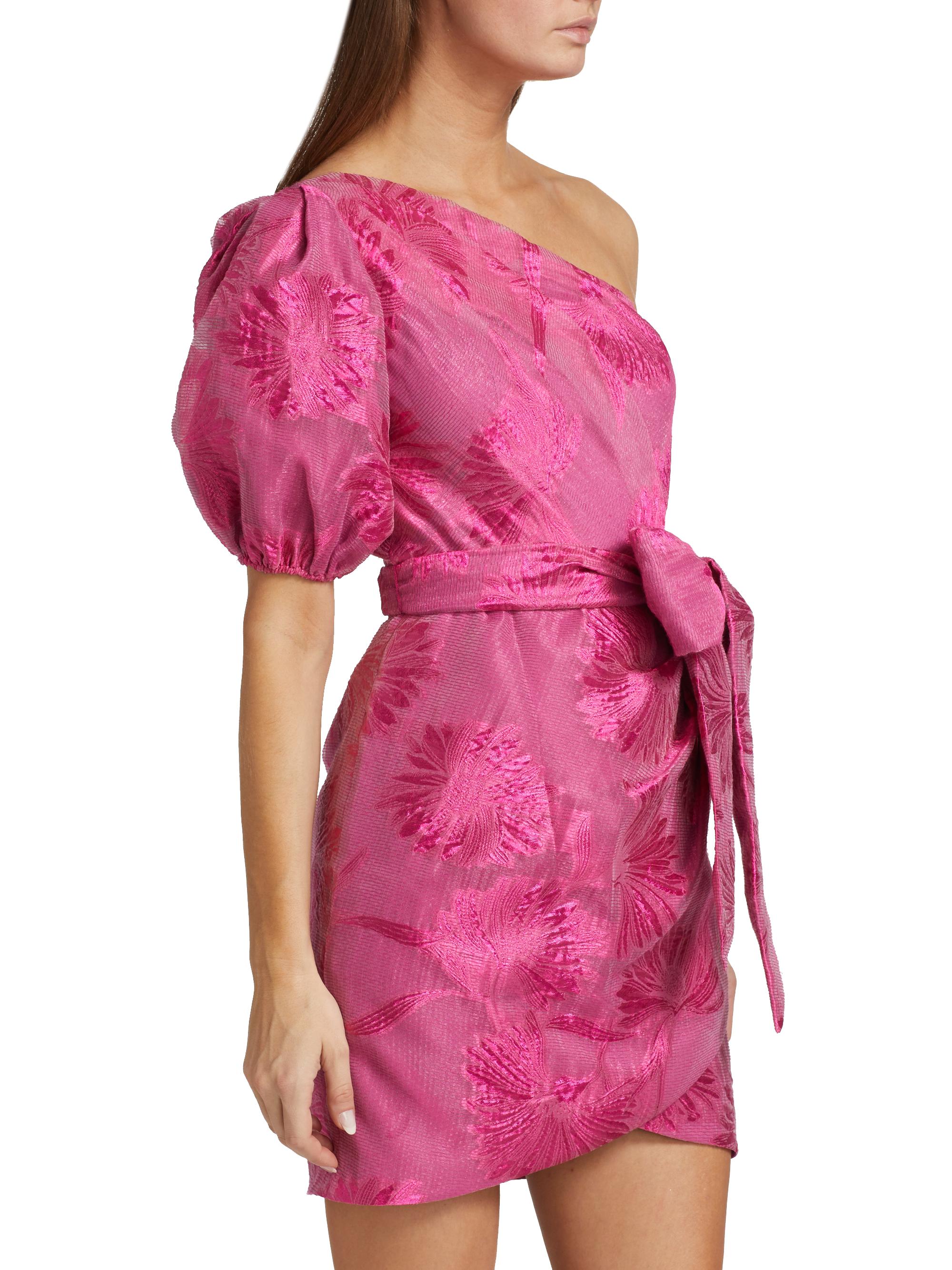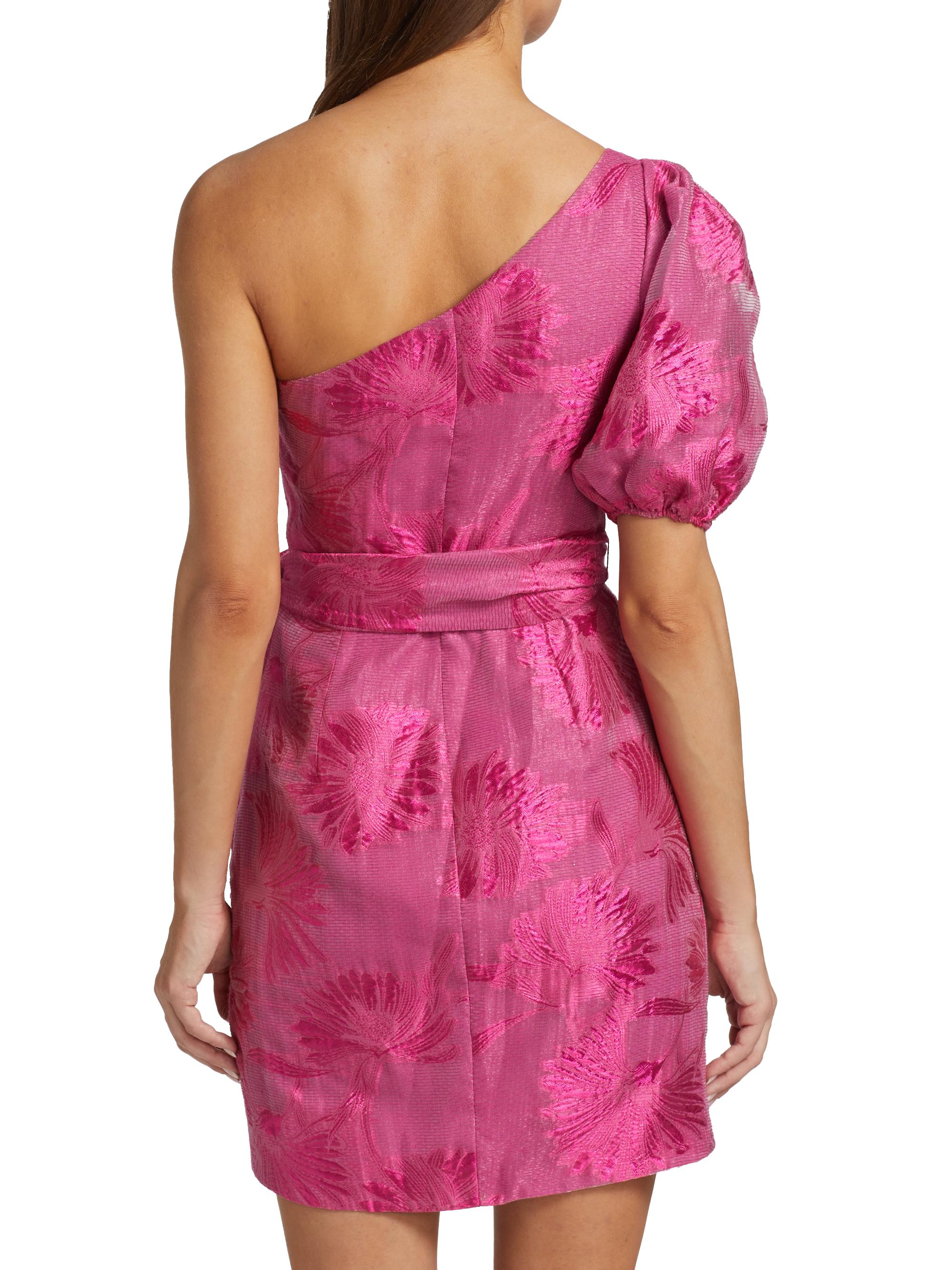 ML Monique Lhuillier One-Shoulder Organza Jacquard Cocktail Dress