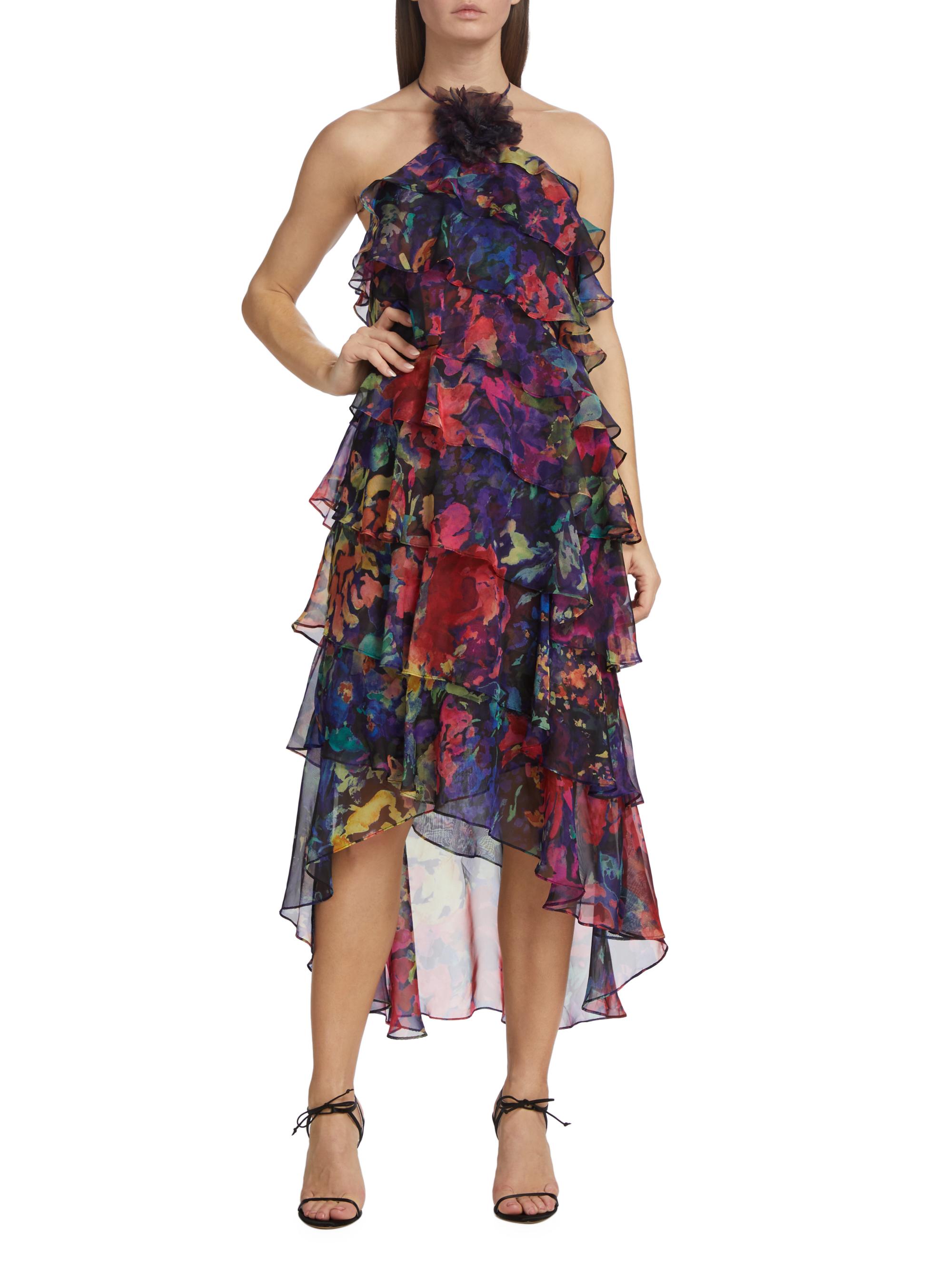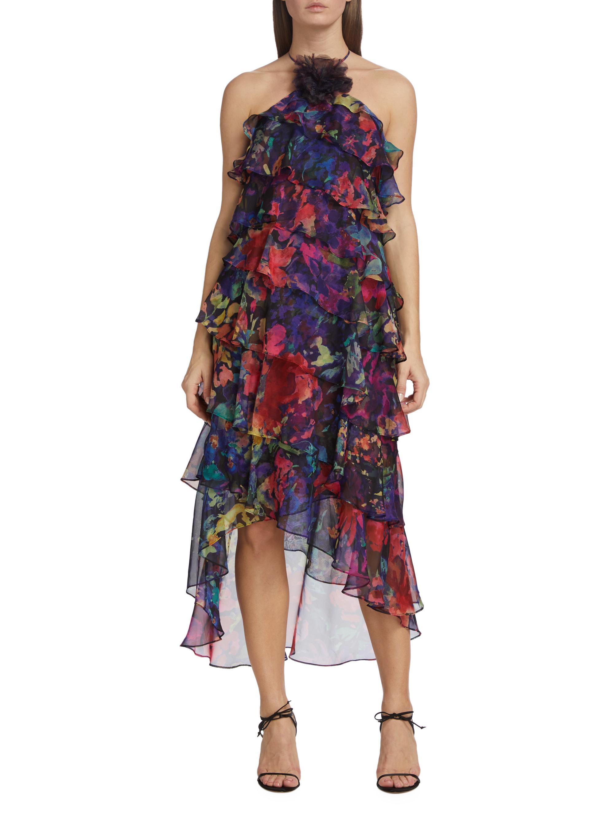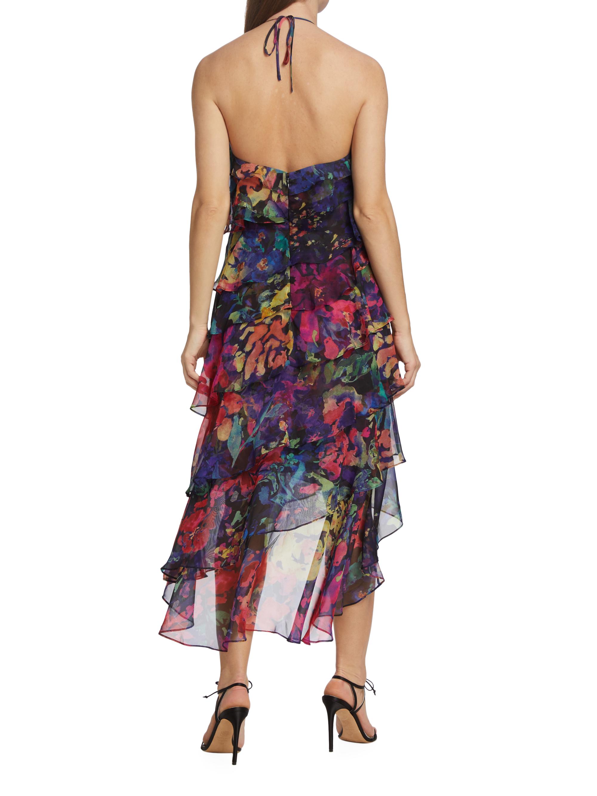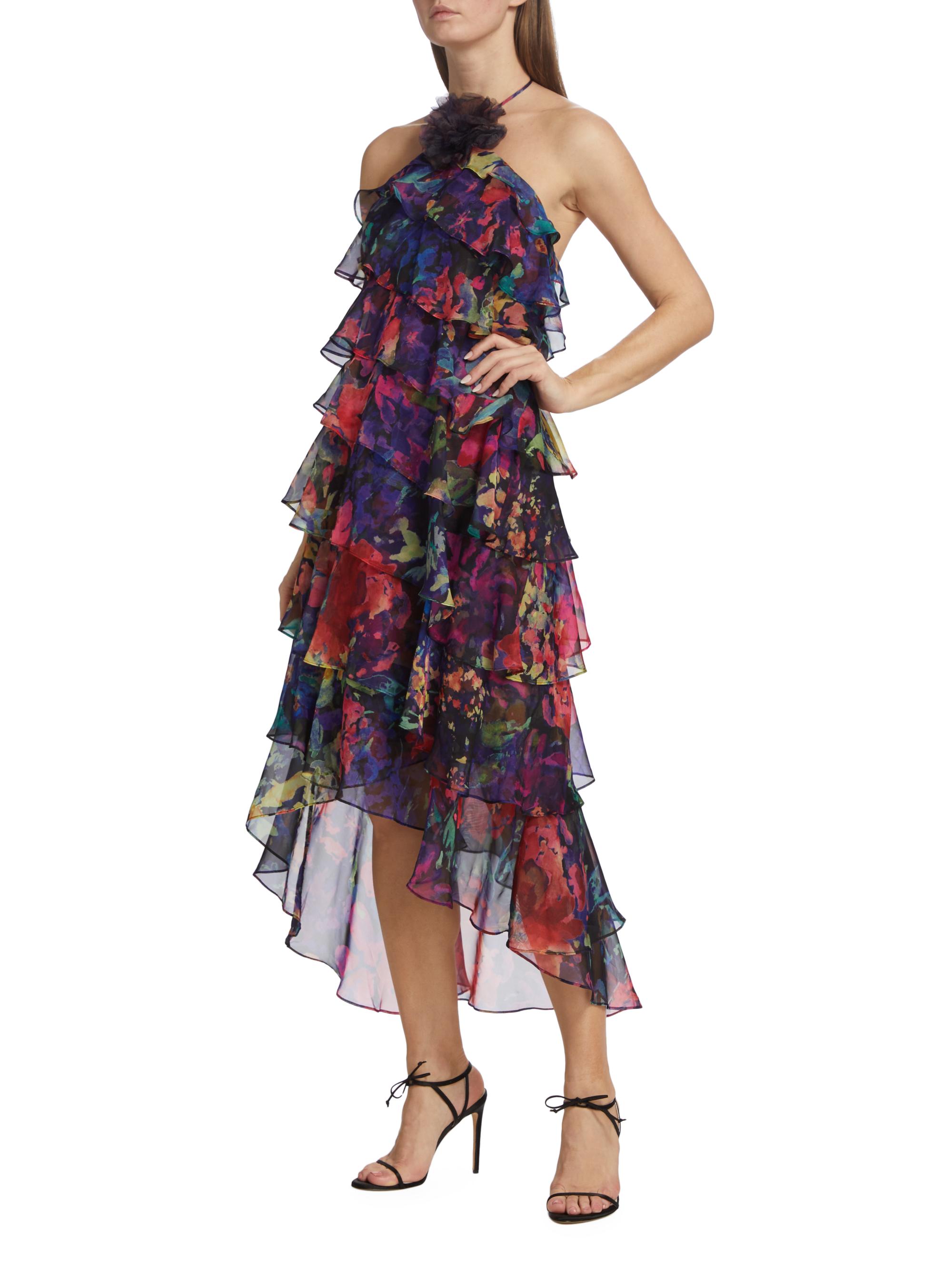Marchesa Notte Chiffon Tiered Midi-Dress