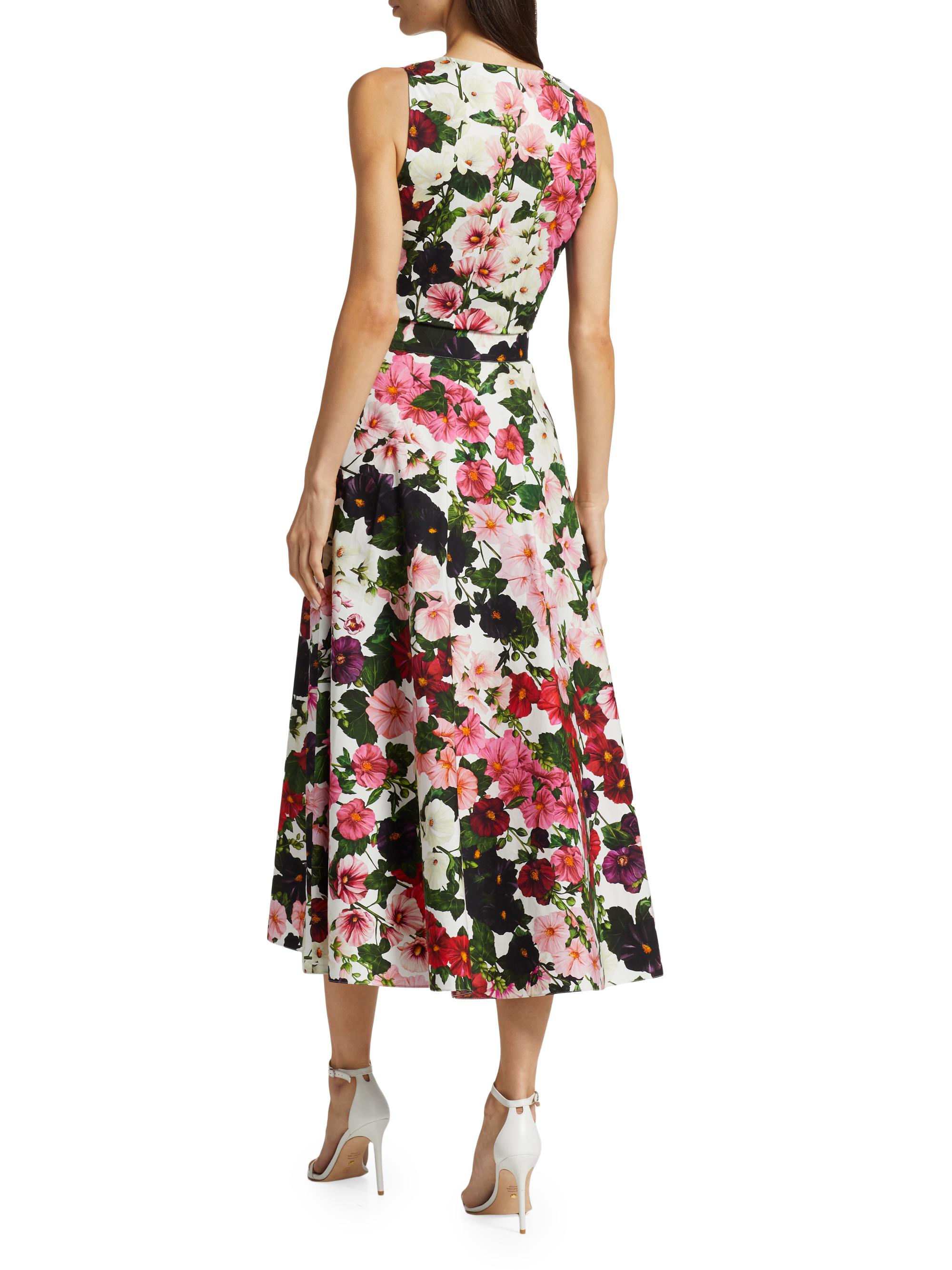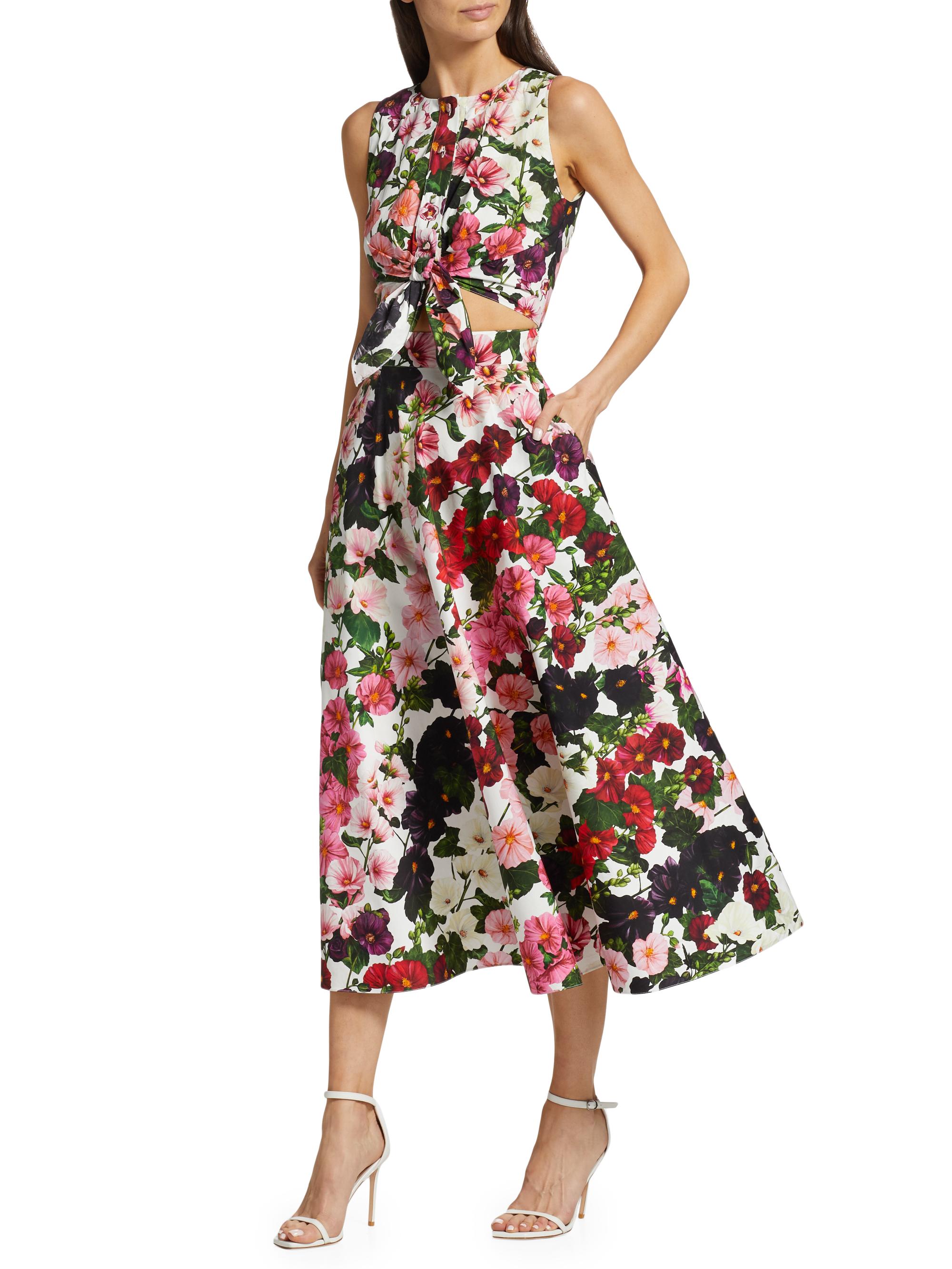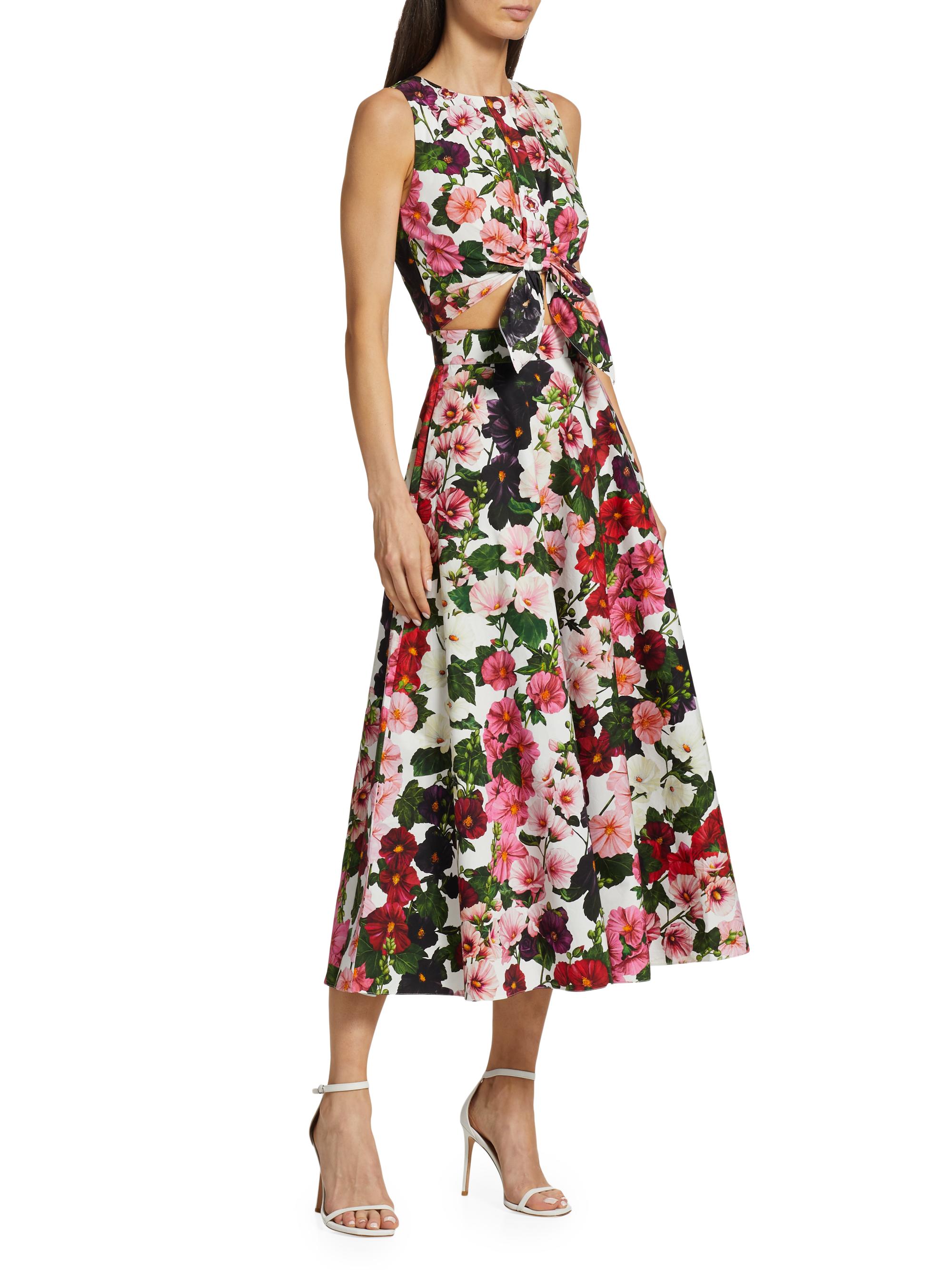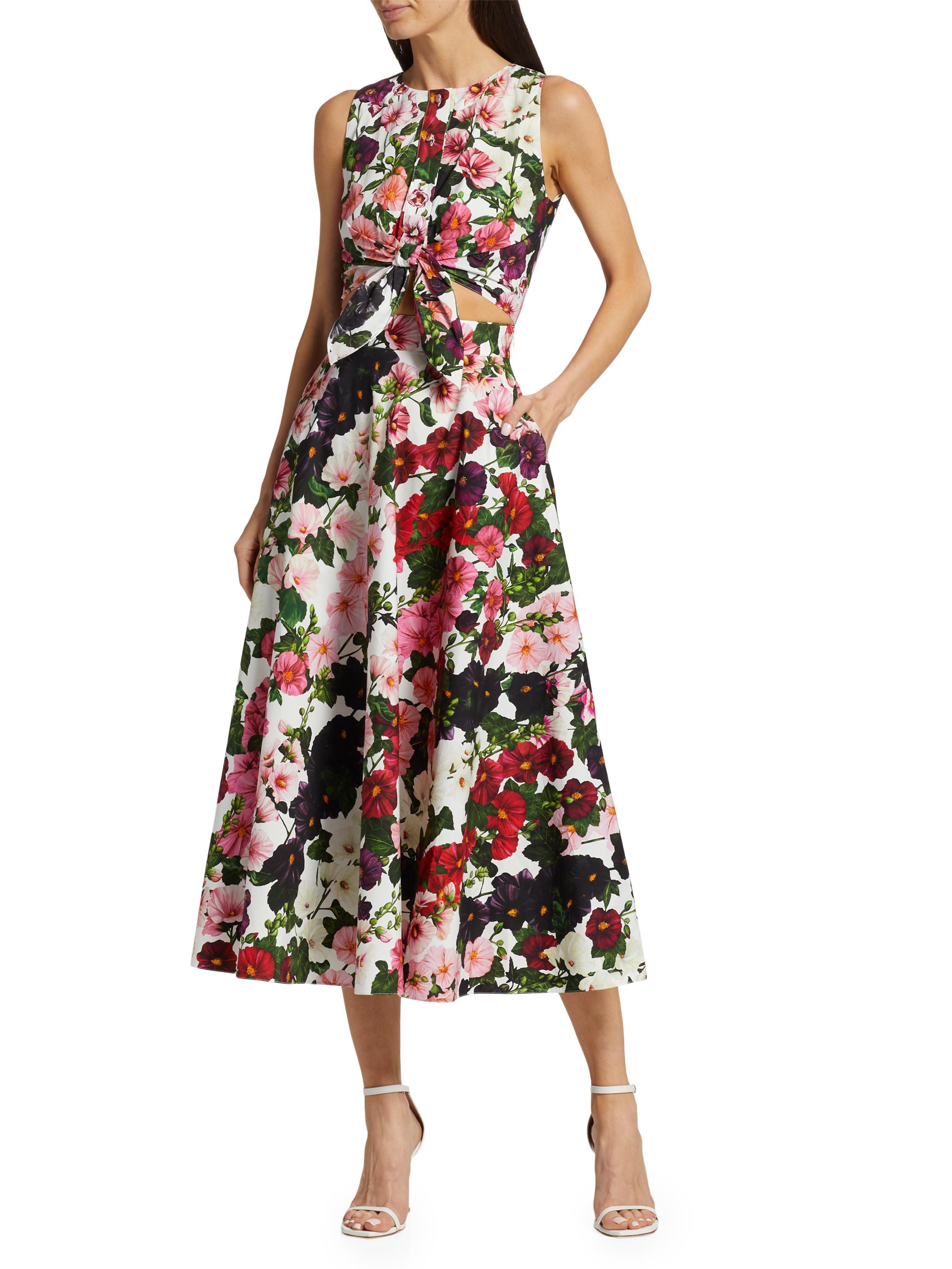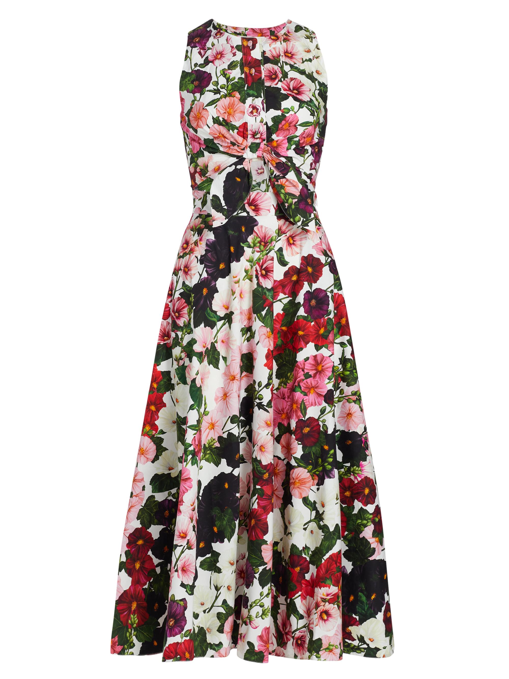 Oscar de la Renta Hollyhocks Print Tie-Waist Shirtdress
