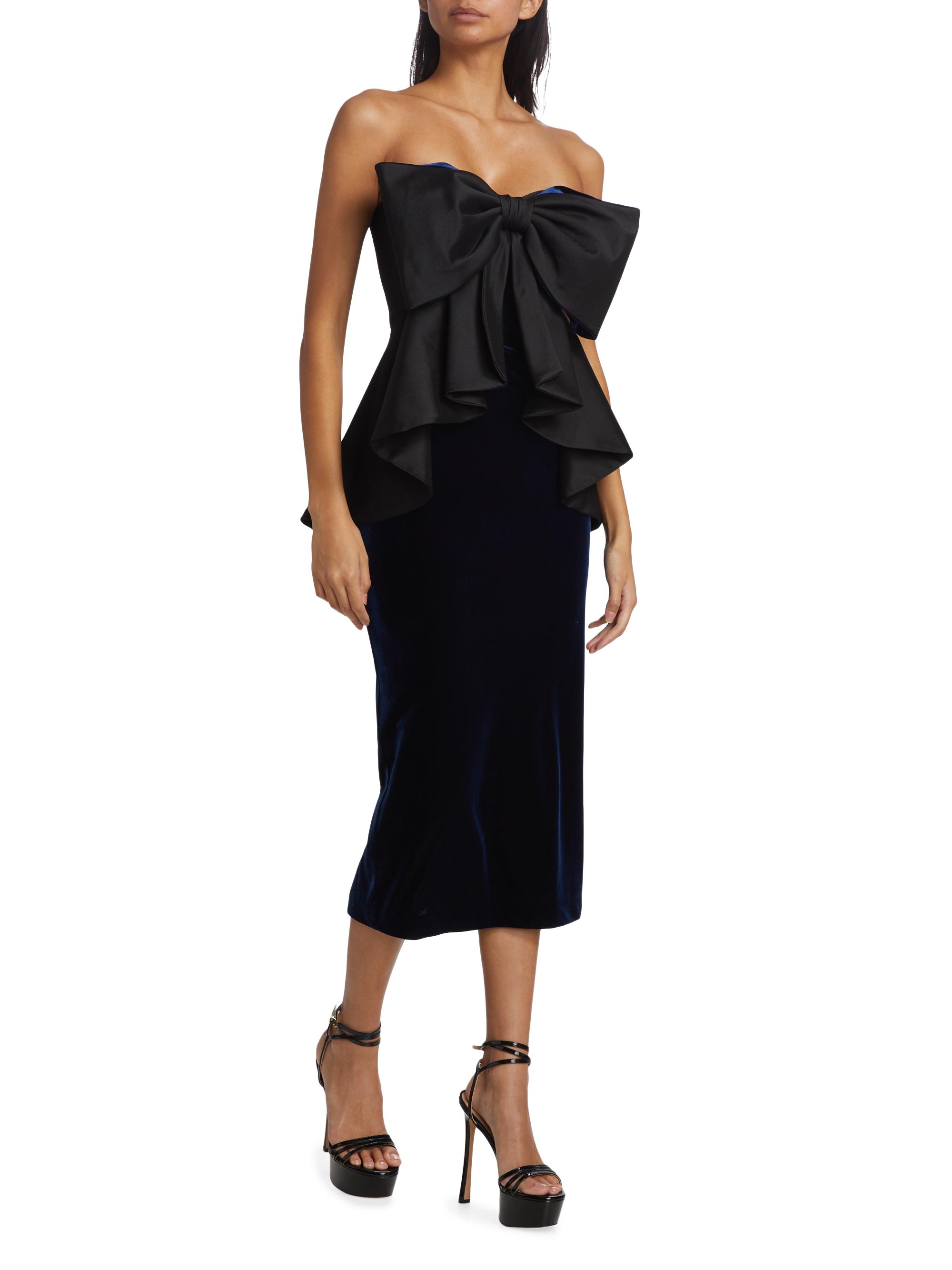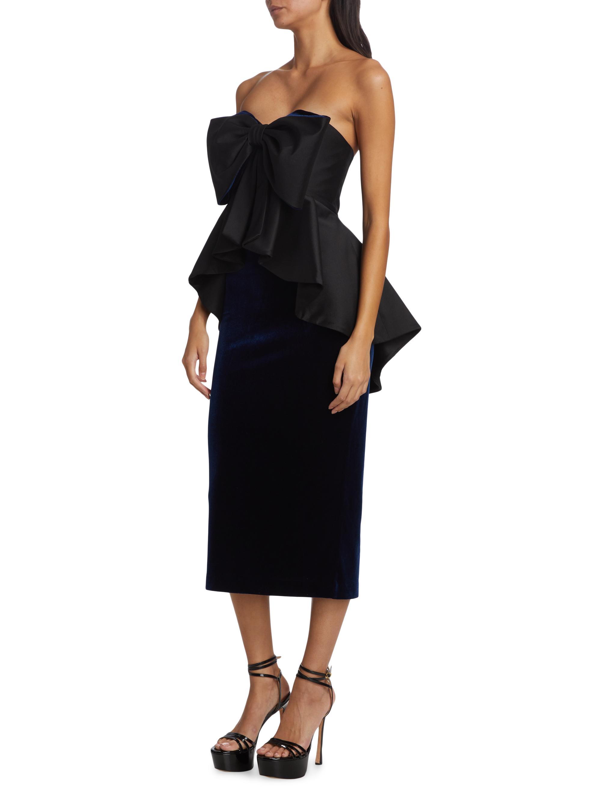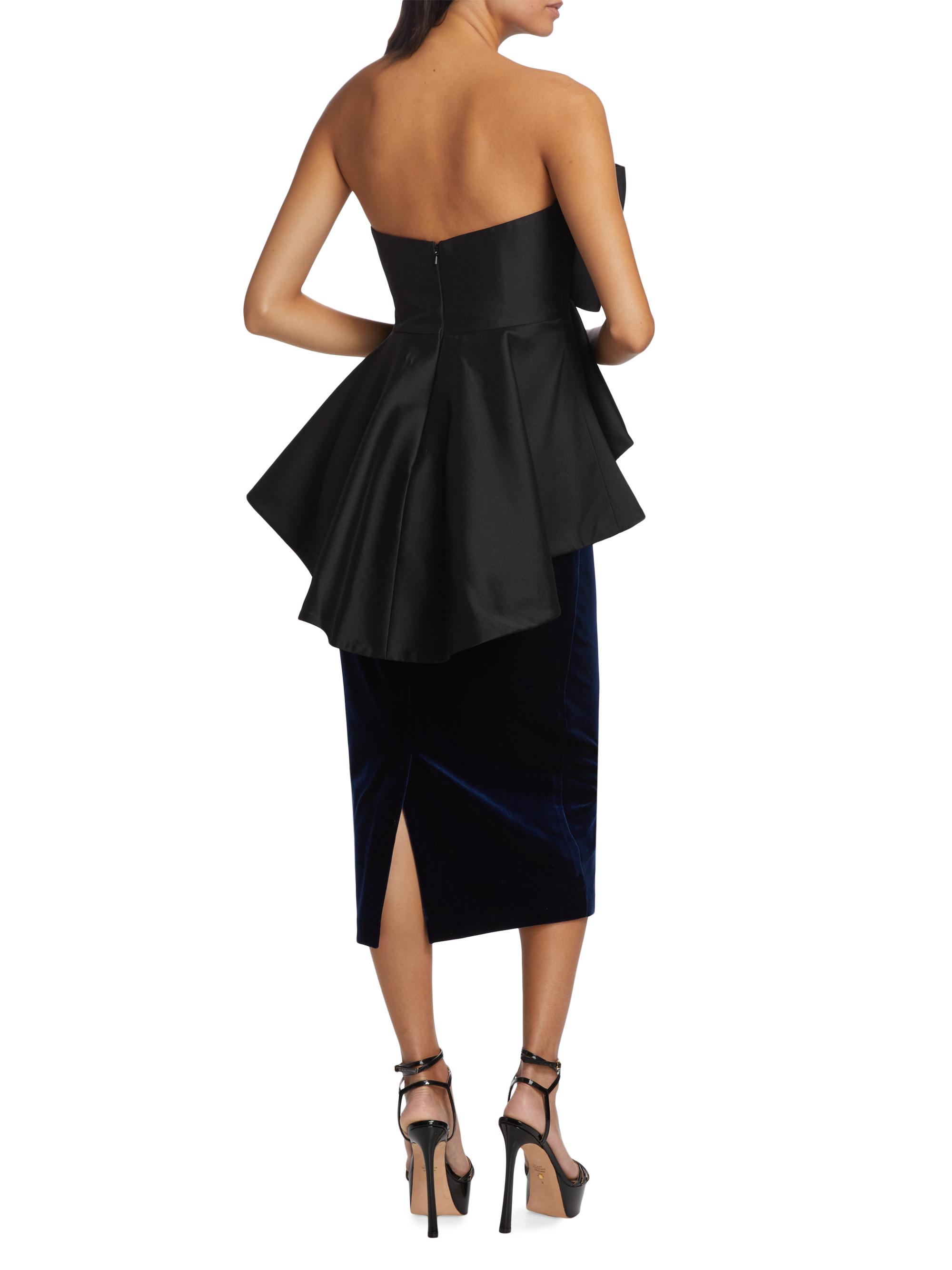 Badgley Mischka Velvet Bow Peplum Midi-Dress