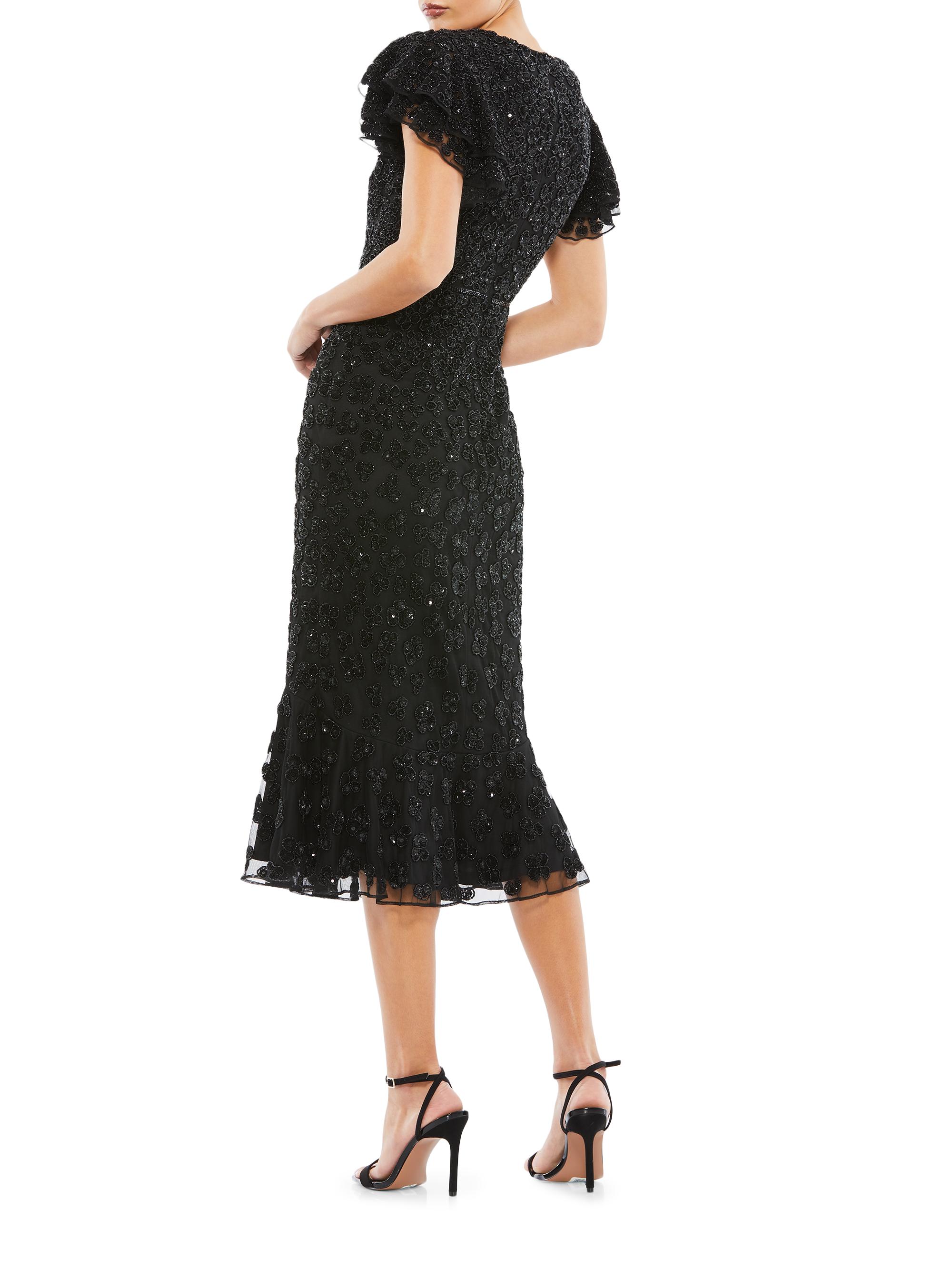 Mac Duggal Flutter Sleeve Beaded Midi Dress BLACK