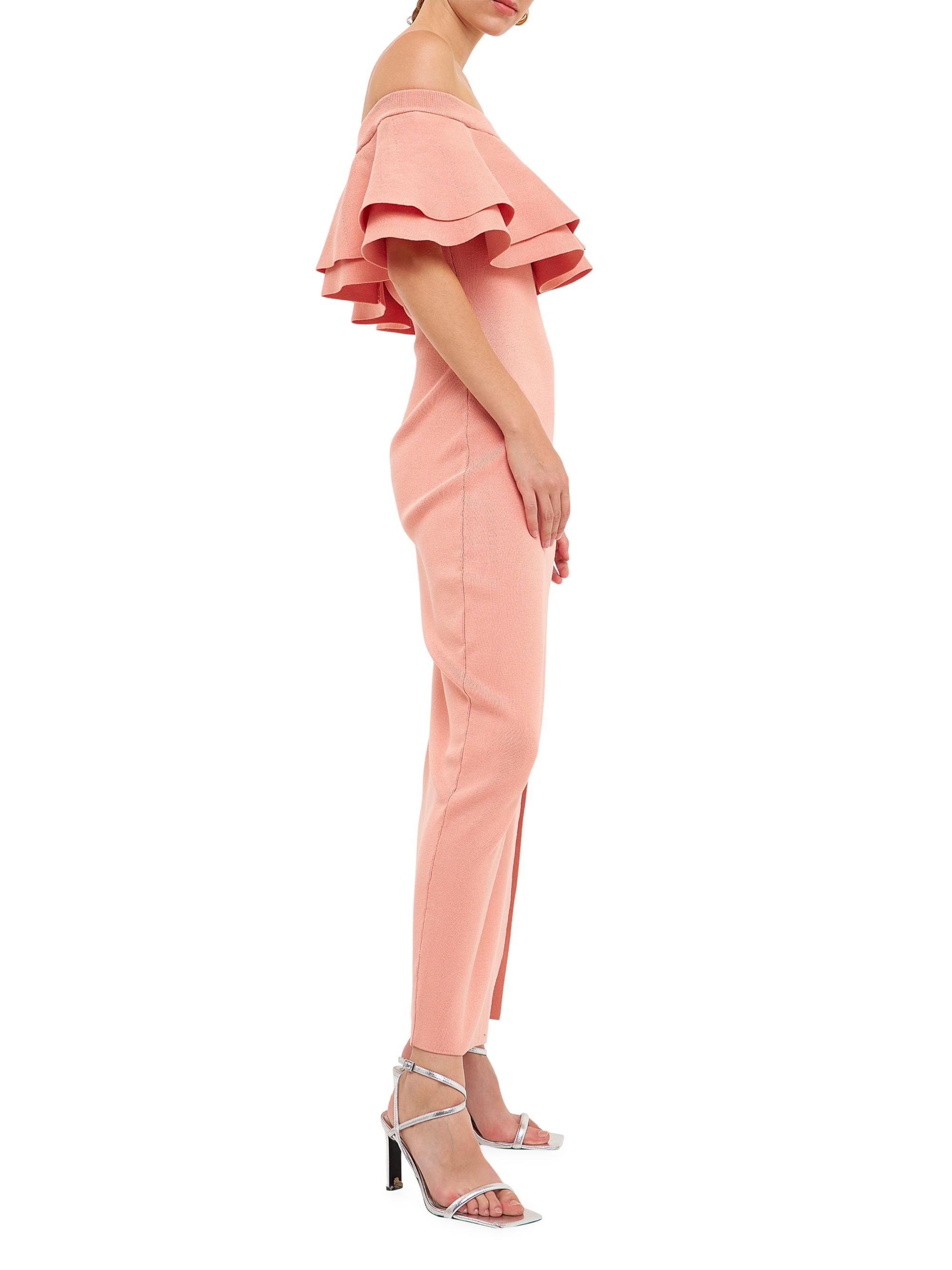 Endless Rose Ruffle Off-The-Shoulder Midi-Dress BLUSH