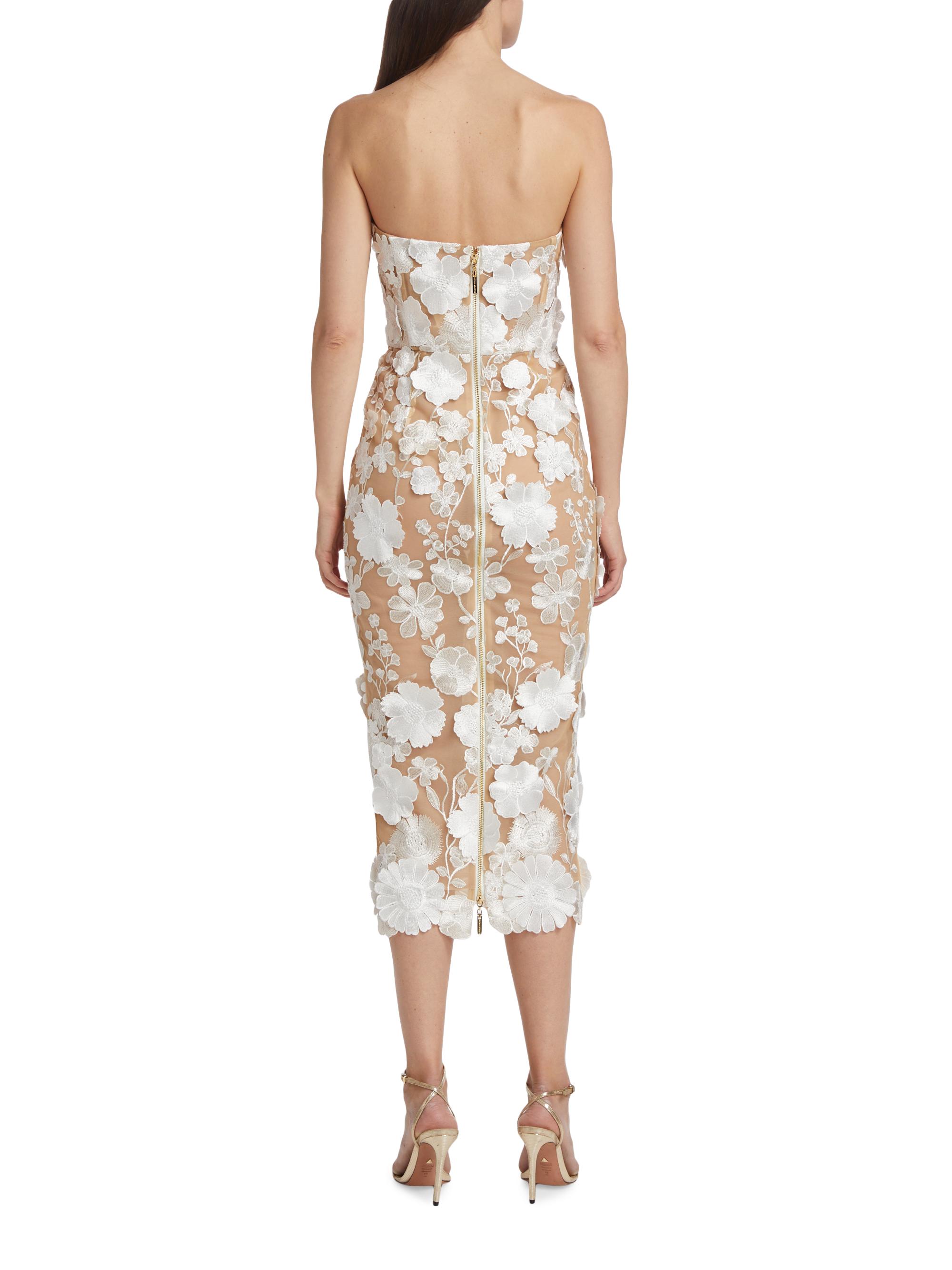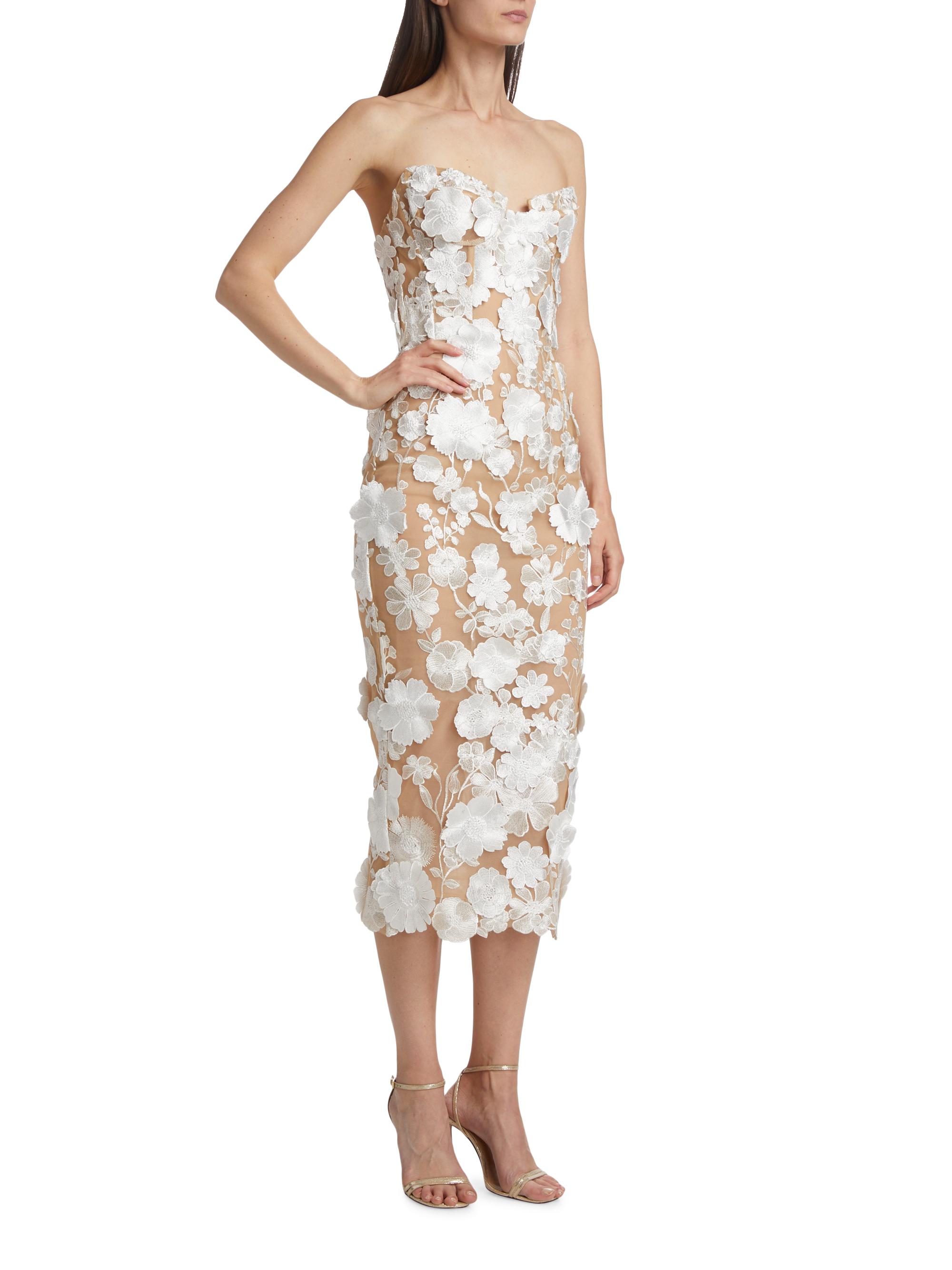Bronx and Banco Jasmine 3D Floral Strapless Midi-Dress