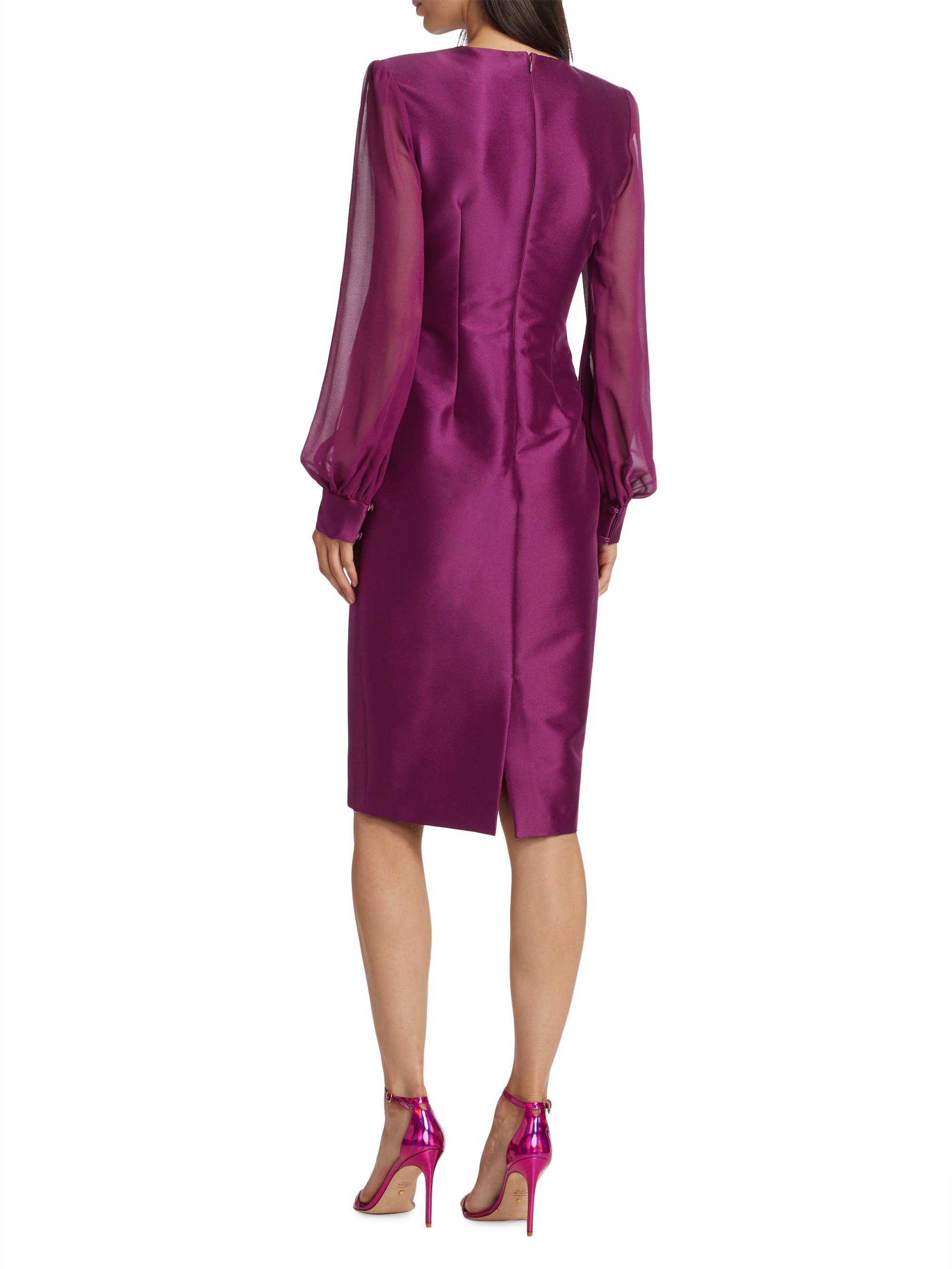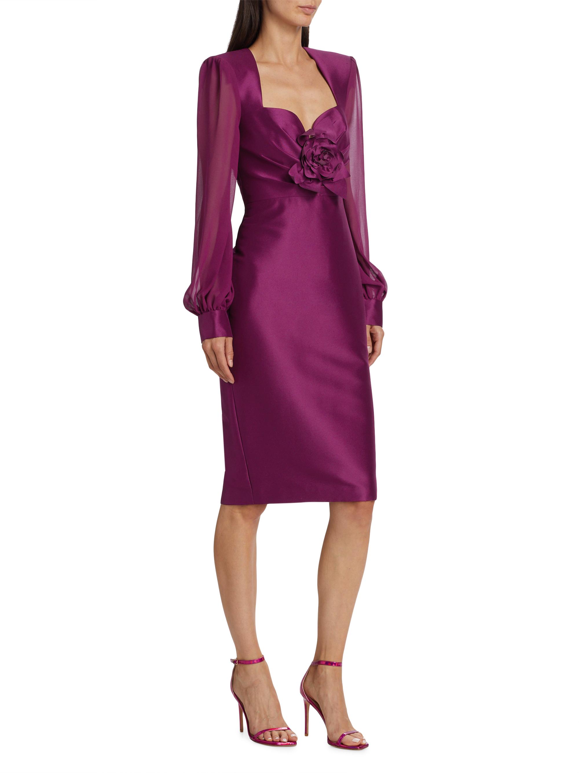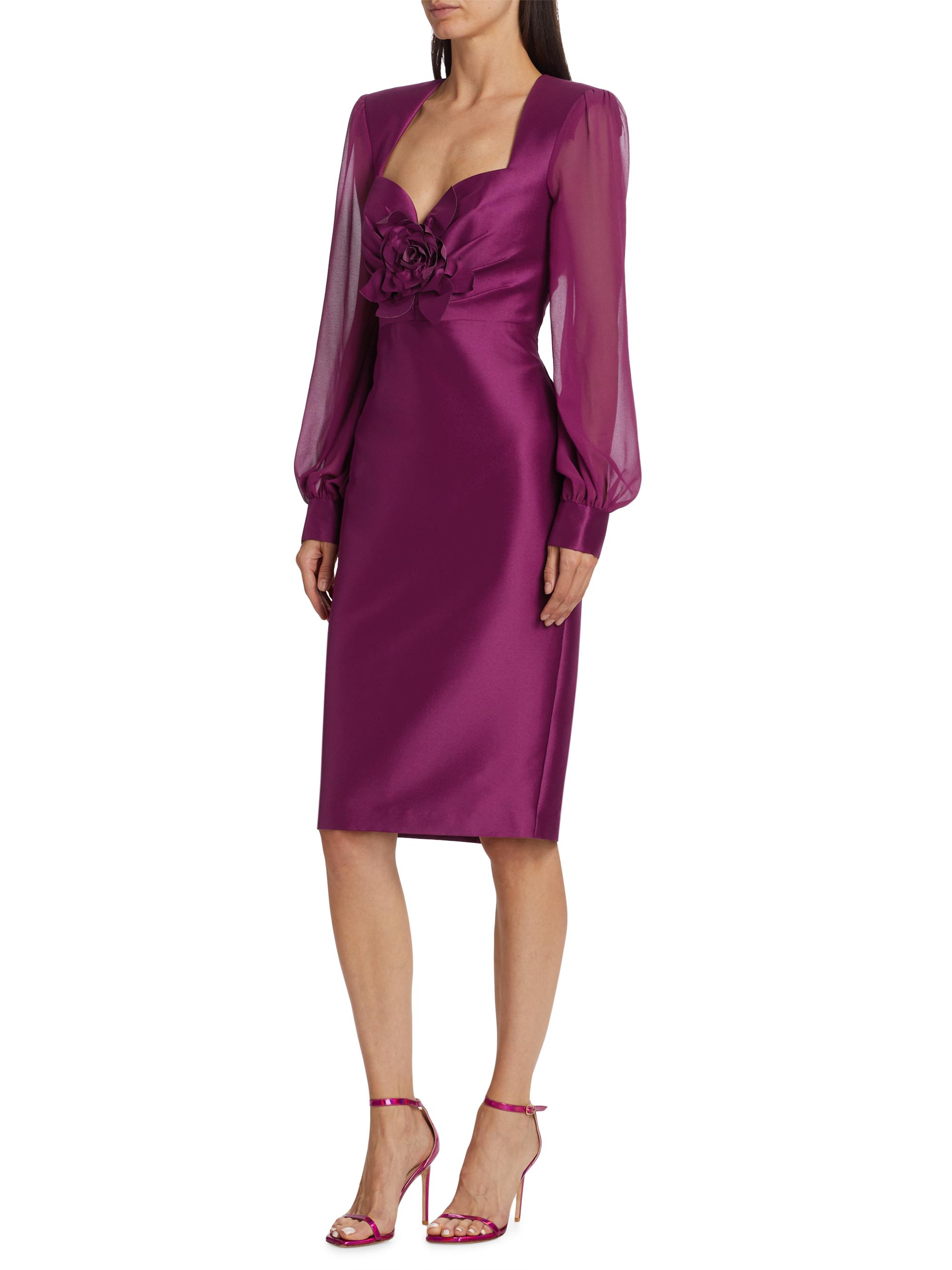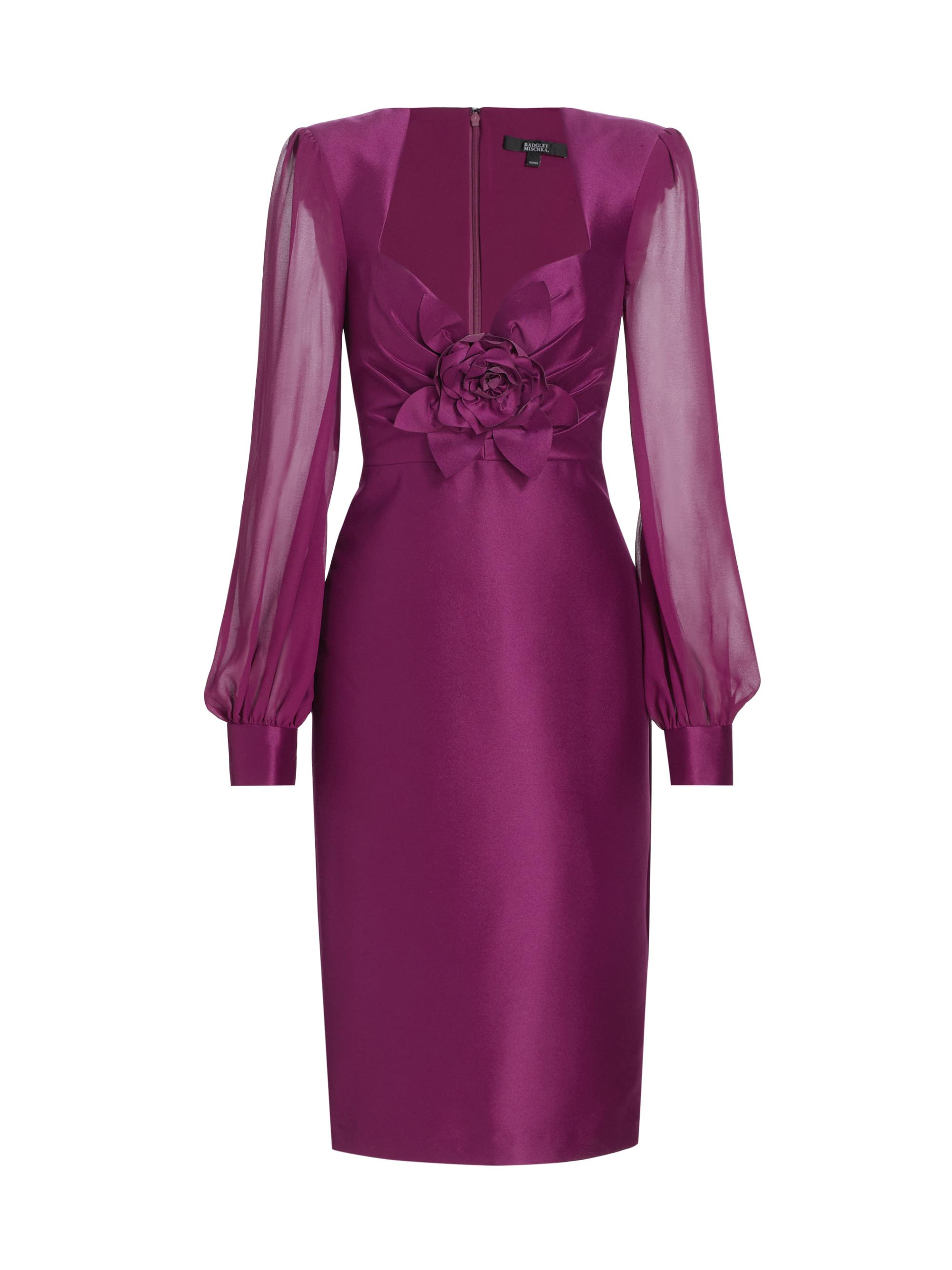 Badgley Mischka Rose Satin Twill & Georgette Dress