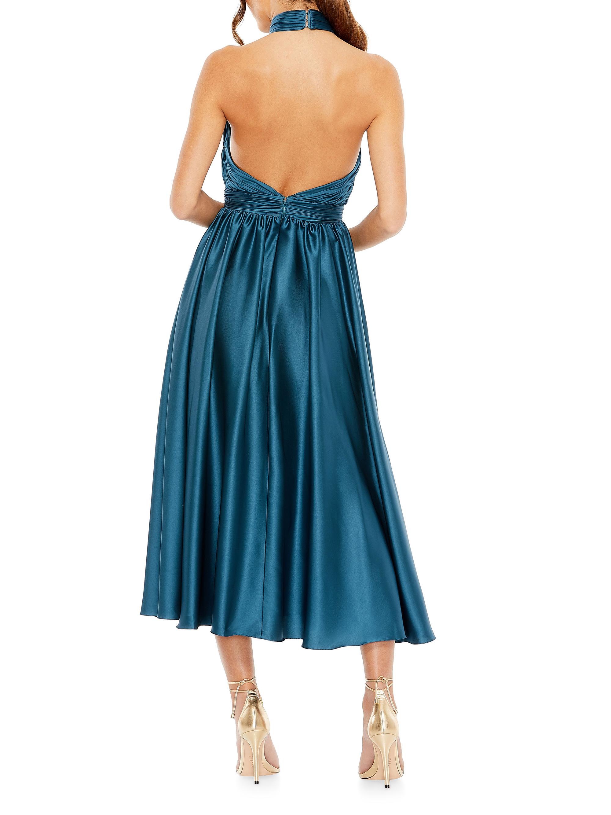Mac Duggal Satin Halter Rosette Midi-Dress