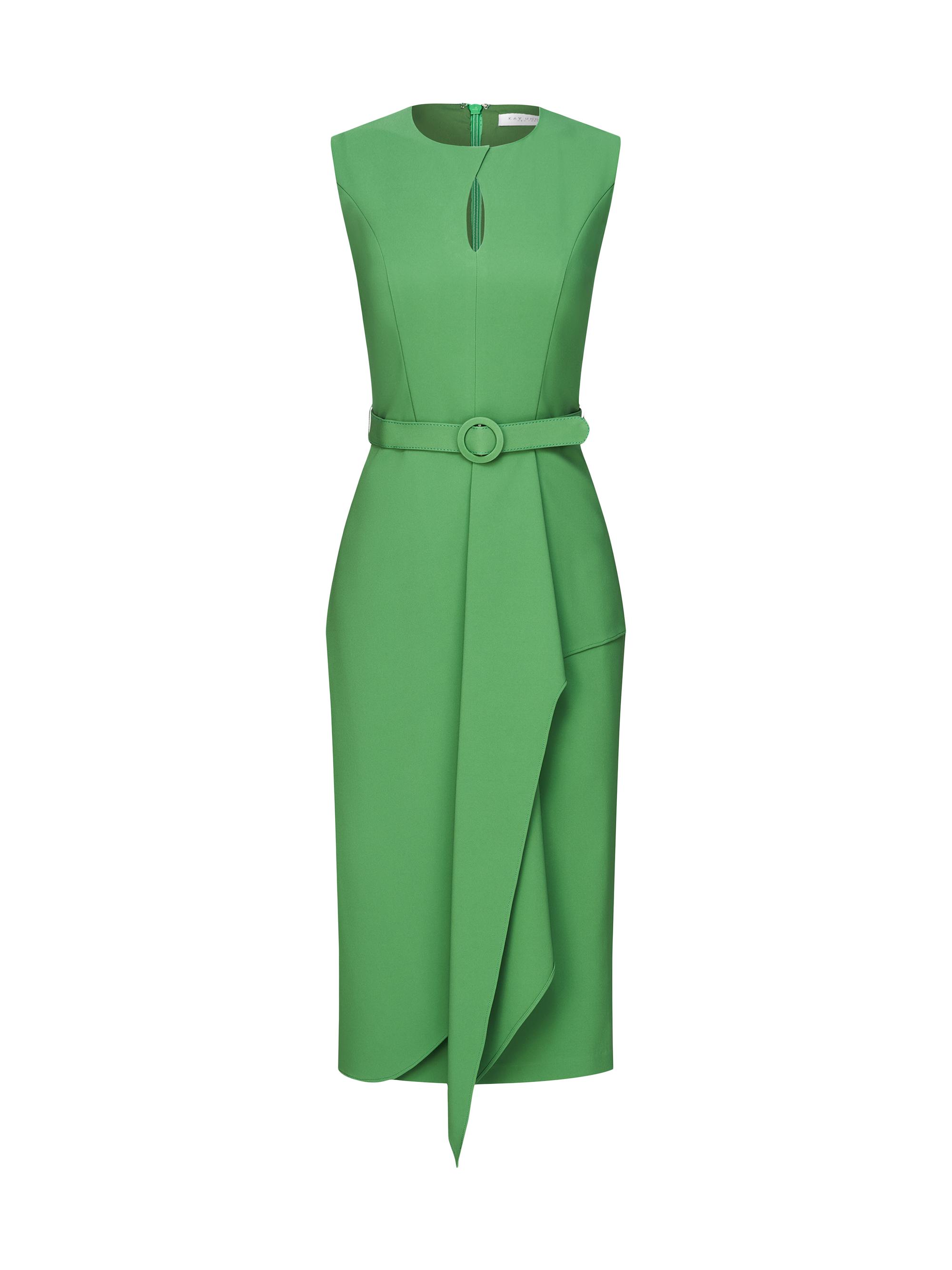 Kay Unger Kamala Crepe Midi-Dress LUSH GREEN