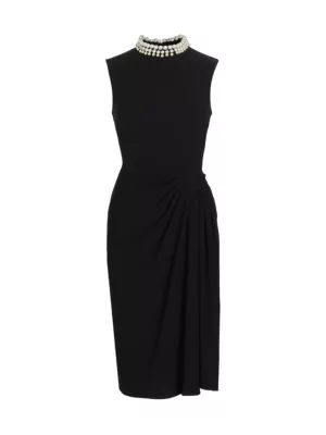 Teri Jon by Rickie Freeman Pearl Sleeveless Crepe Cocktail Dress