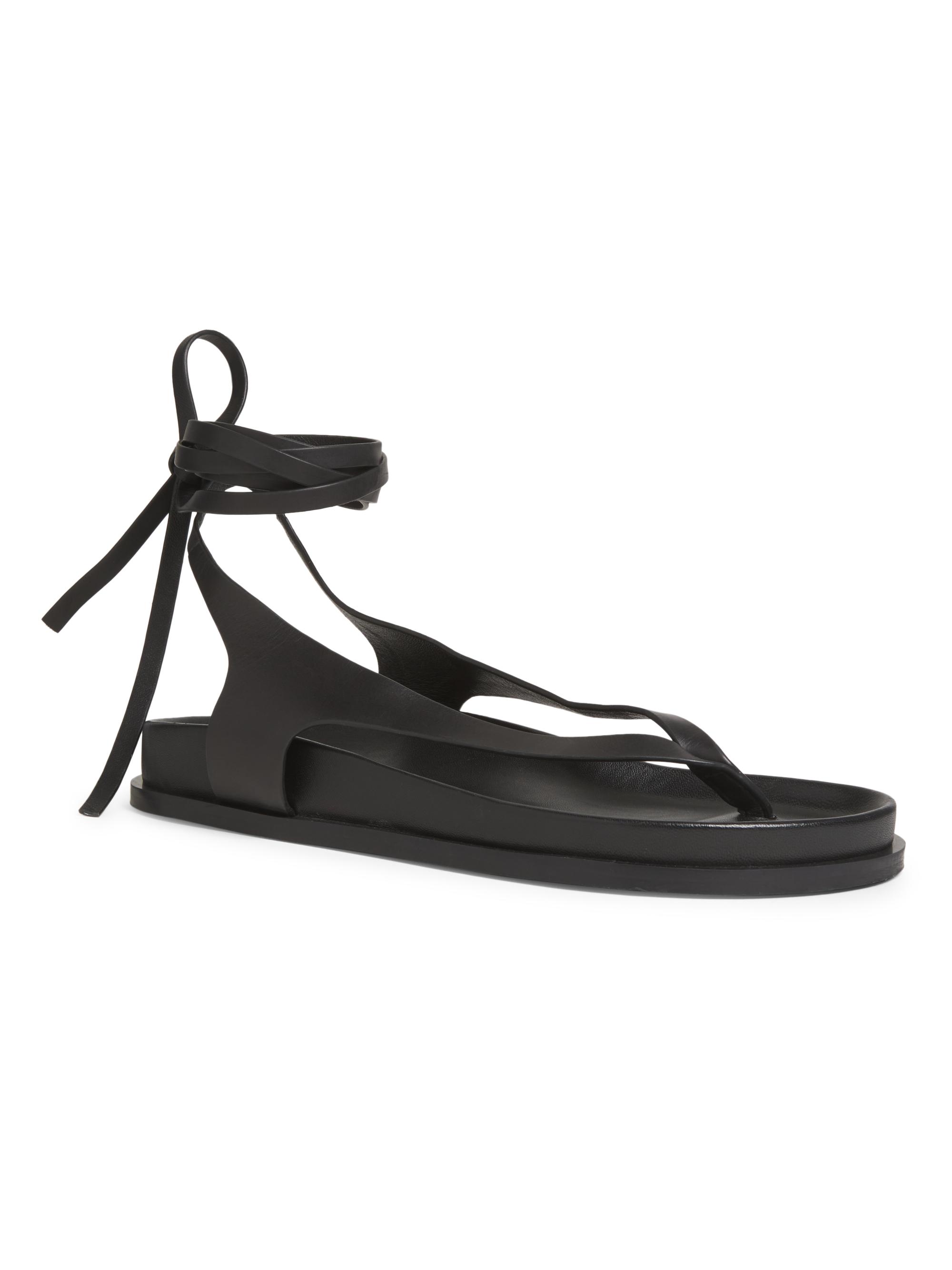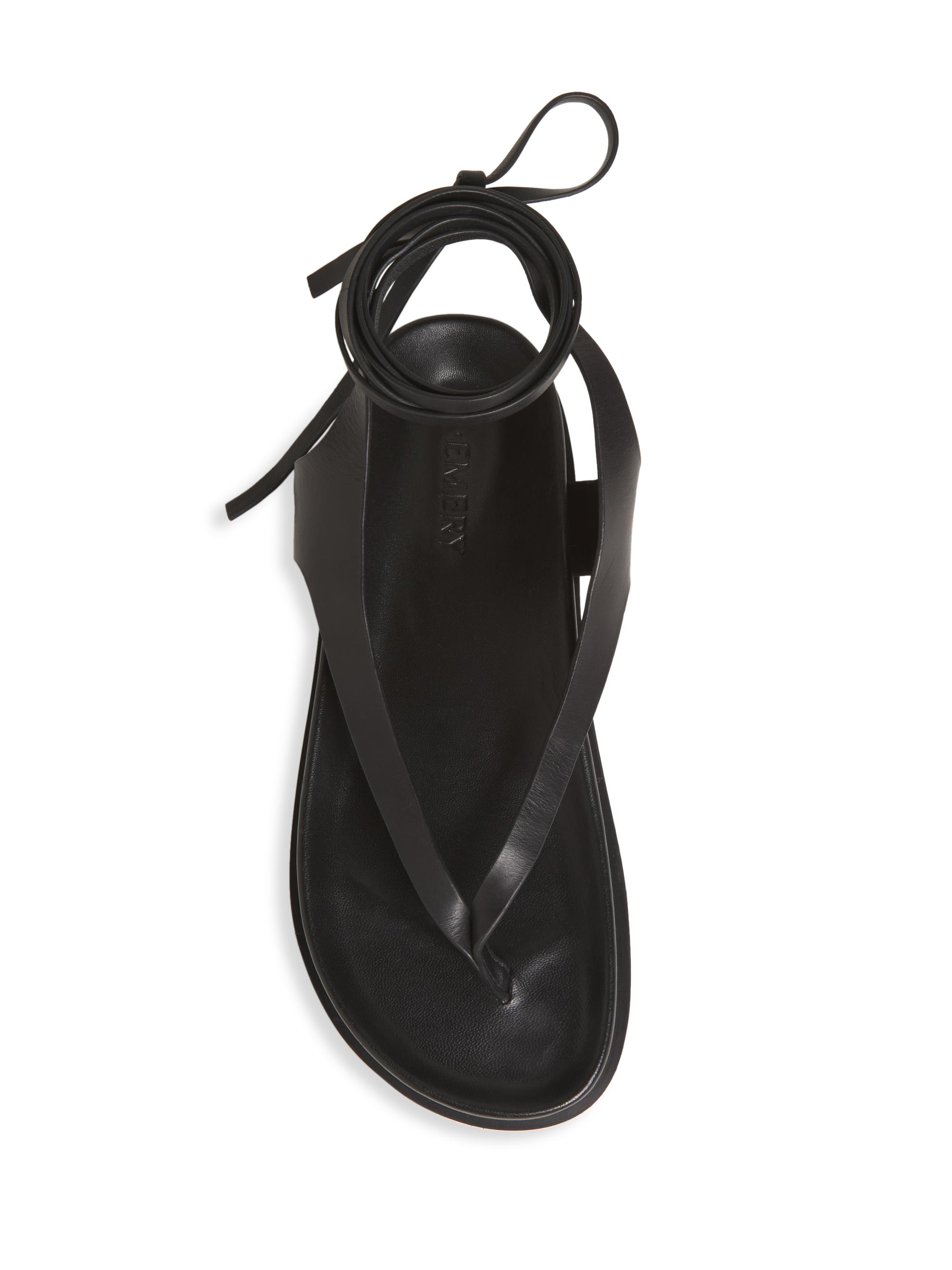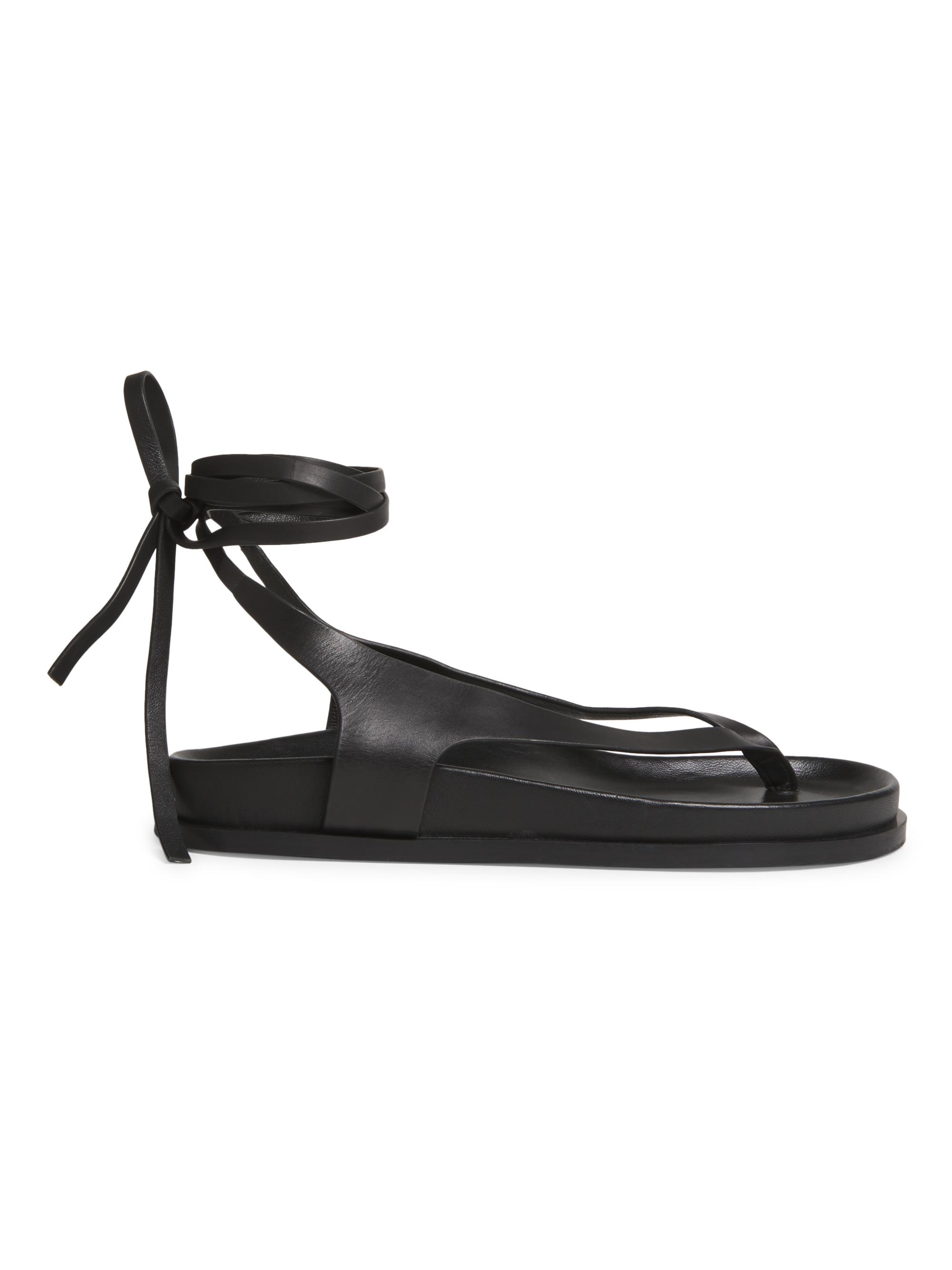 A.Emery Shel Leather Ankle-Wrap Sandals BLACK
