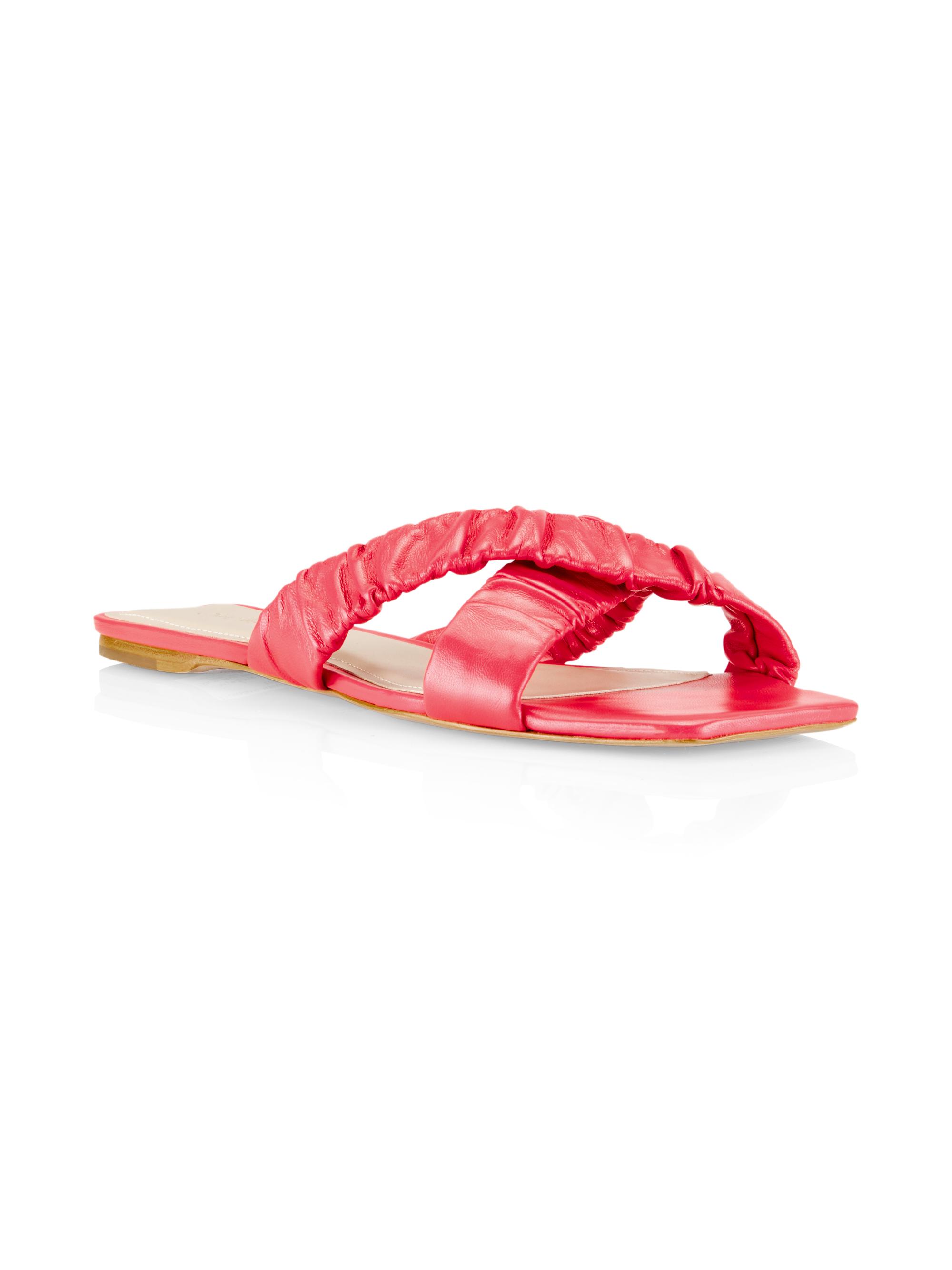 Saks Fifth Avenue COLLECTION Ruched Leather Crisscross-Cross Sandals MAGENTA