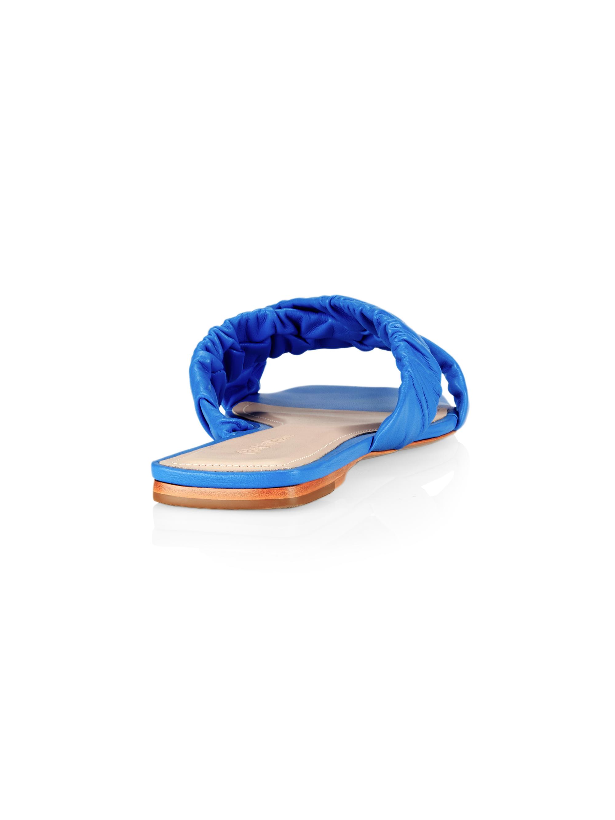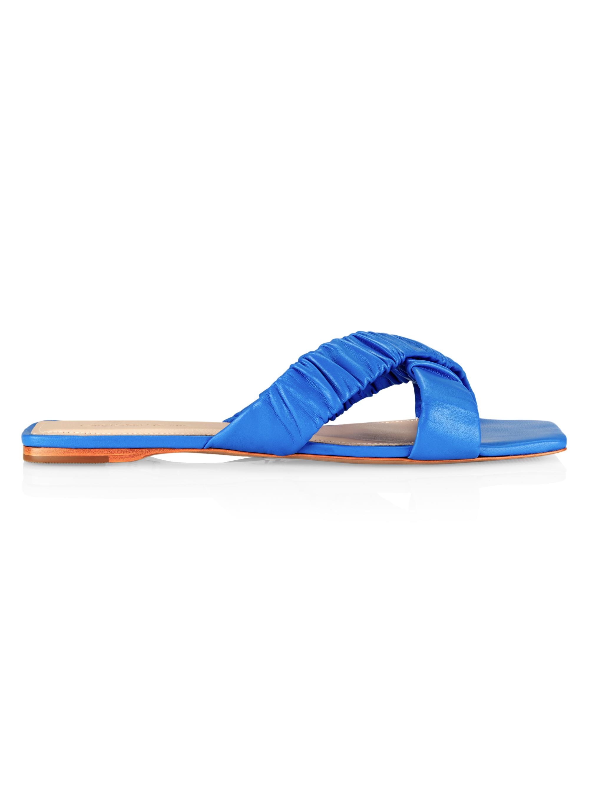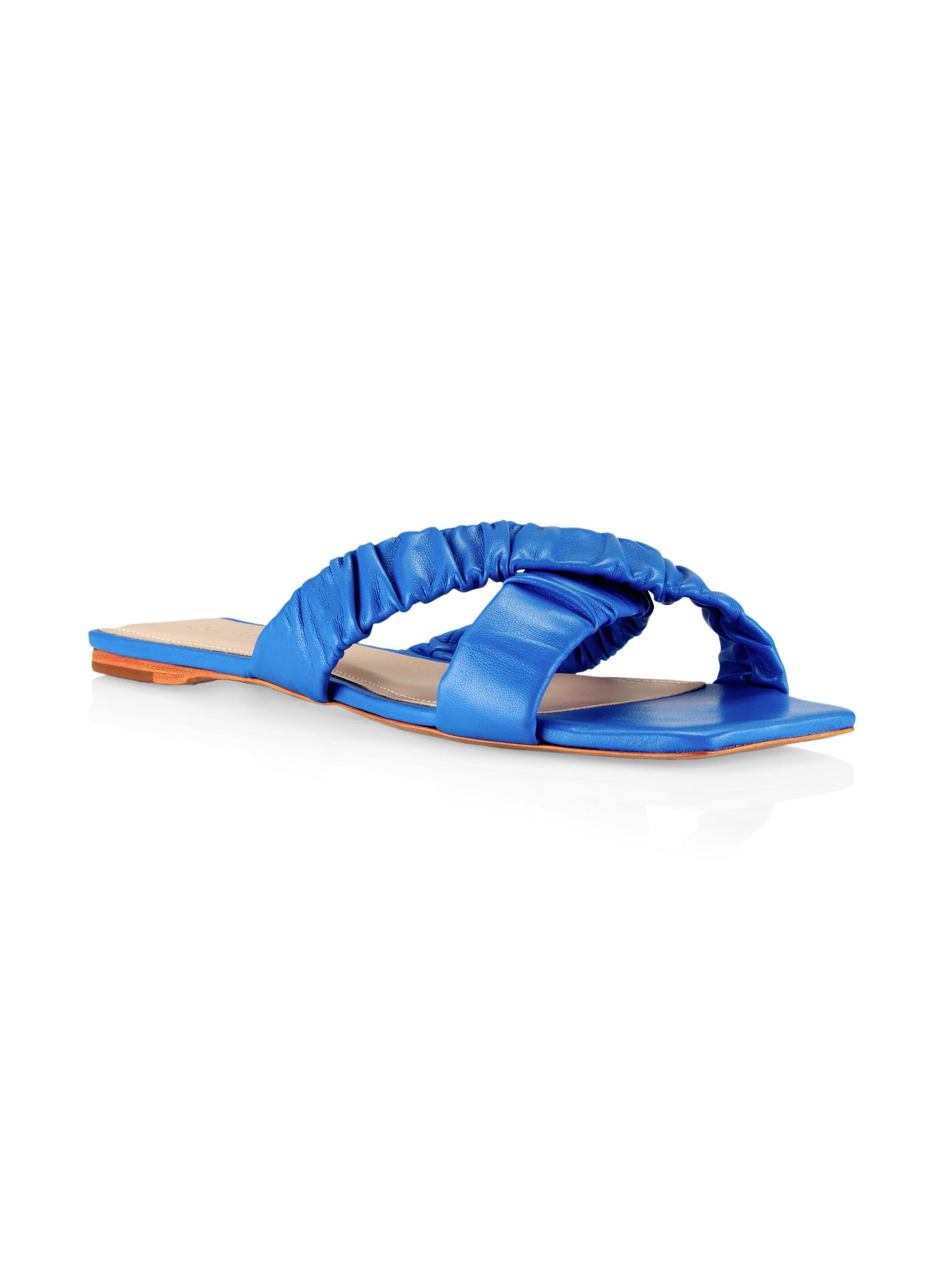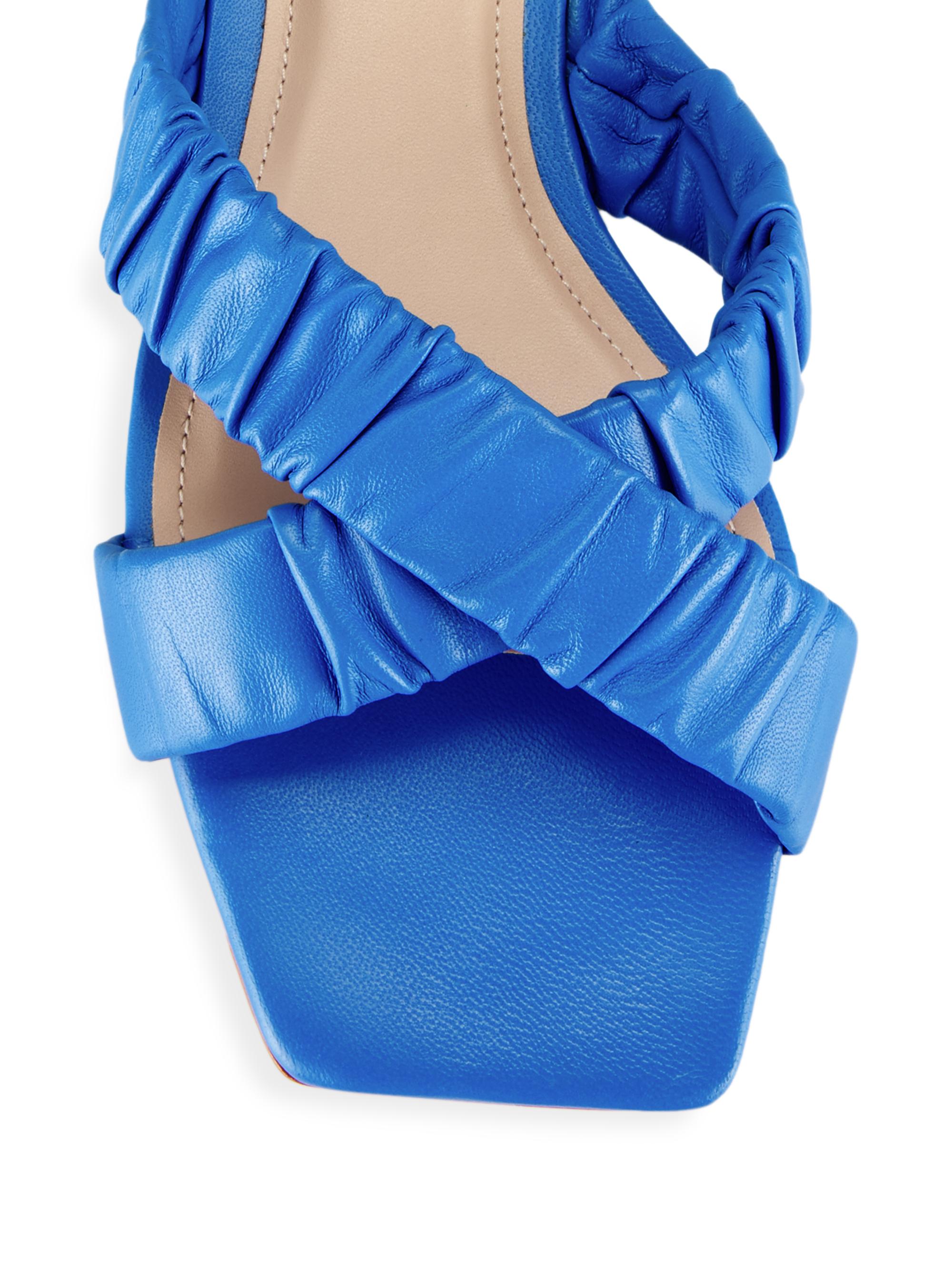 Saks Fifth Avenue COLLECTION Ruched Leather Crisscross-Cross Sandals AZURE BLUE
