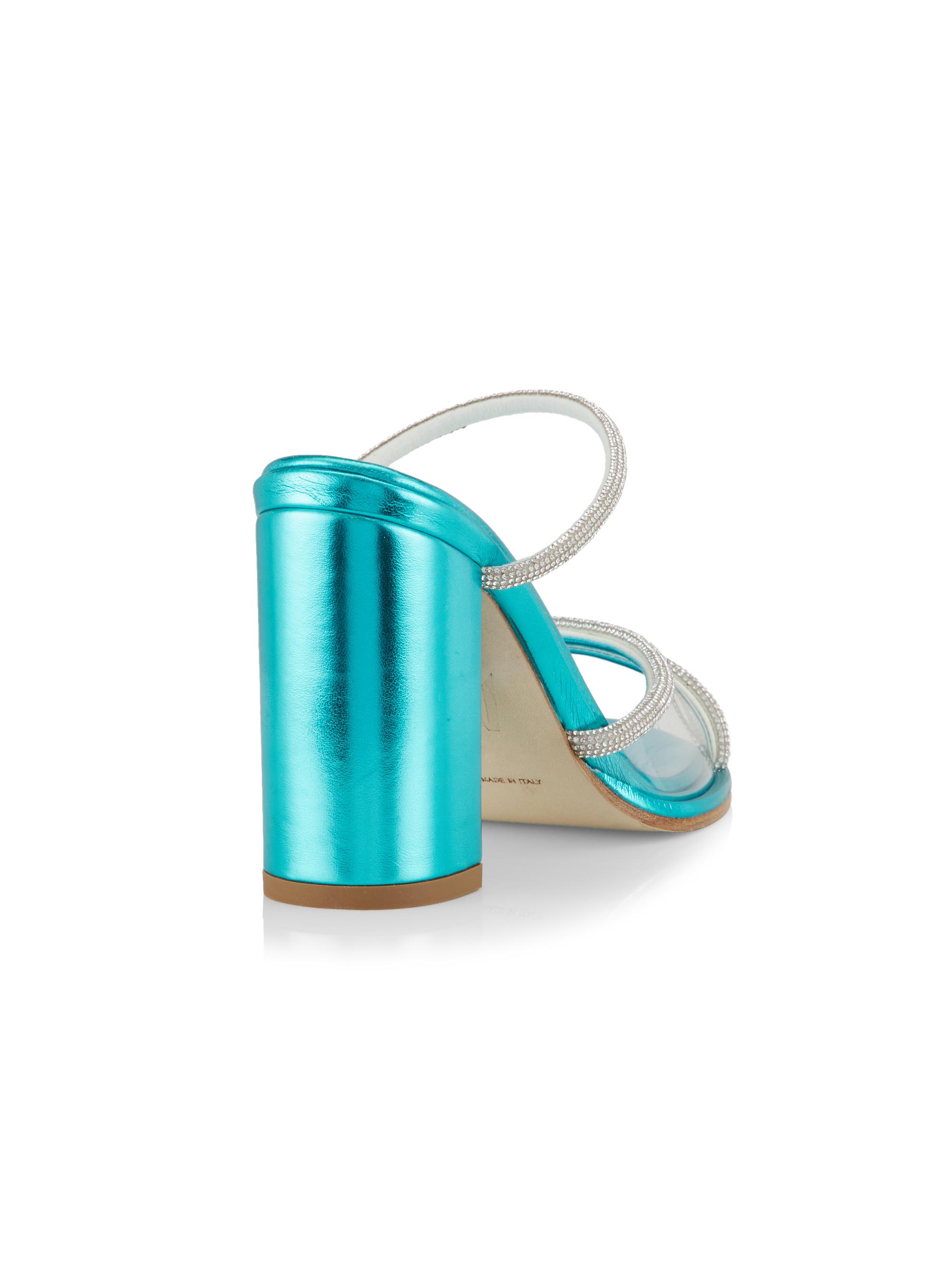 Bettina Vermillon Carmen 85MM Crystal-Embellished Metallic Mules ACQUA