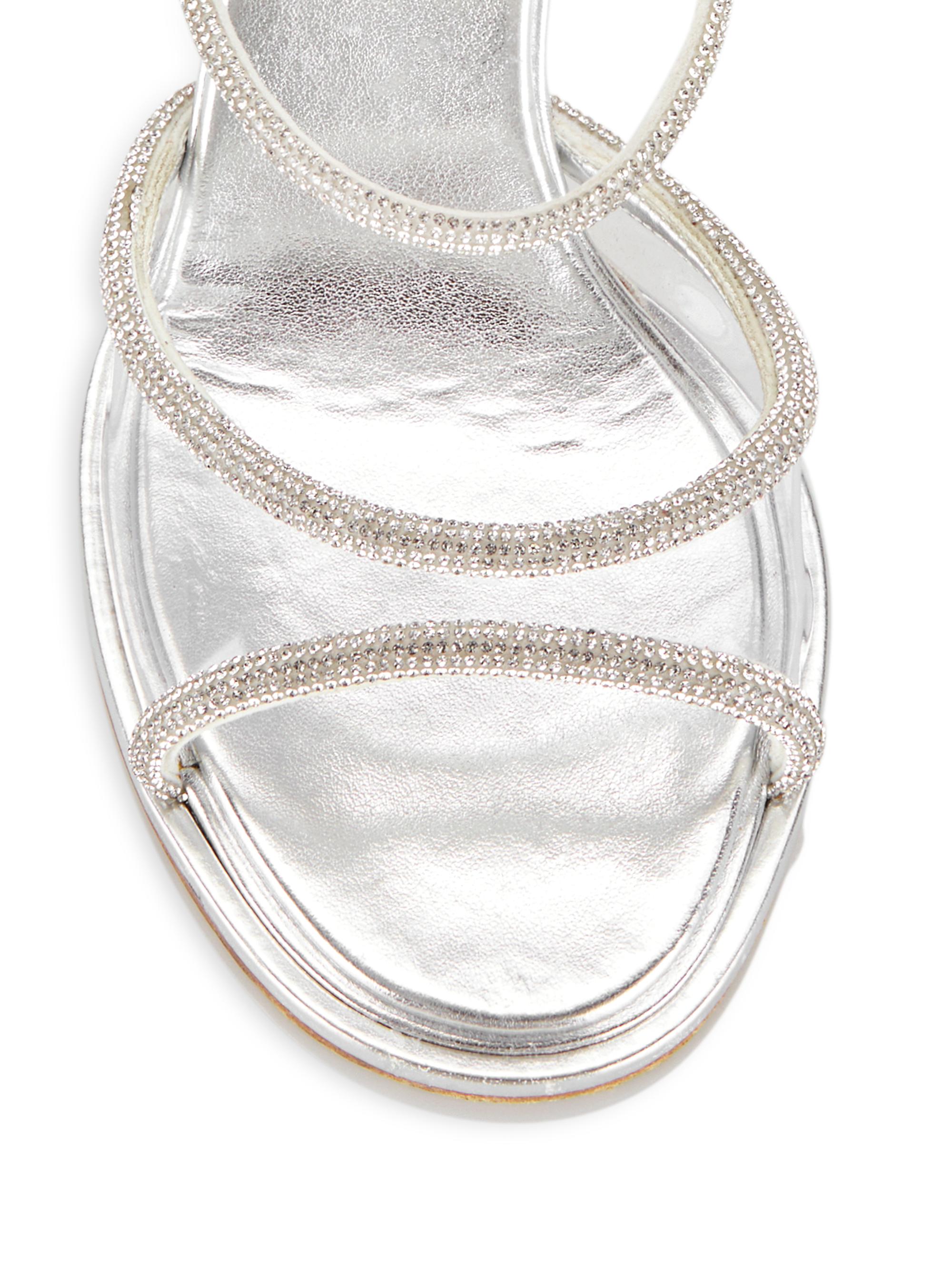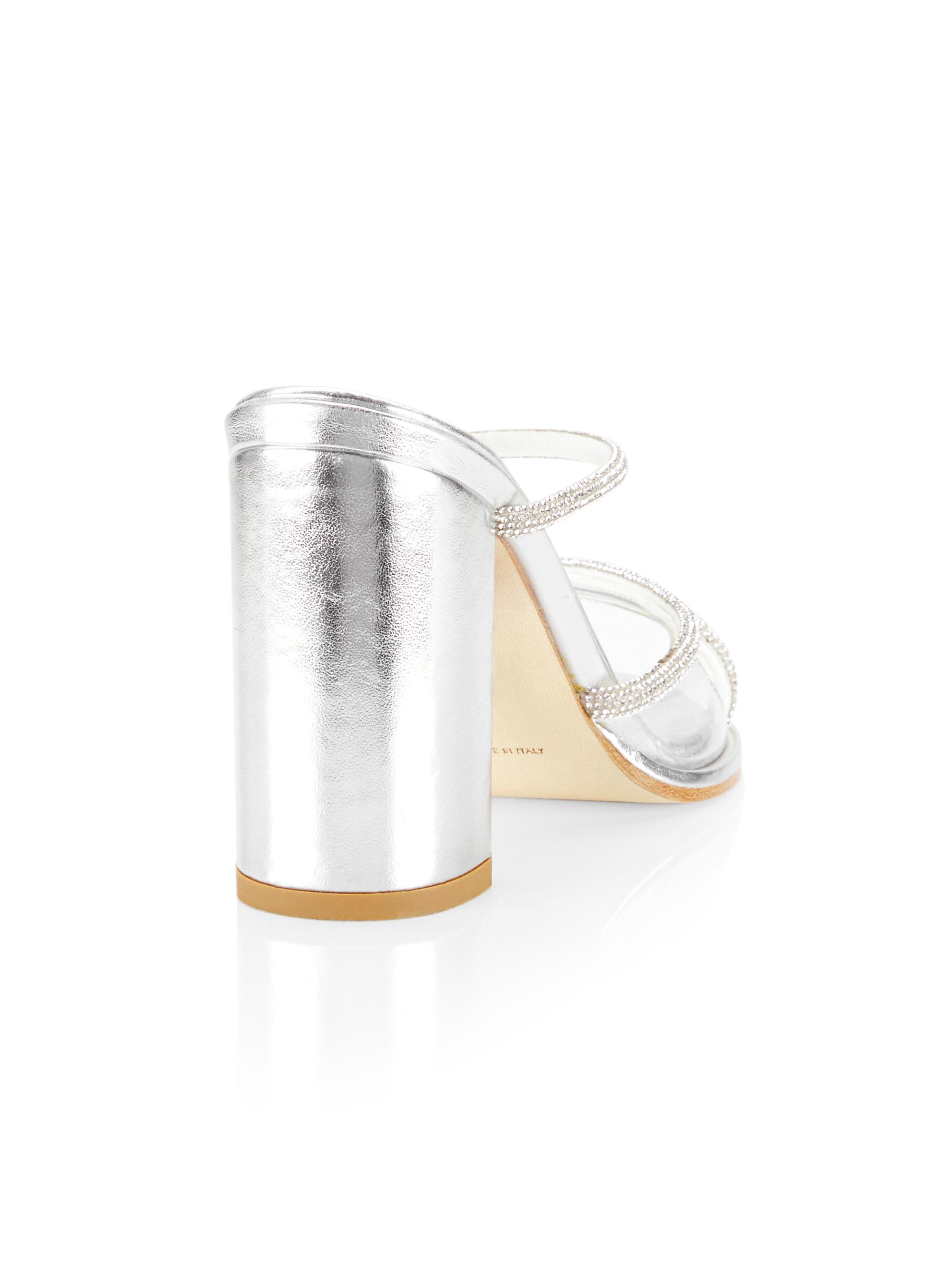 Bettina Vermillon Carmen 85MM Crystal-Embellished Metallic Mules SILVER