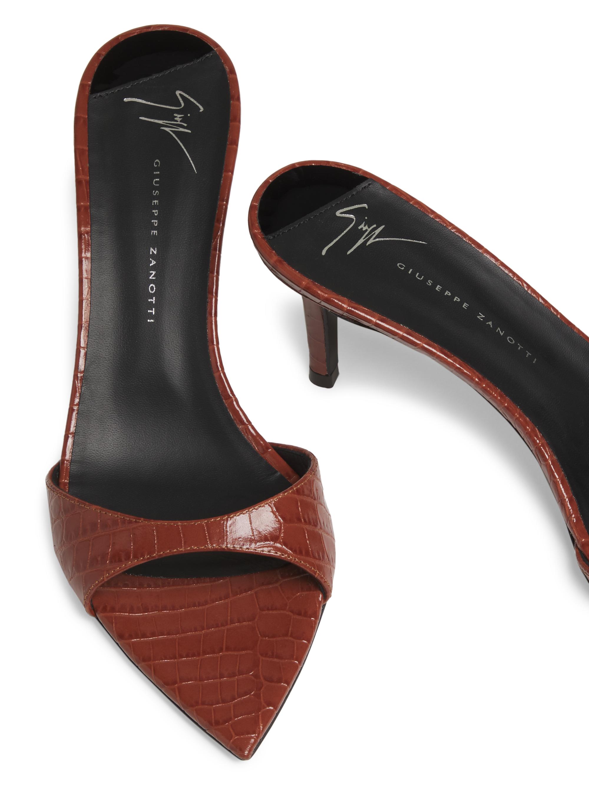 Giuseppe Zanotti Intrigio 70MM Snake-Embossed Leather Mules CACAO