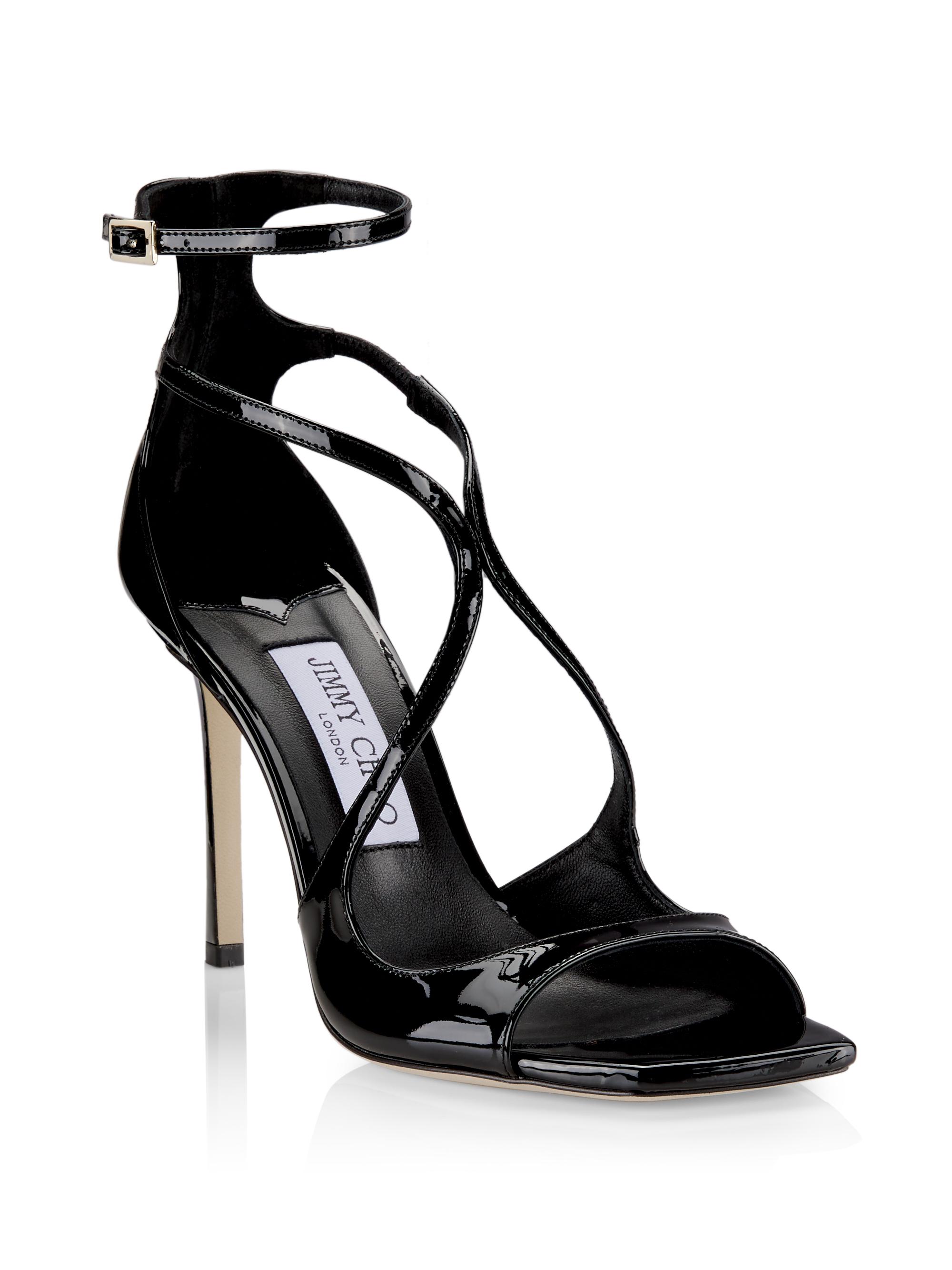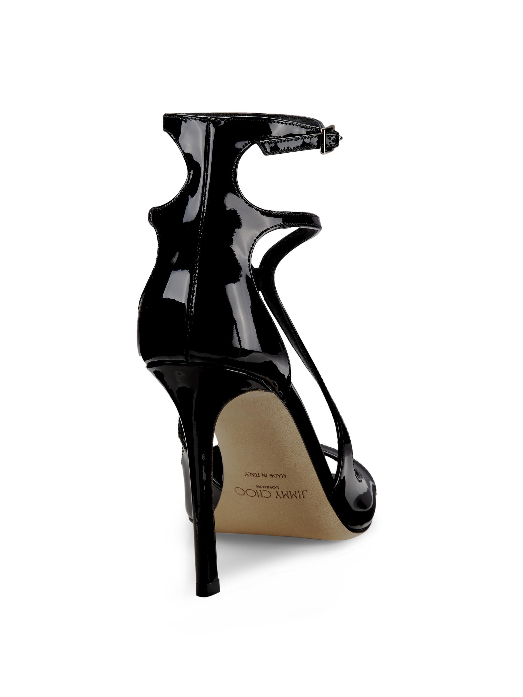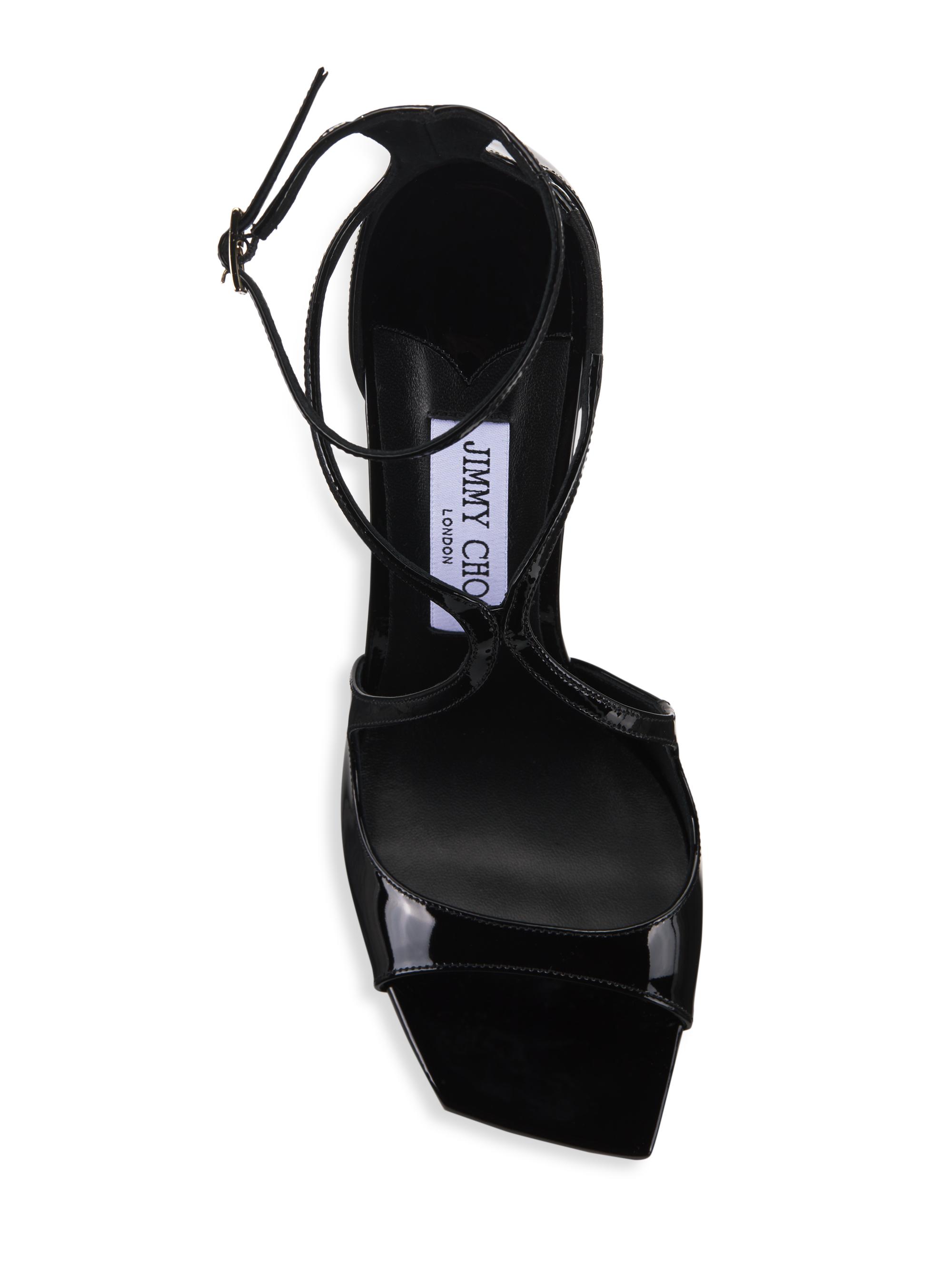 Jimmy Choo Azia 95MM Patent Leather Sandals BLACK