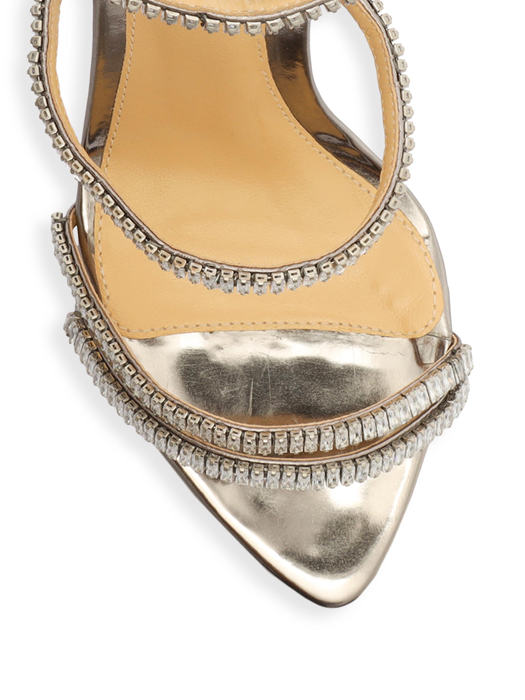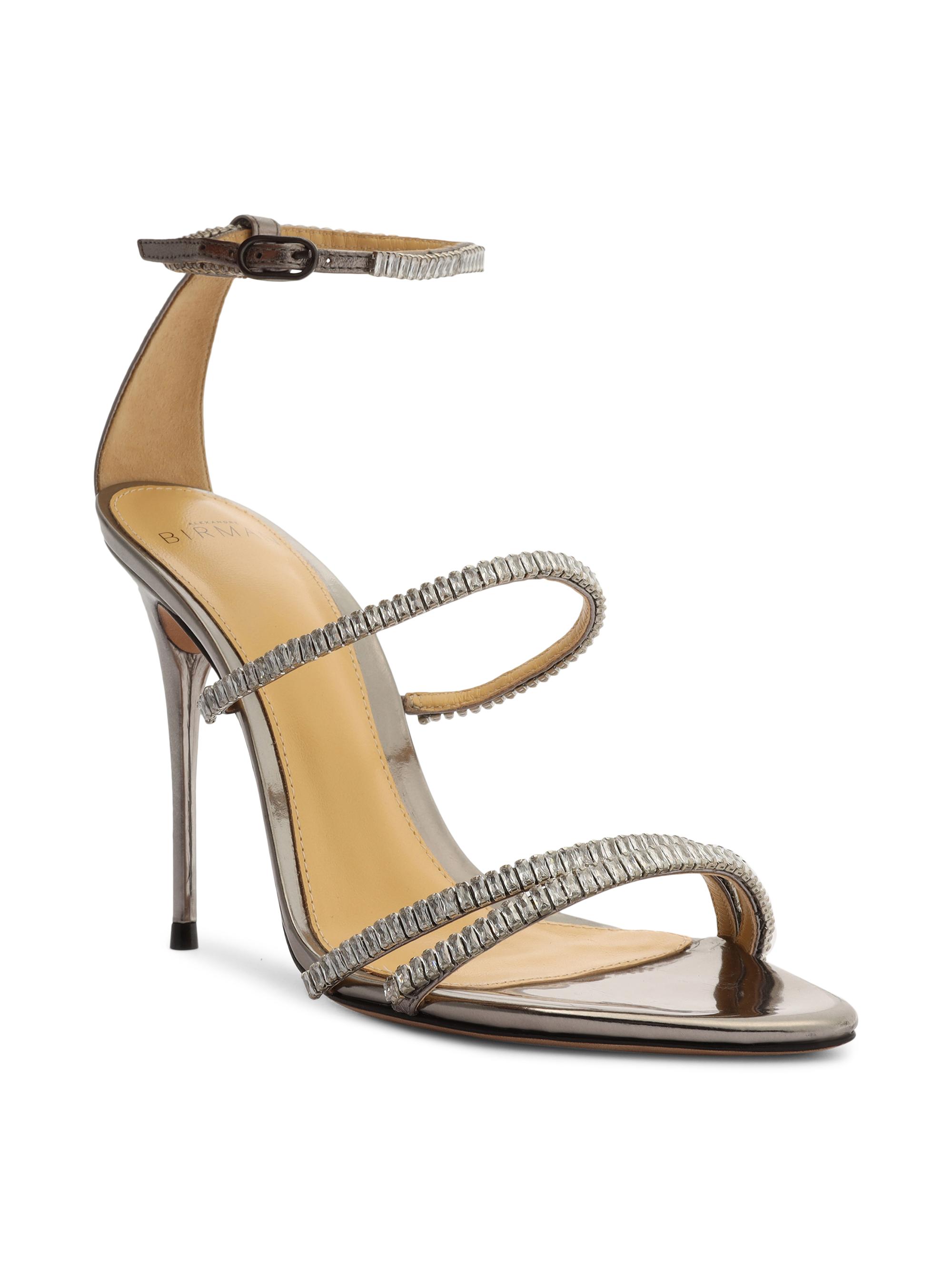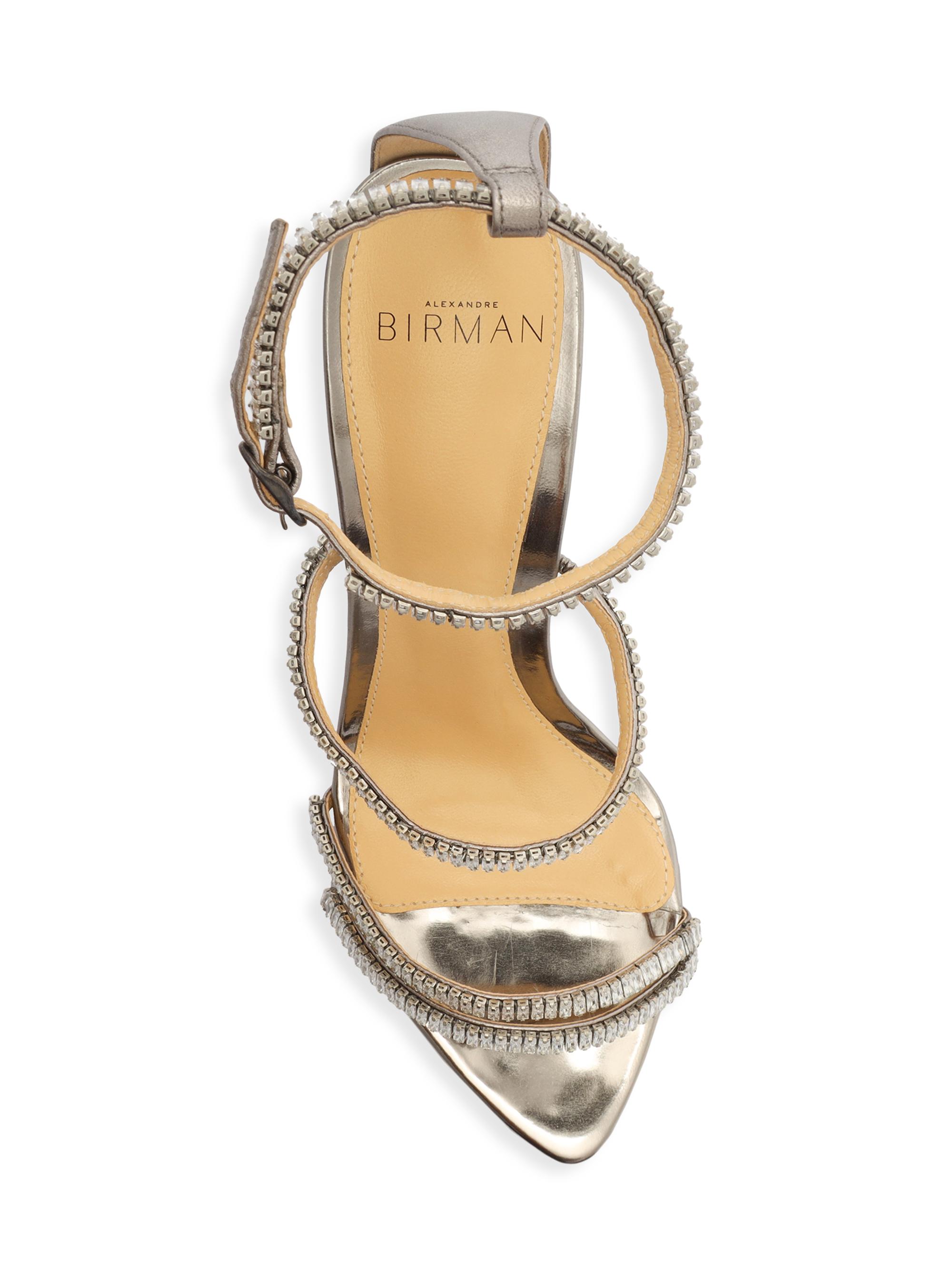 Alexandre Birman Lacy Zircone Metallic Leather Crystal-Embellished Sandals