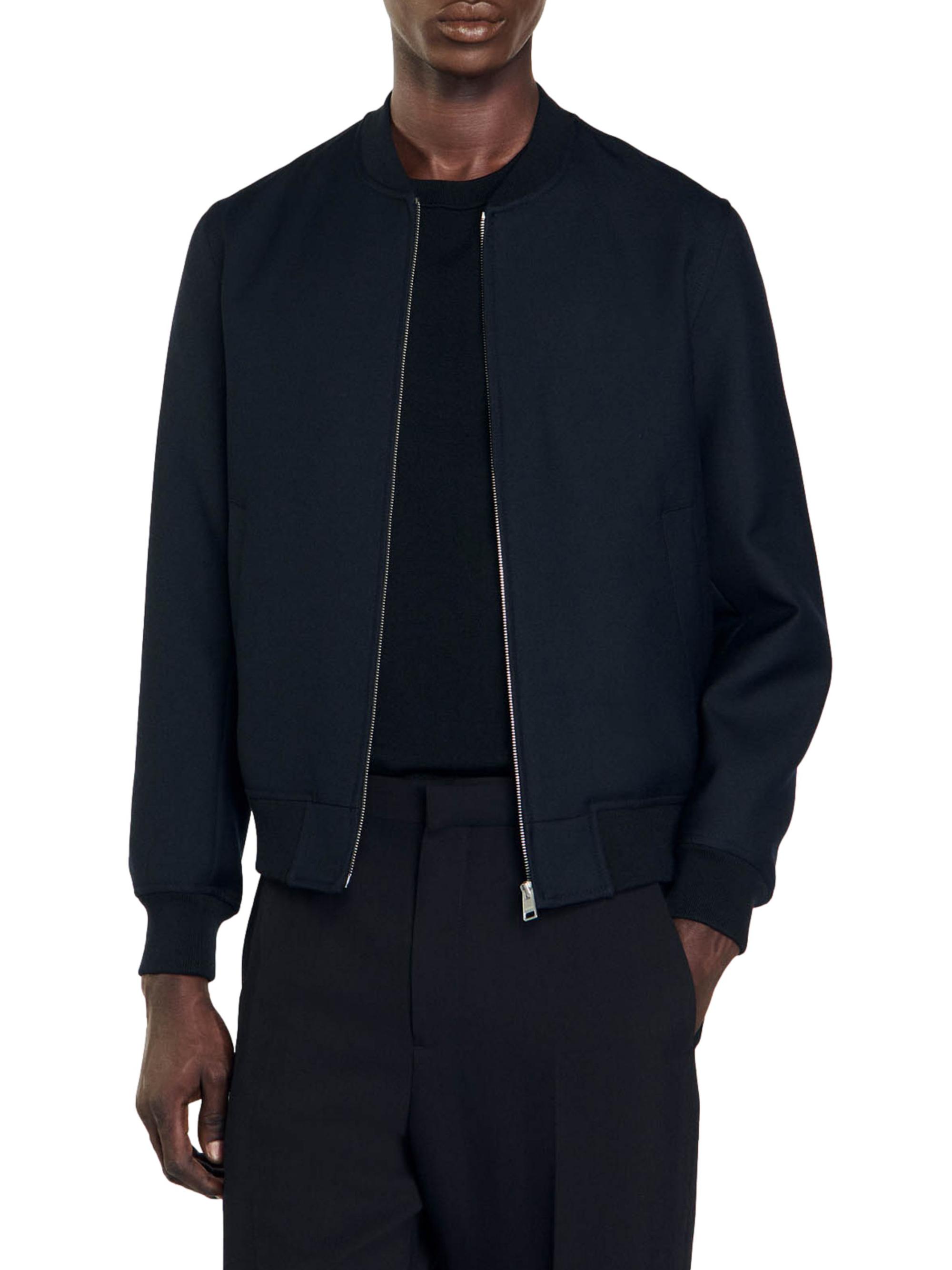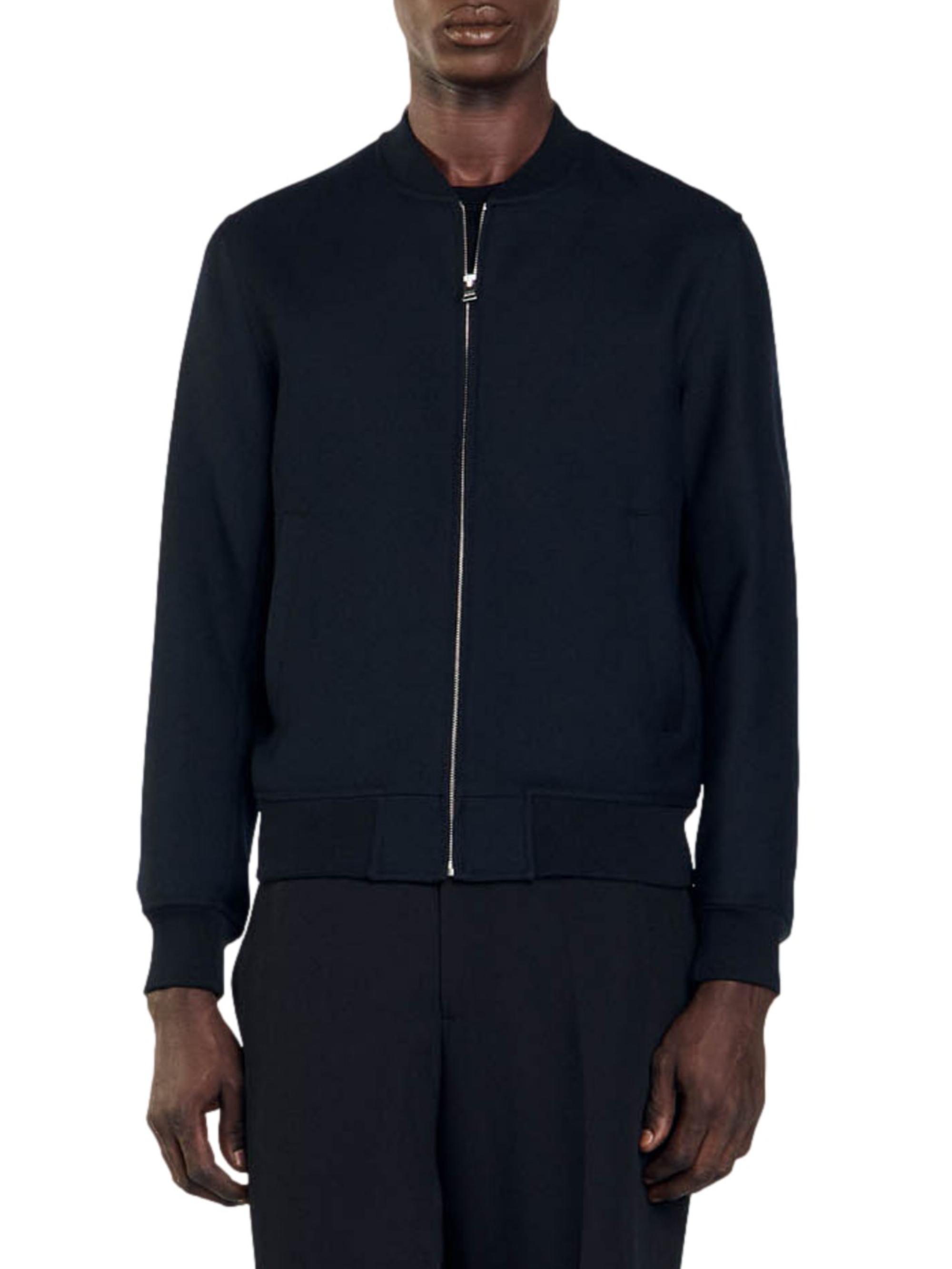 Sandro Zip-Up Varsity Jacket NAVY BLUE