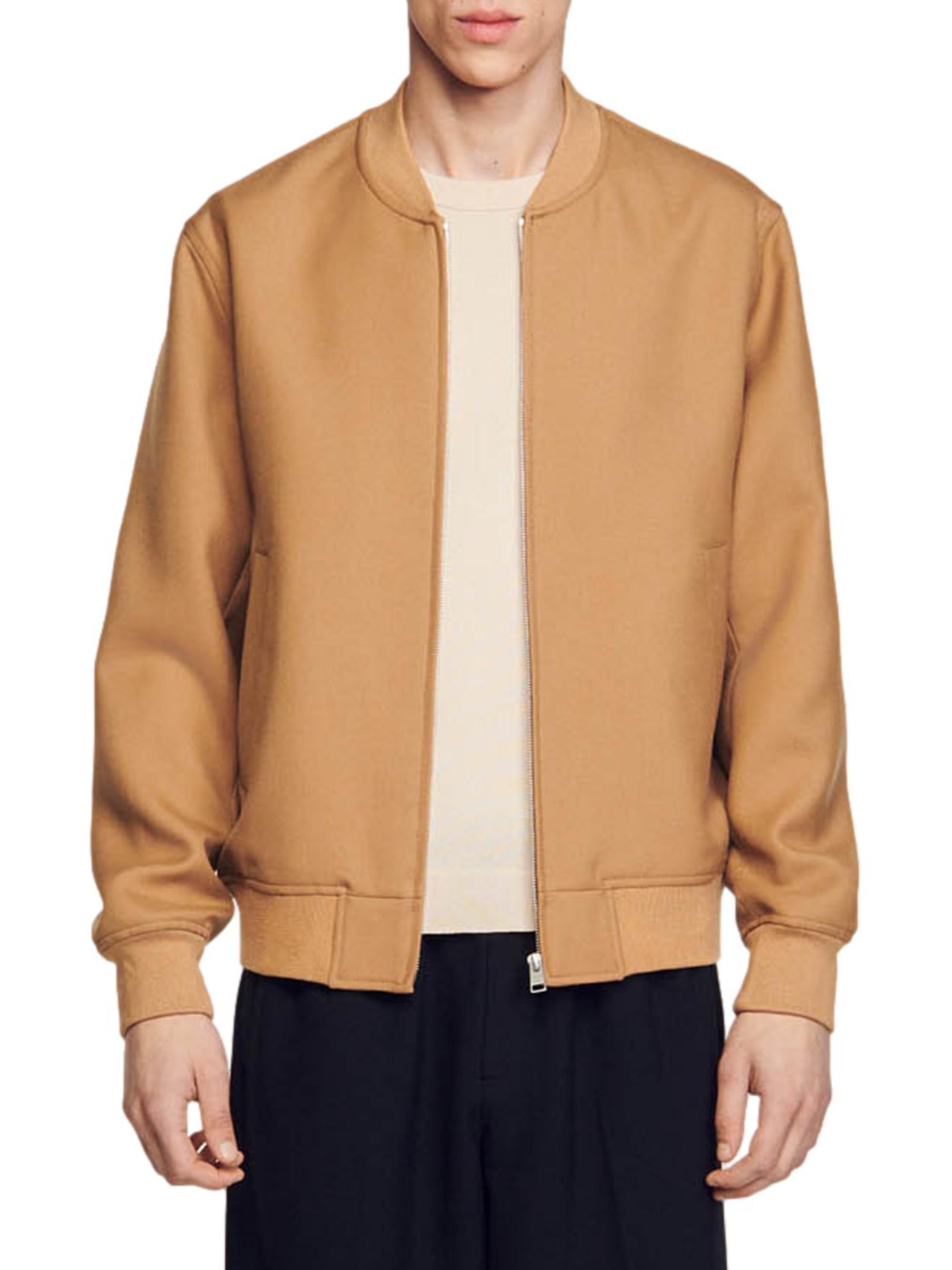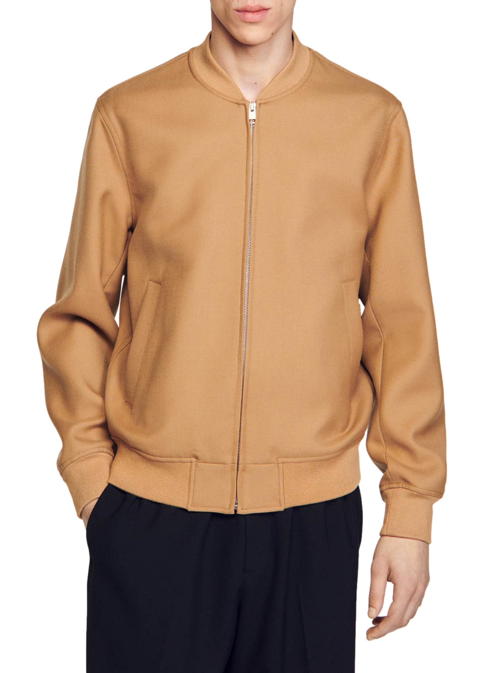Sandro Zip-Up Varsity Jacket CAMEL