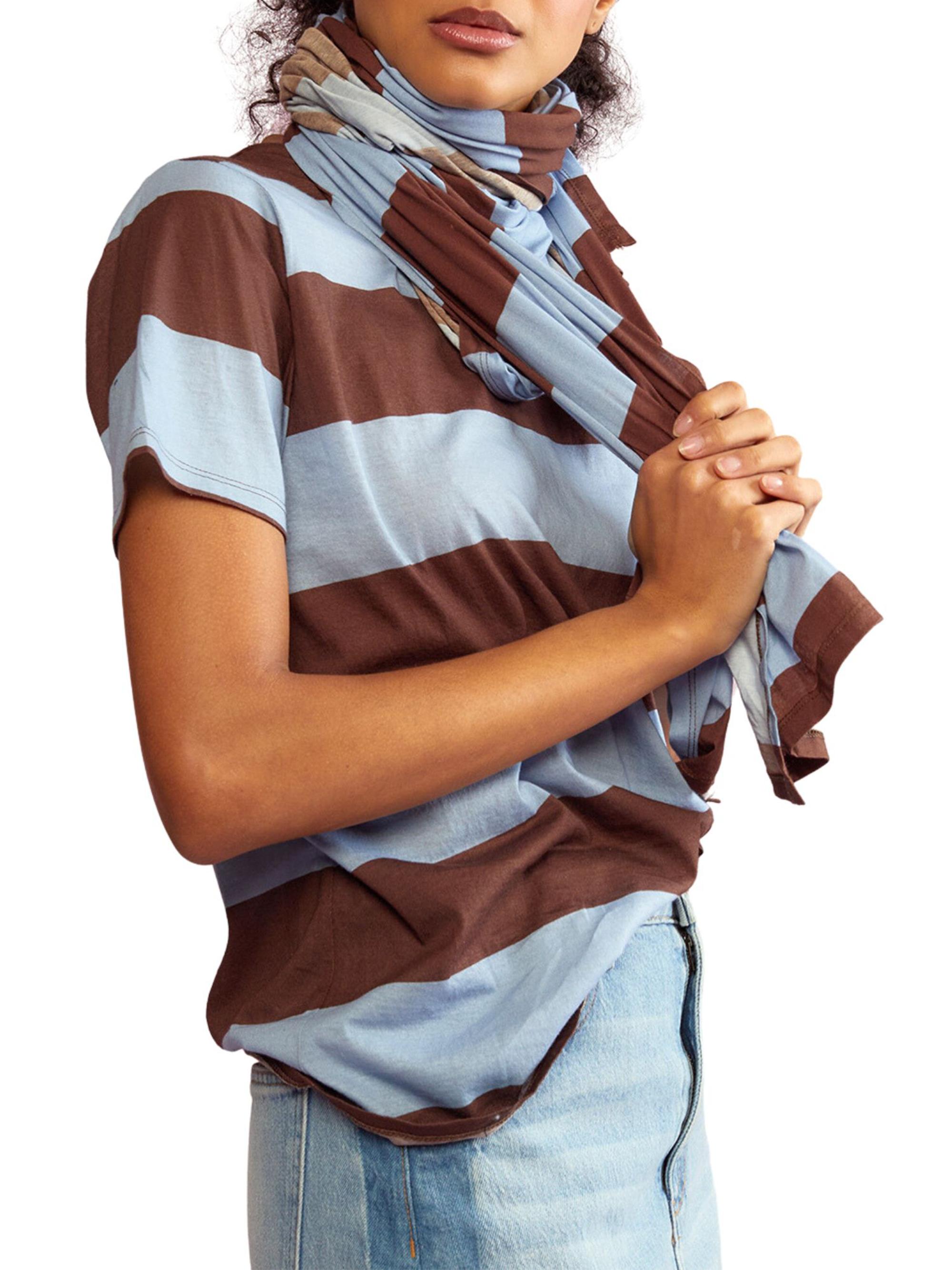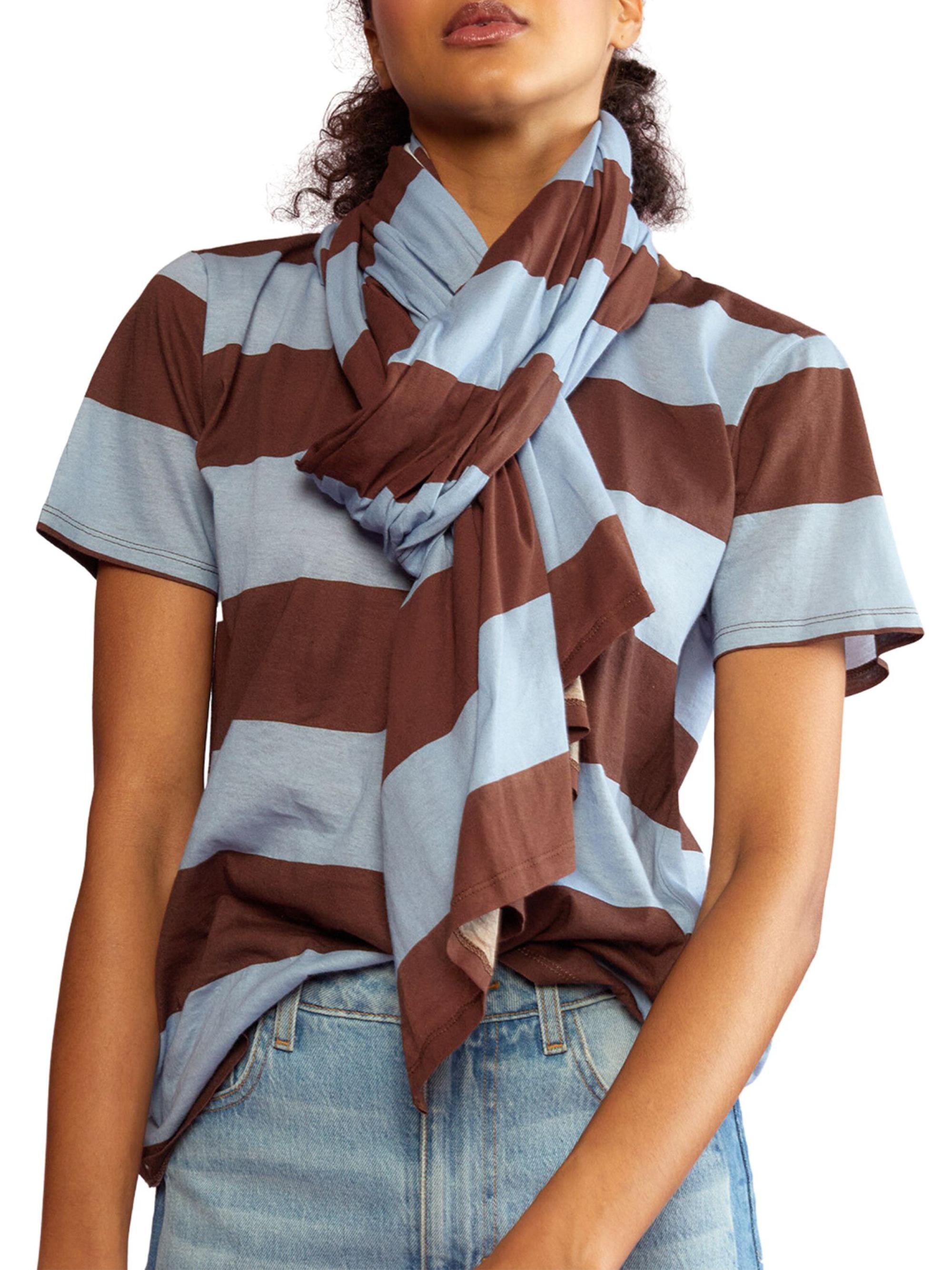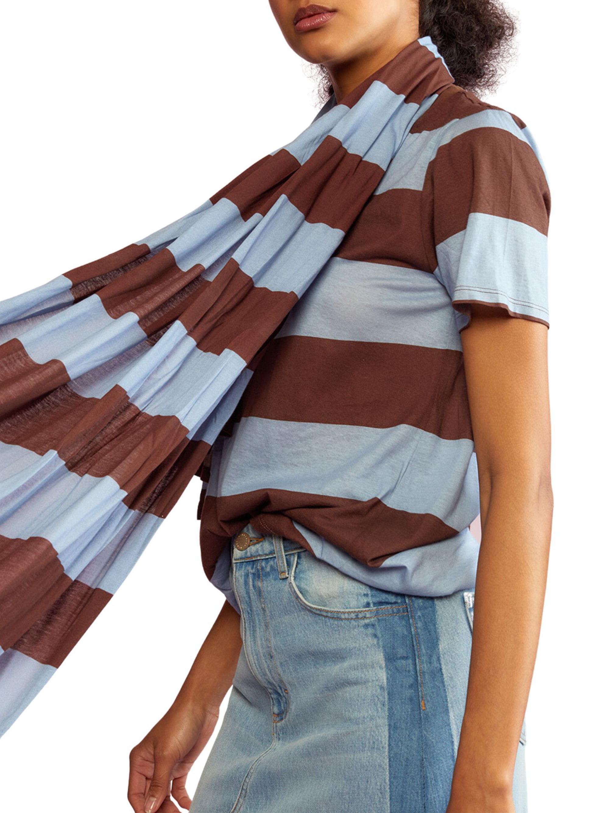 Cynthia Rowley Striped Cotton Jersey Scarf BLUE BROWN