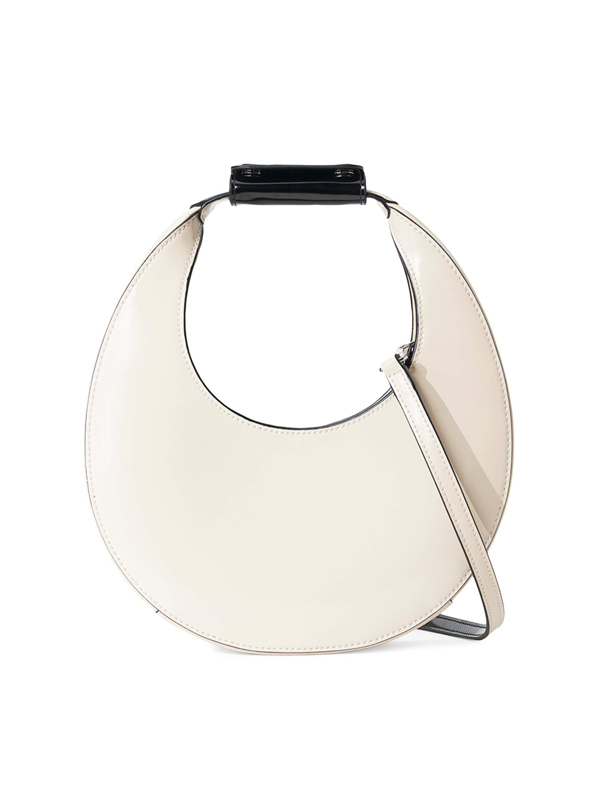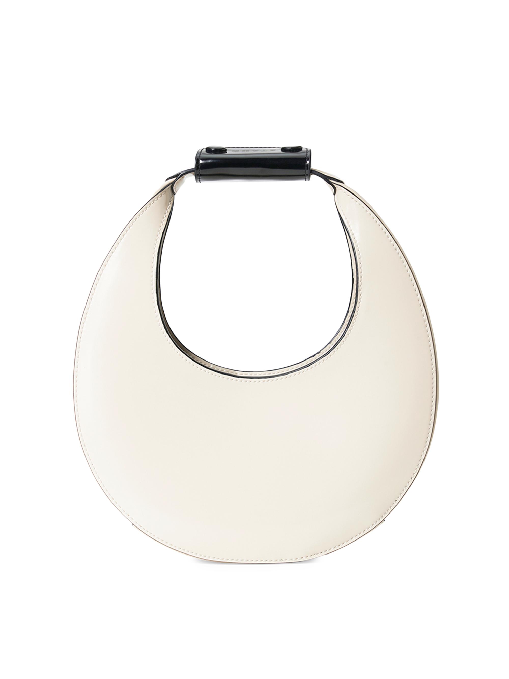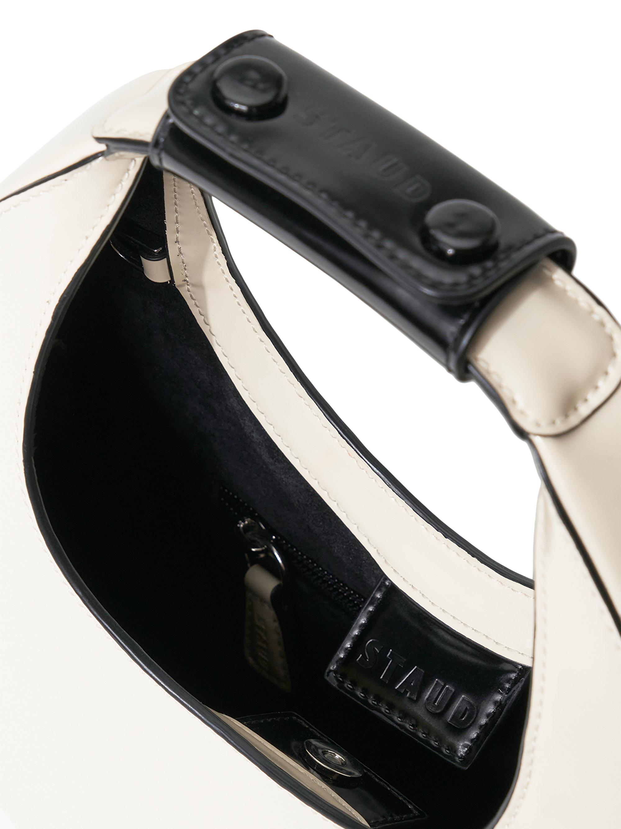 Staud Mini Moon Leather Shoulder Bag CREAM BLACK
