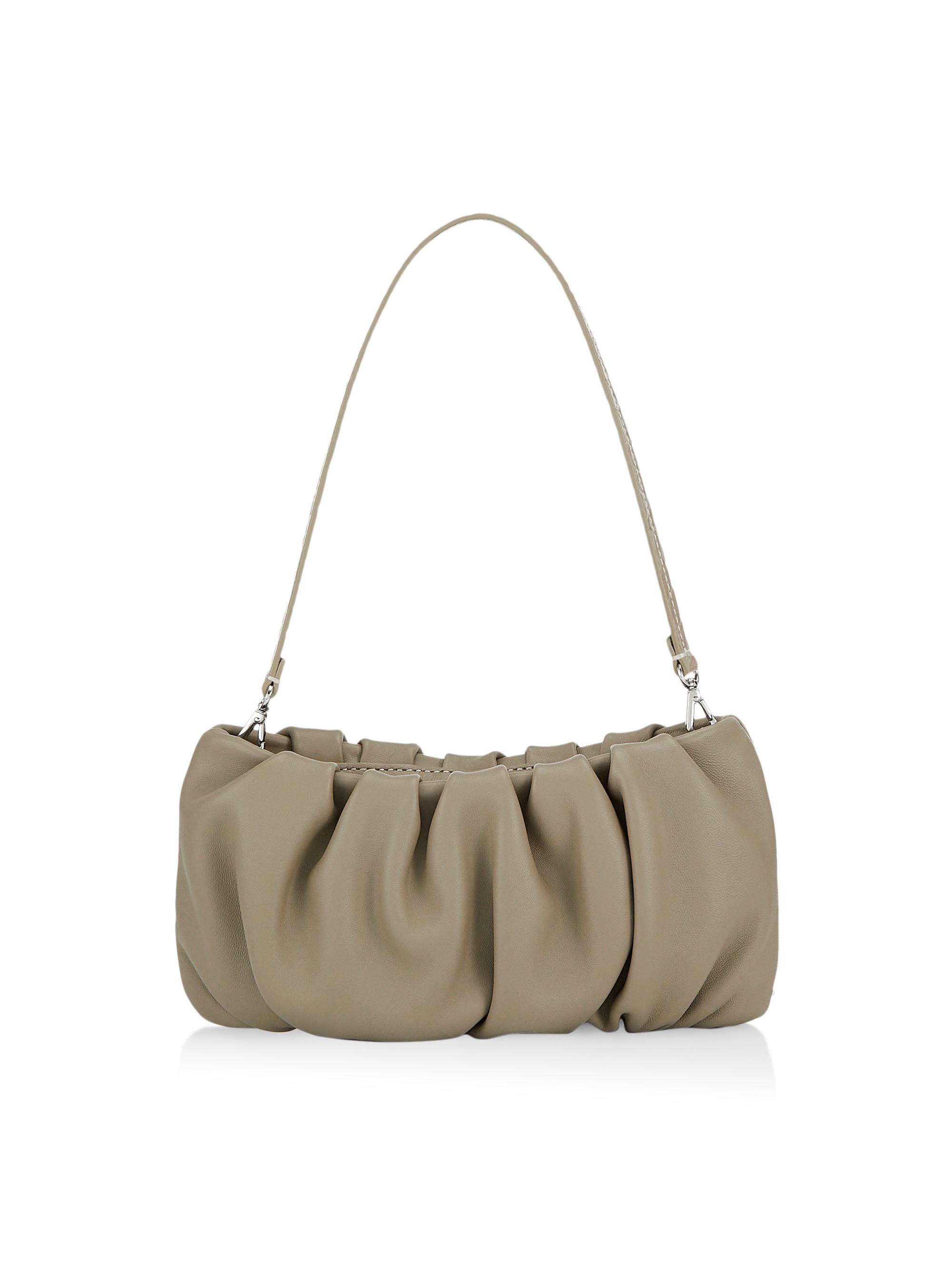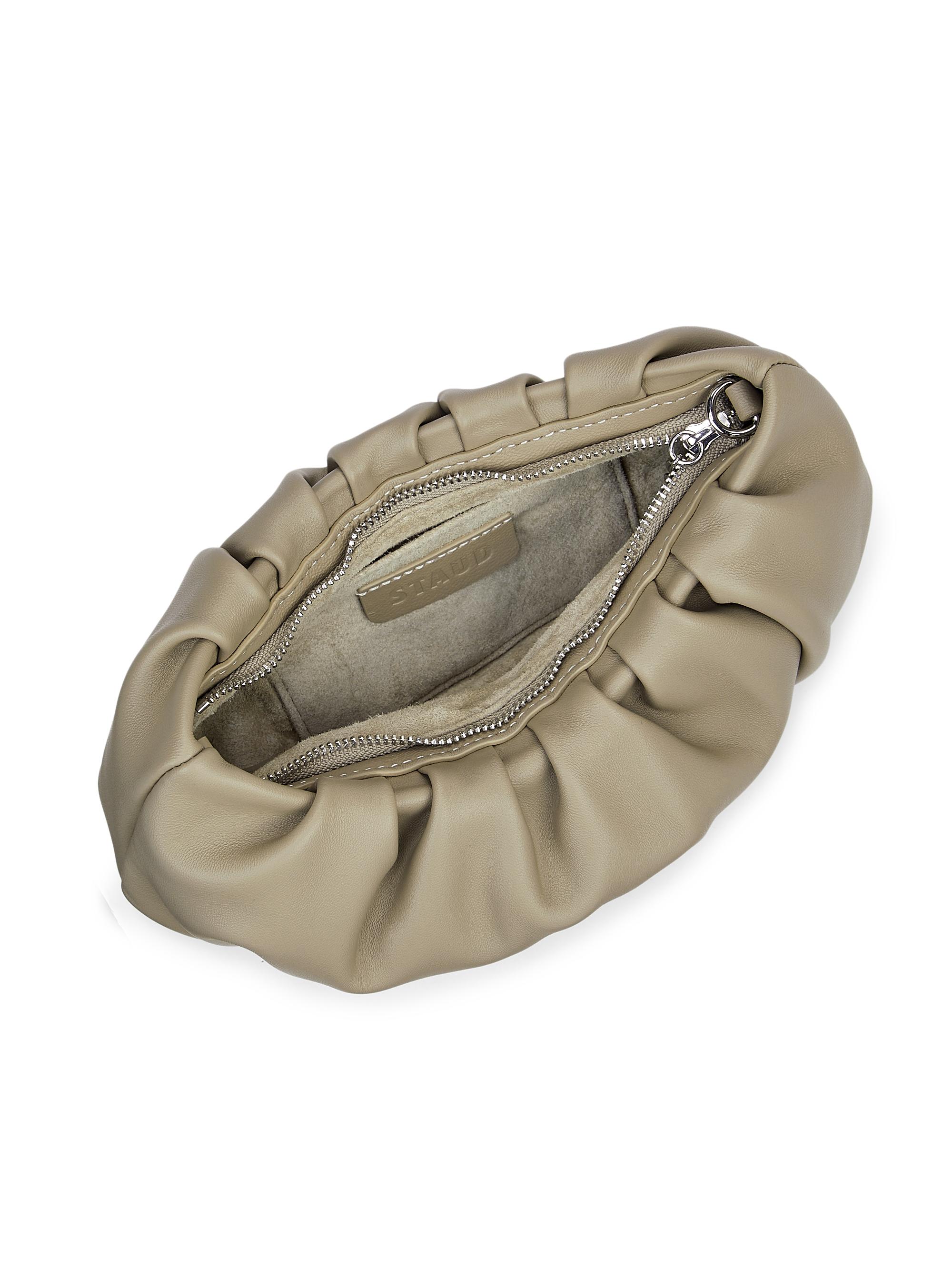 Staud Bean Ruched Leather Shoulder Bag MINK