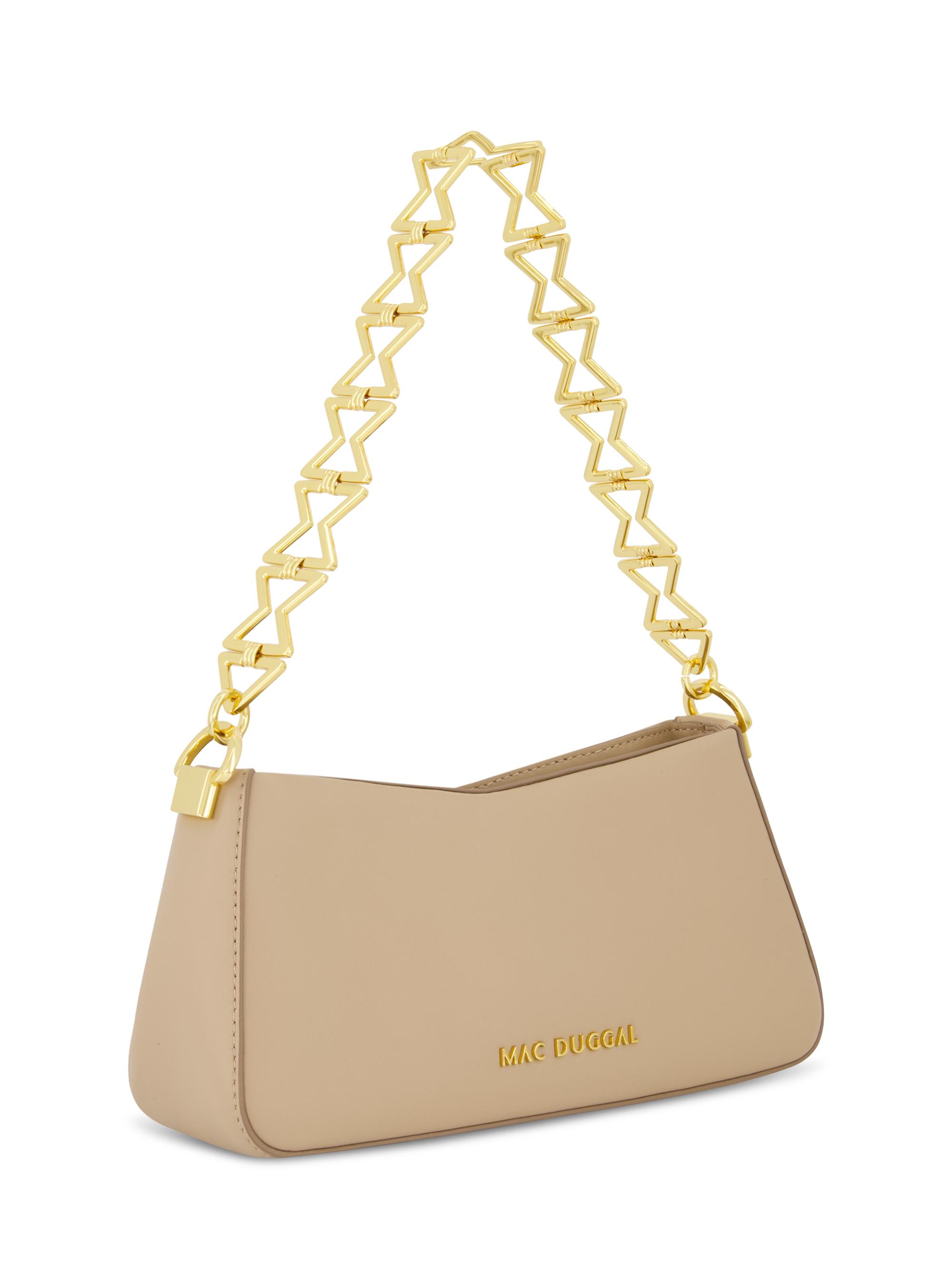 Mac Duggal Medium Chain-Link & Leather Shoulder Bag TAUPE