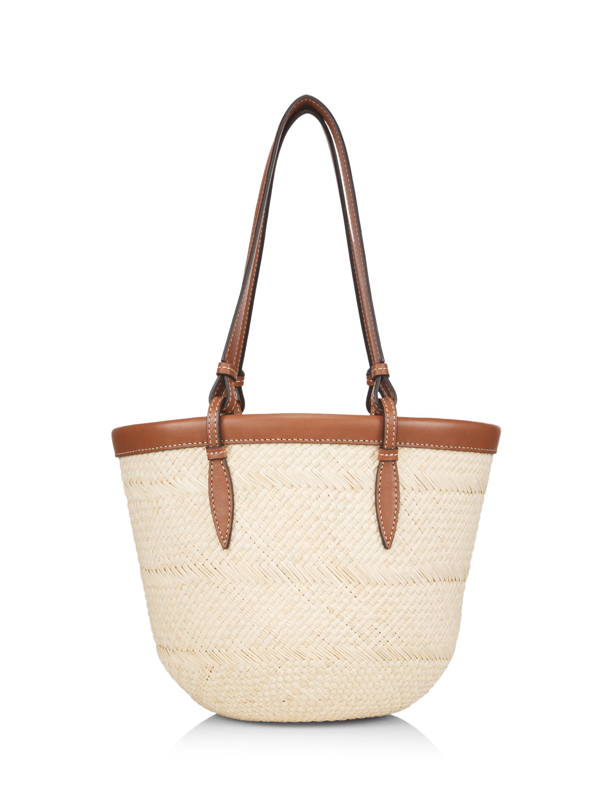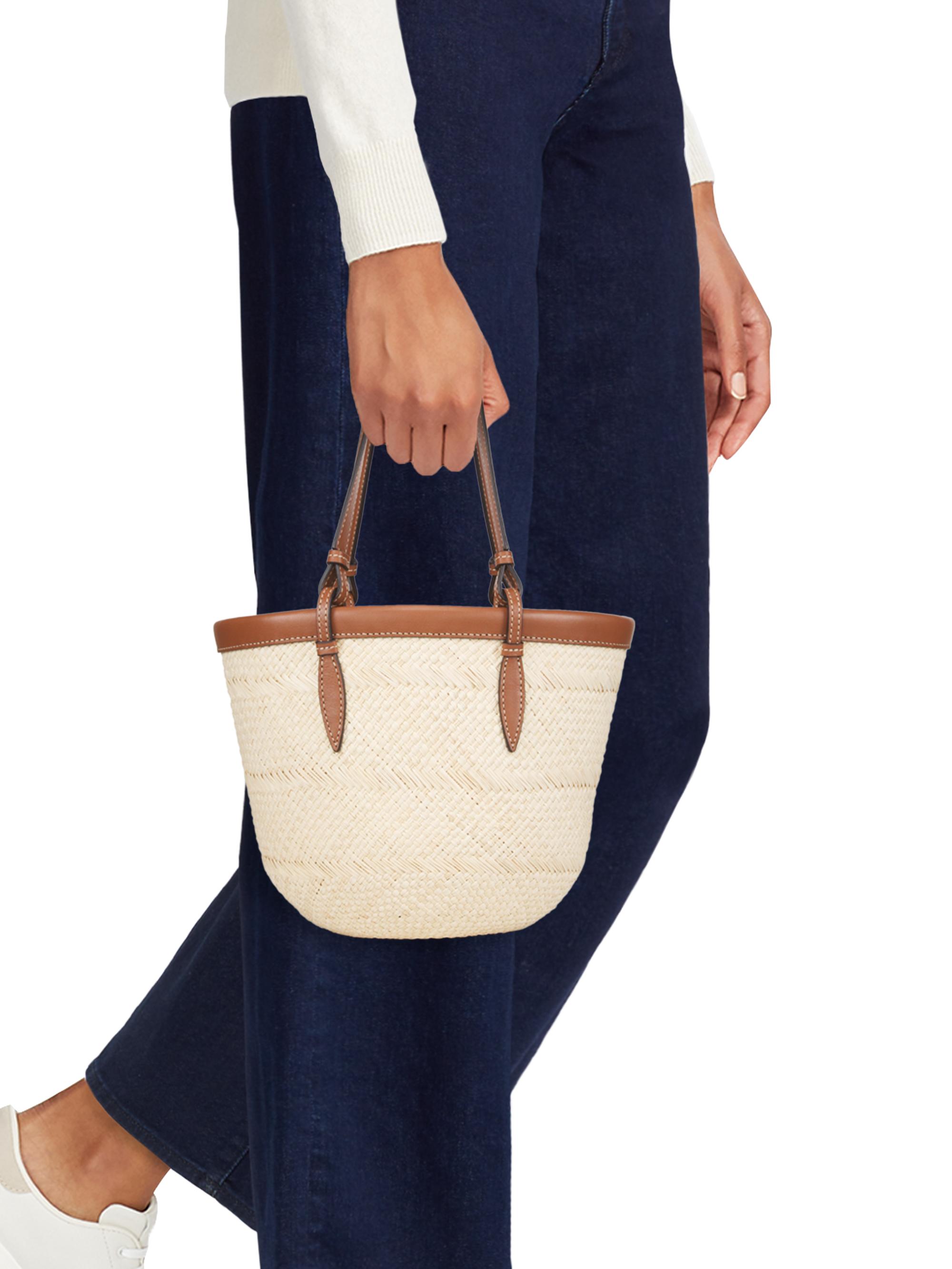 Hunting Season Small Leather-Trimmed Raffia Tote Bag