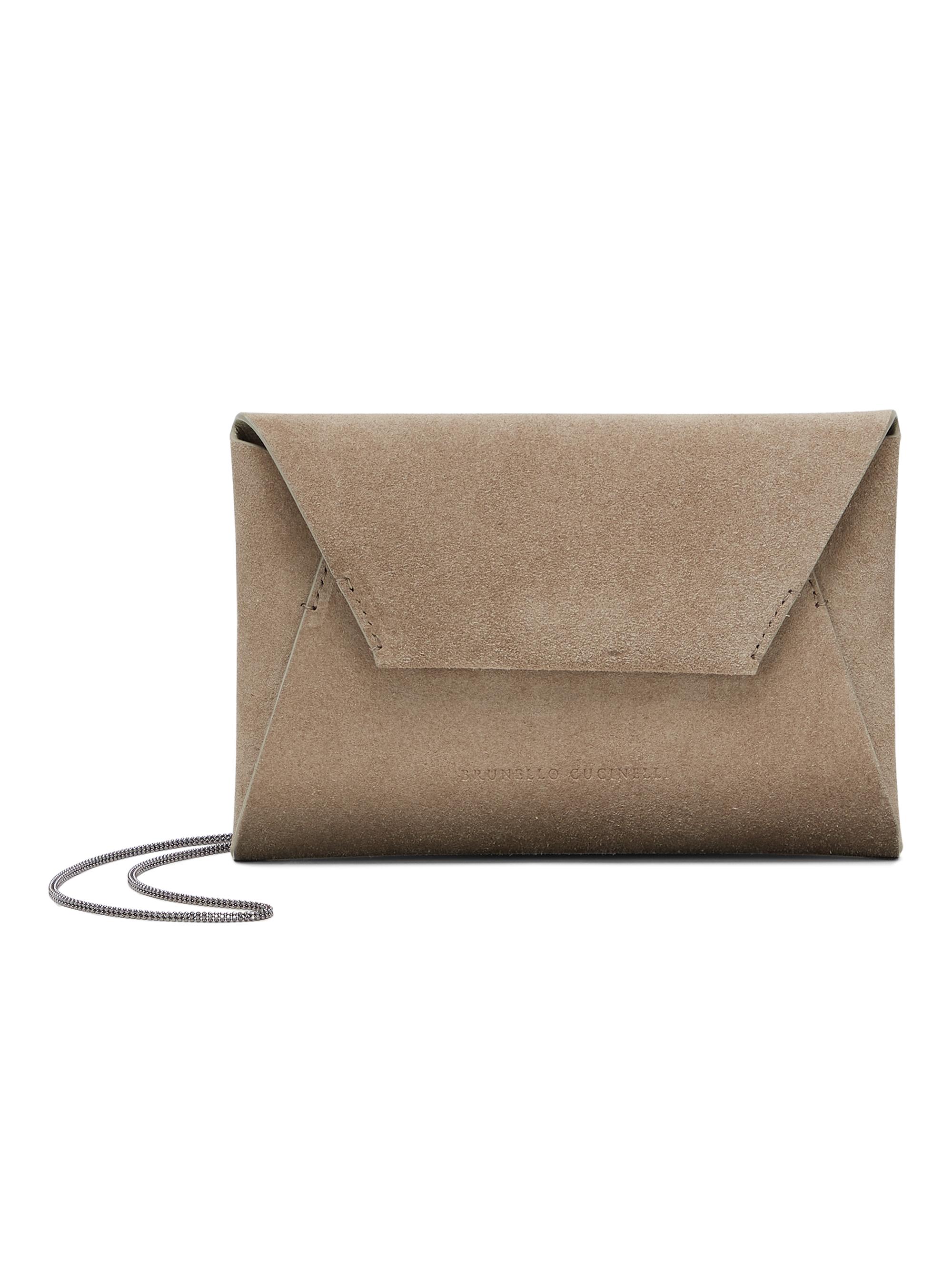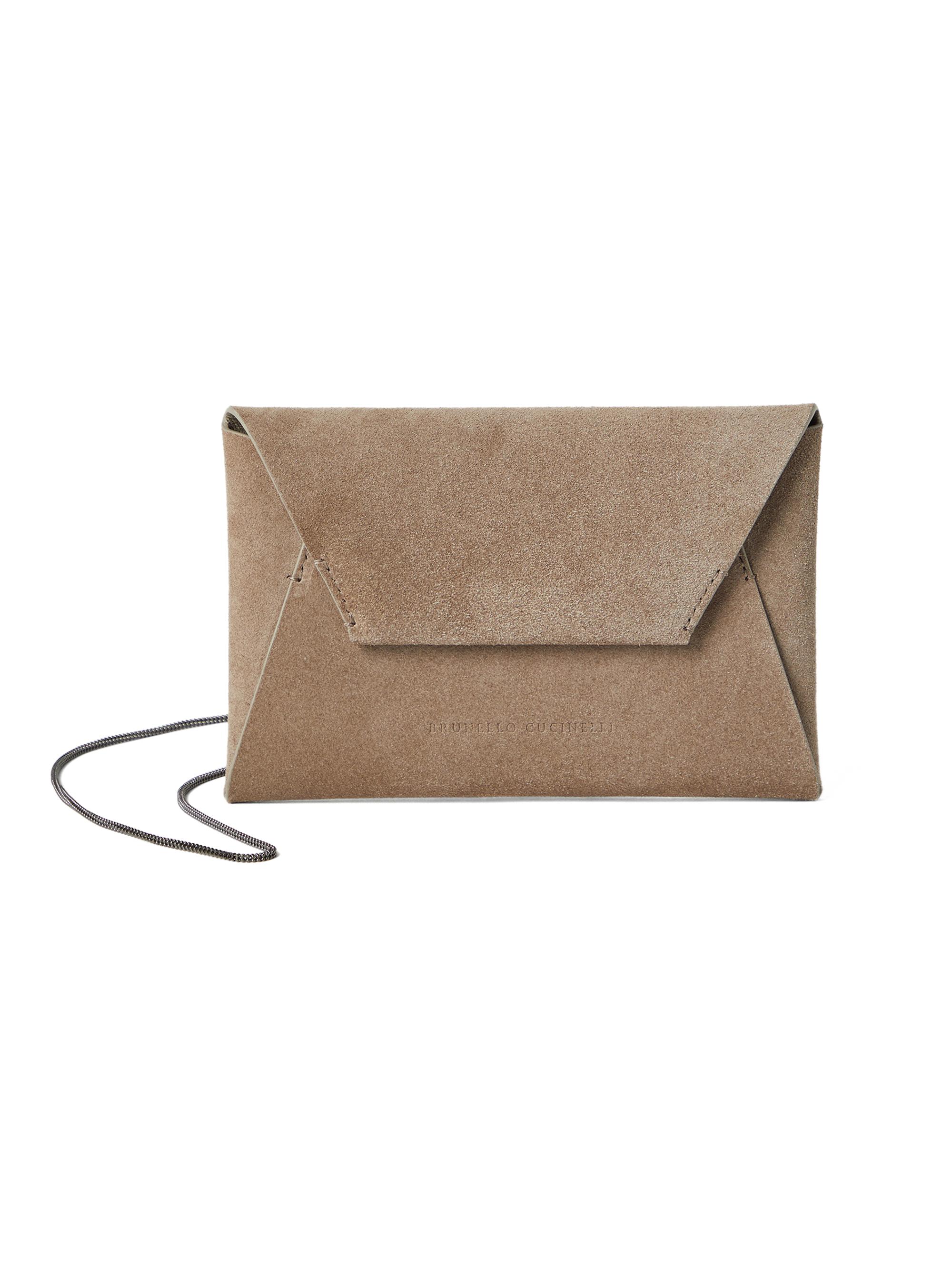 Brunello Cucinelli Suede Envelope Bag With Precious Chain WARM BEIGE
