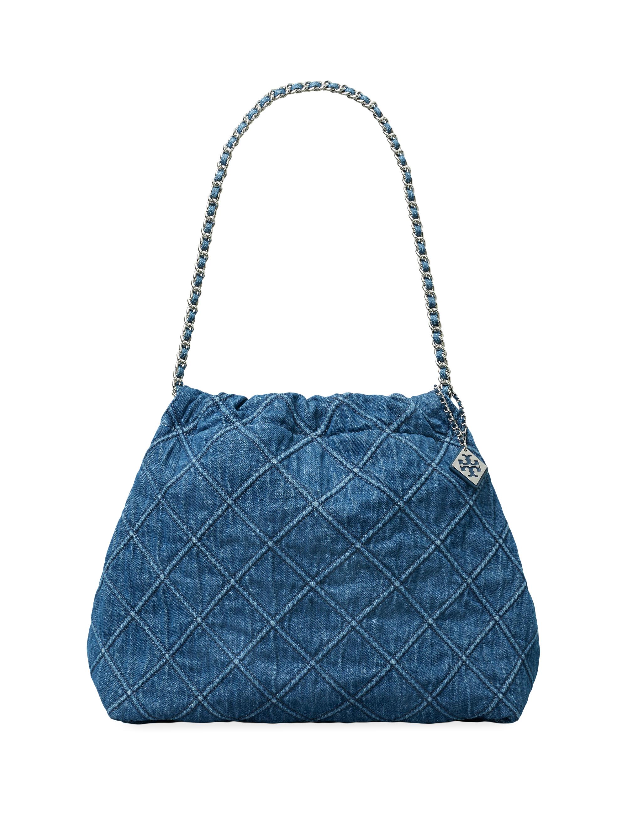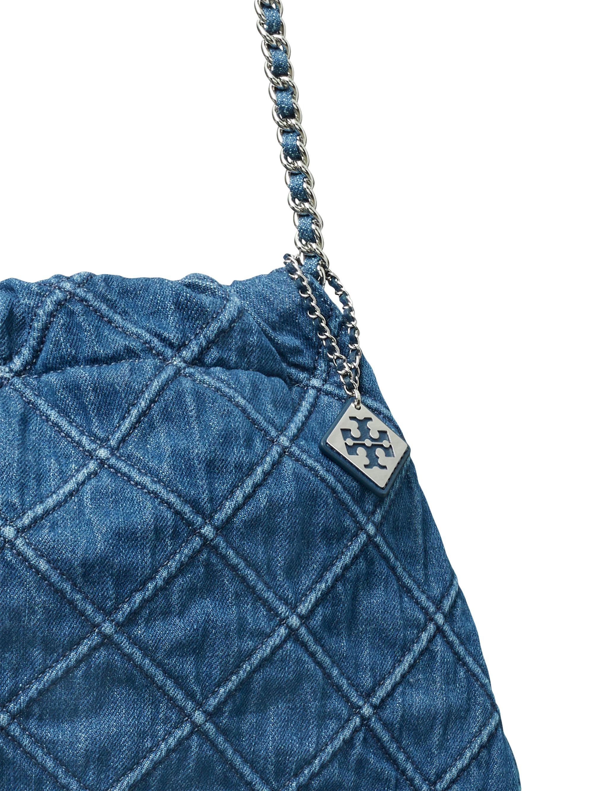 Tory Burch Fleming Quilted Denim Drawstring Shoulder Bag