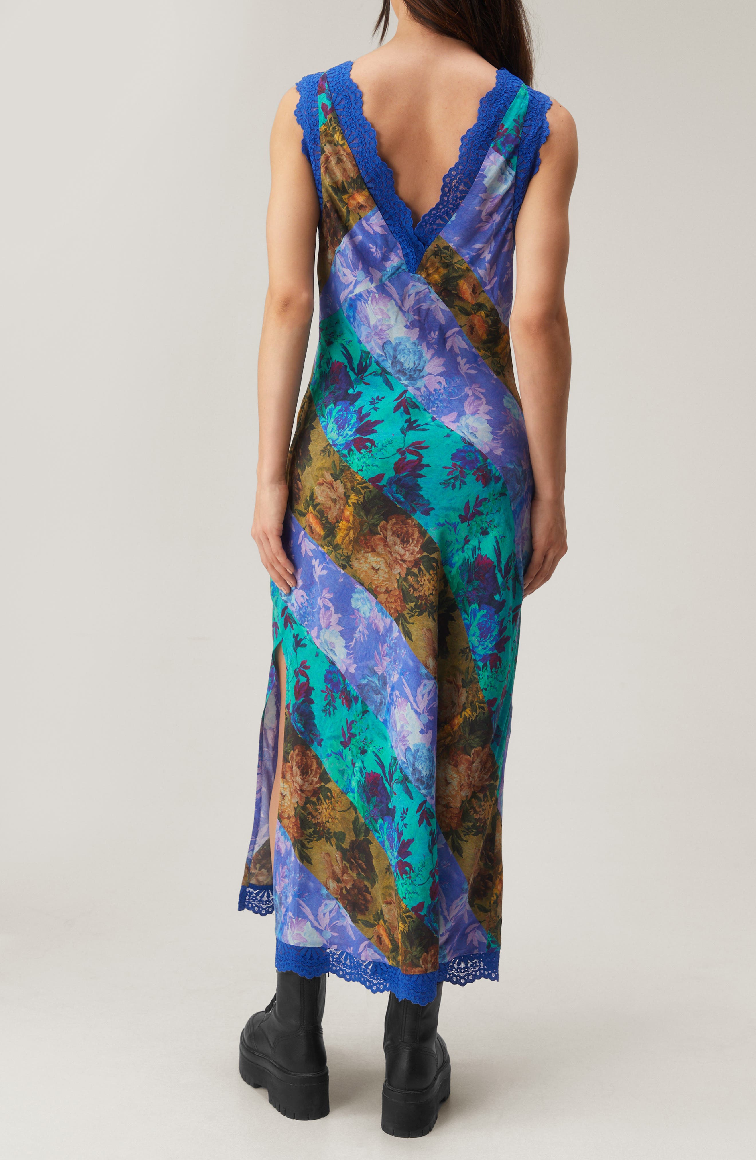 NASTY GAL Mixed Floral Print Lace Trim Midi Dress_Blue