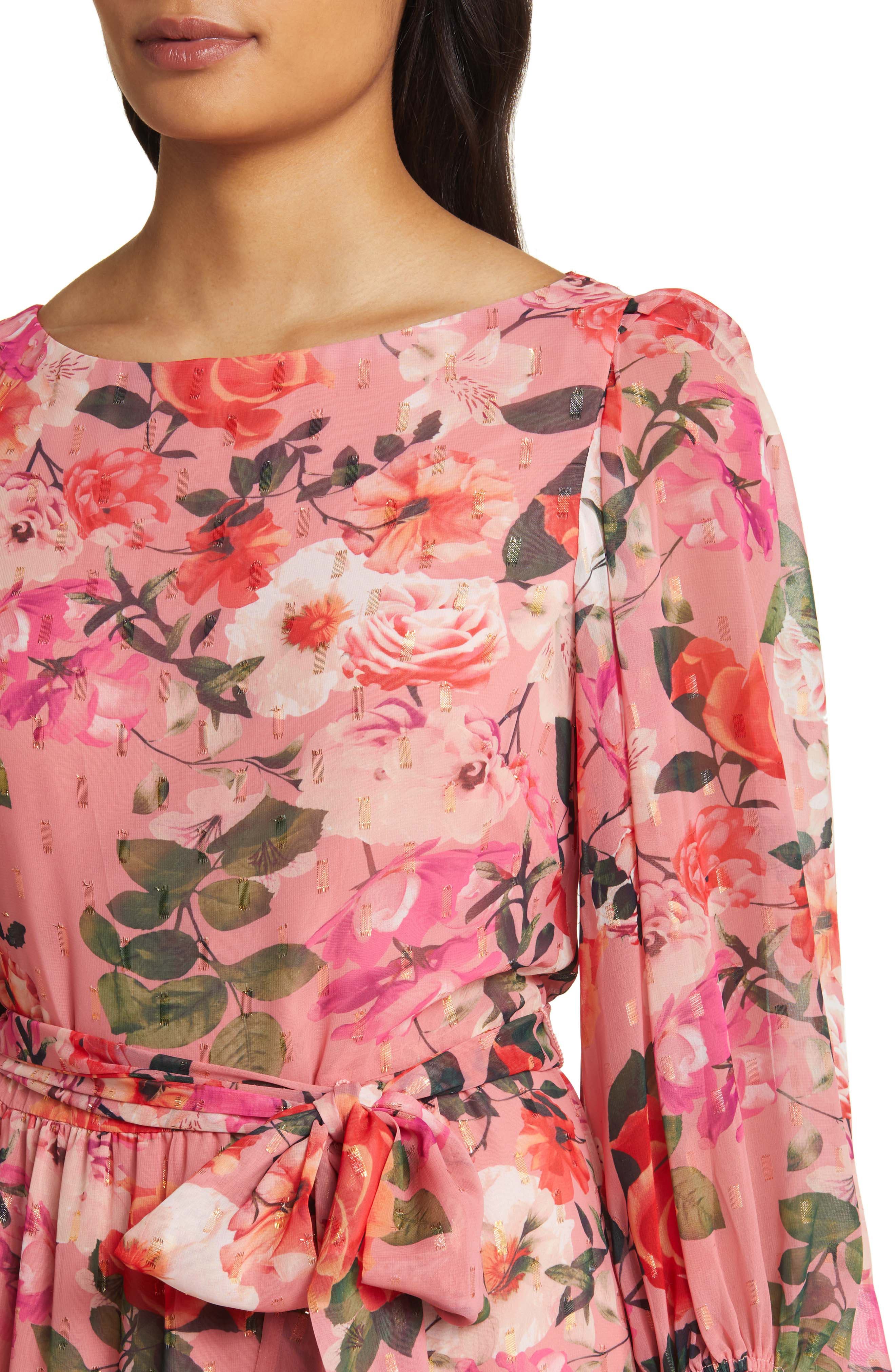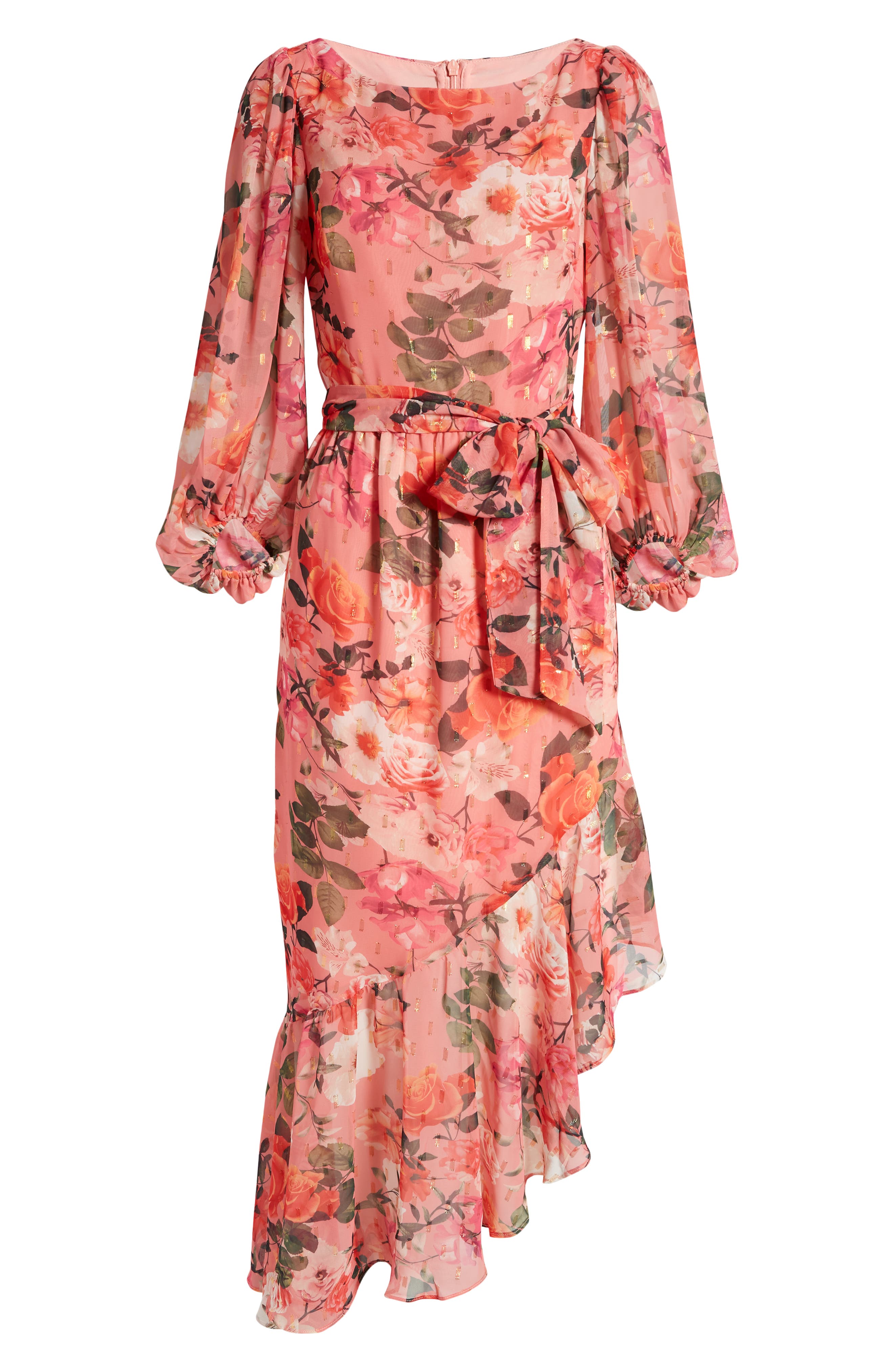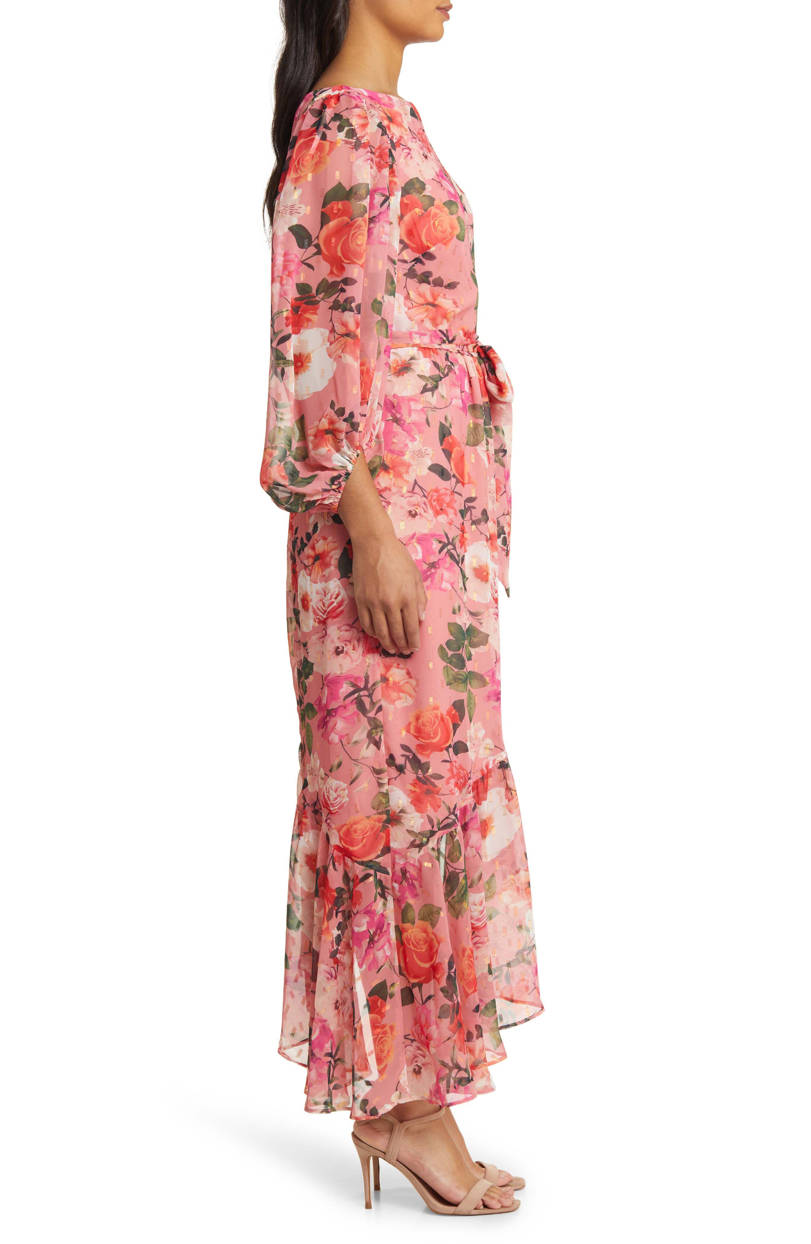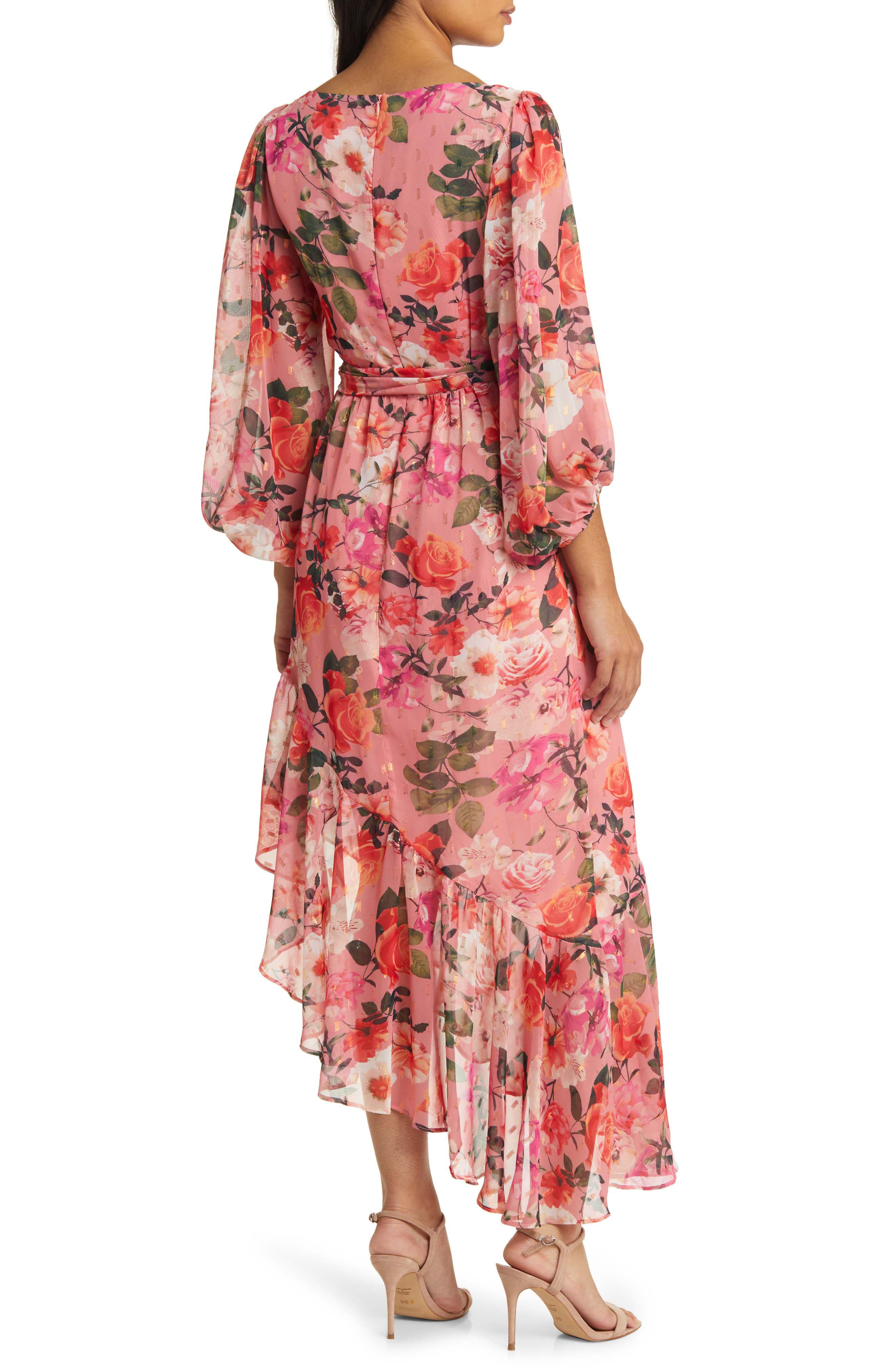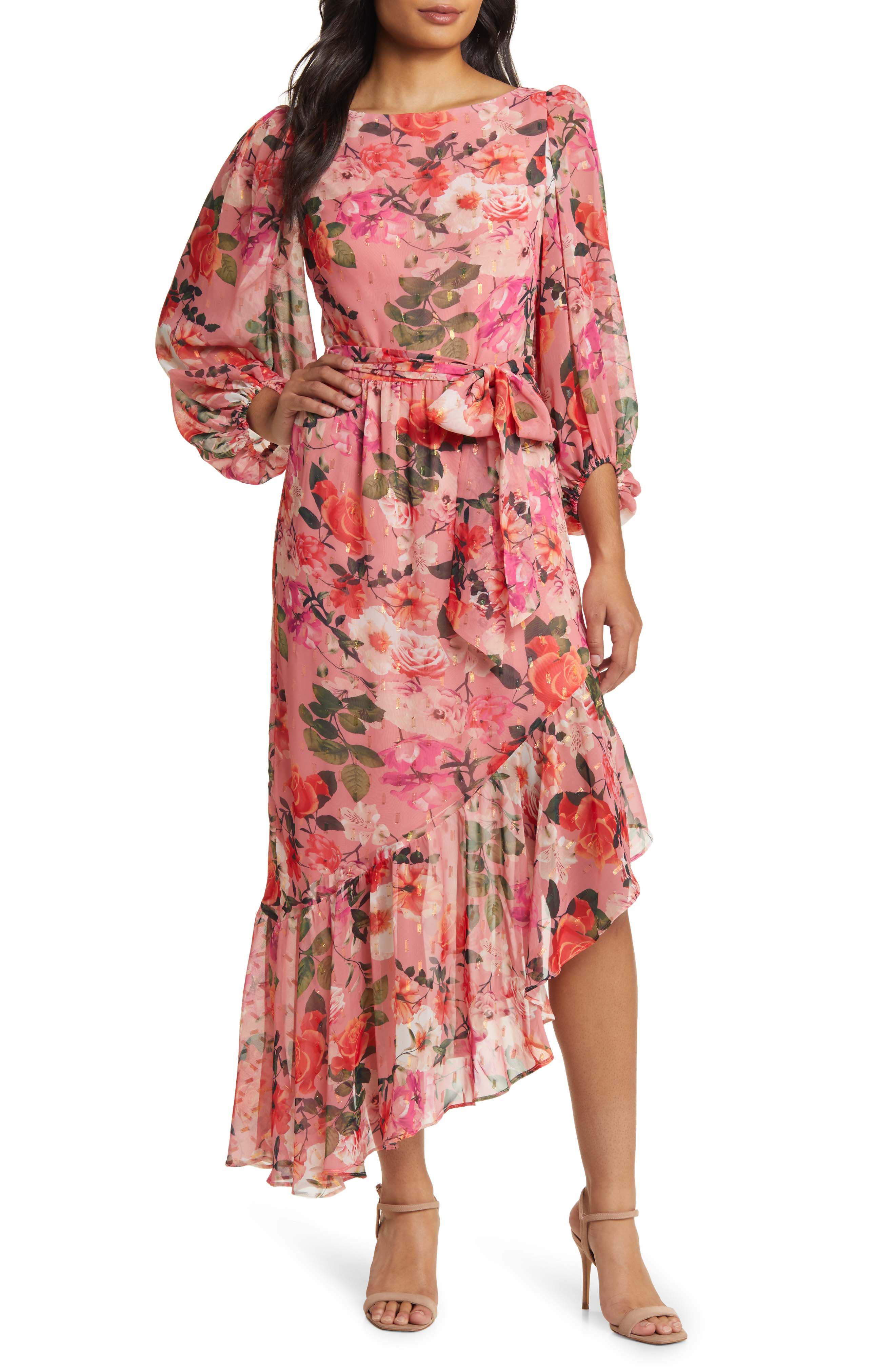 Eliza J Floral Balloon Sleeve Asymmetric Maxi Dress_Rose