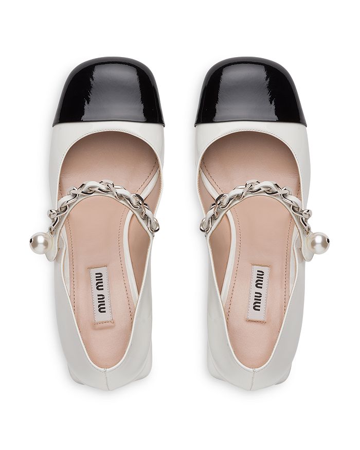 Miu Miu Womens Cap Toe Block Heel Mary Jane Pumps