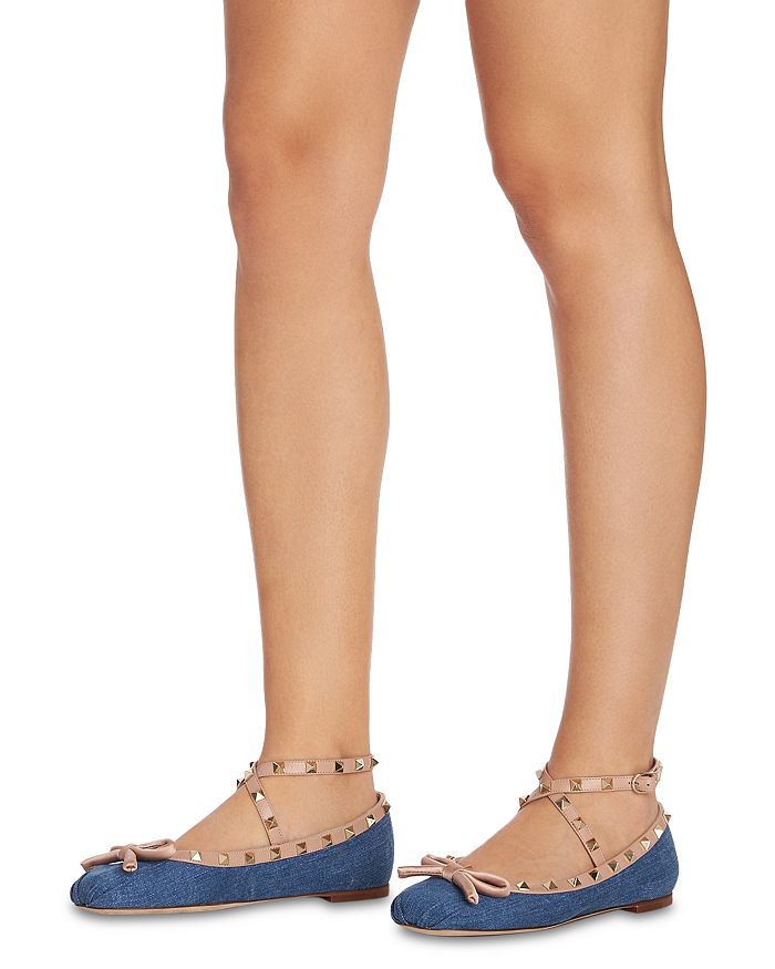 Valentino Garavani Womens Embellished Ankle Strap Ballet Flats