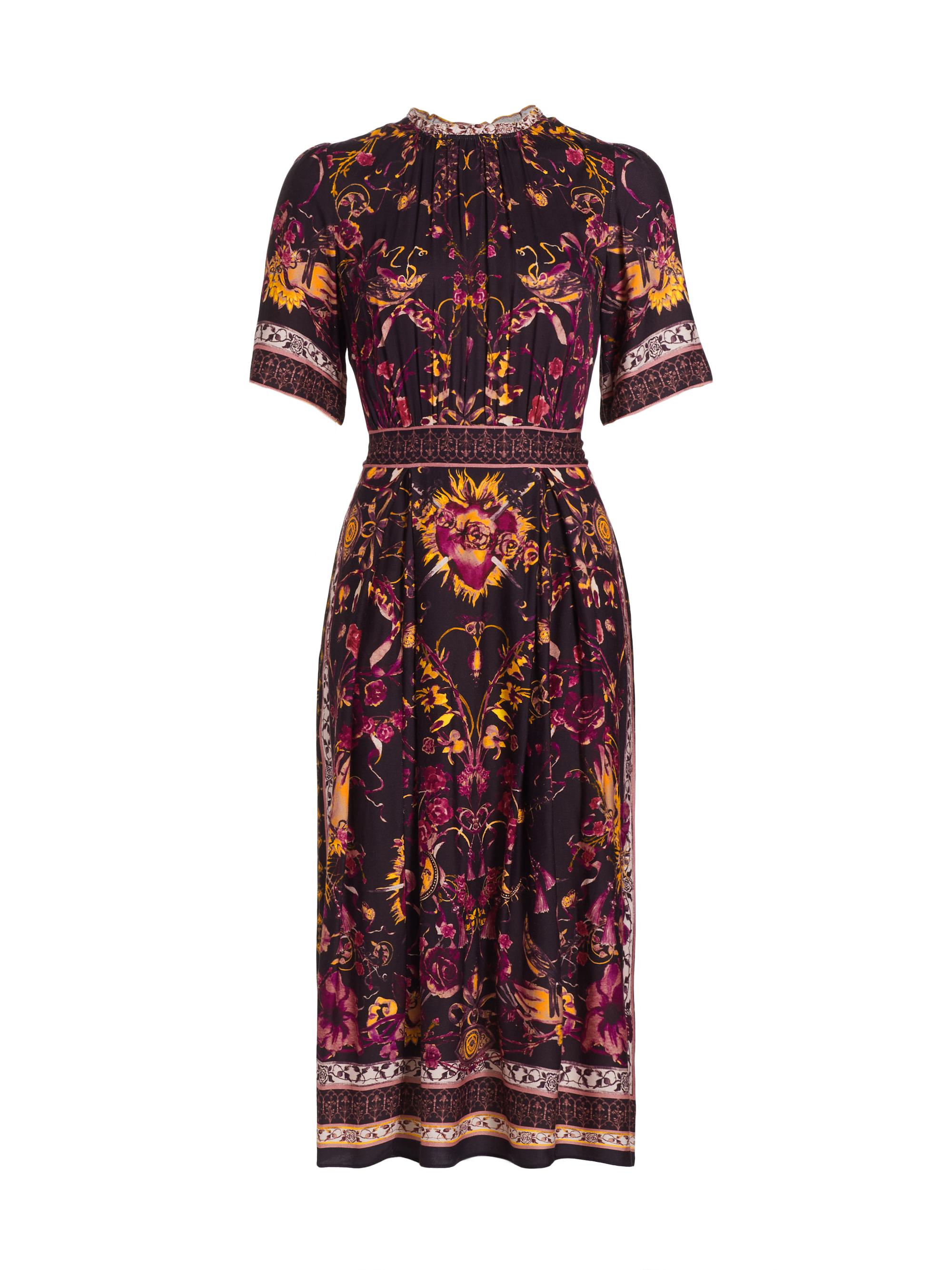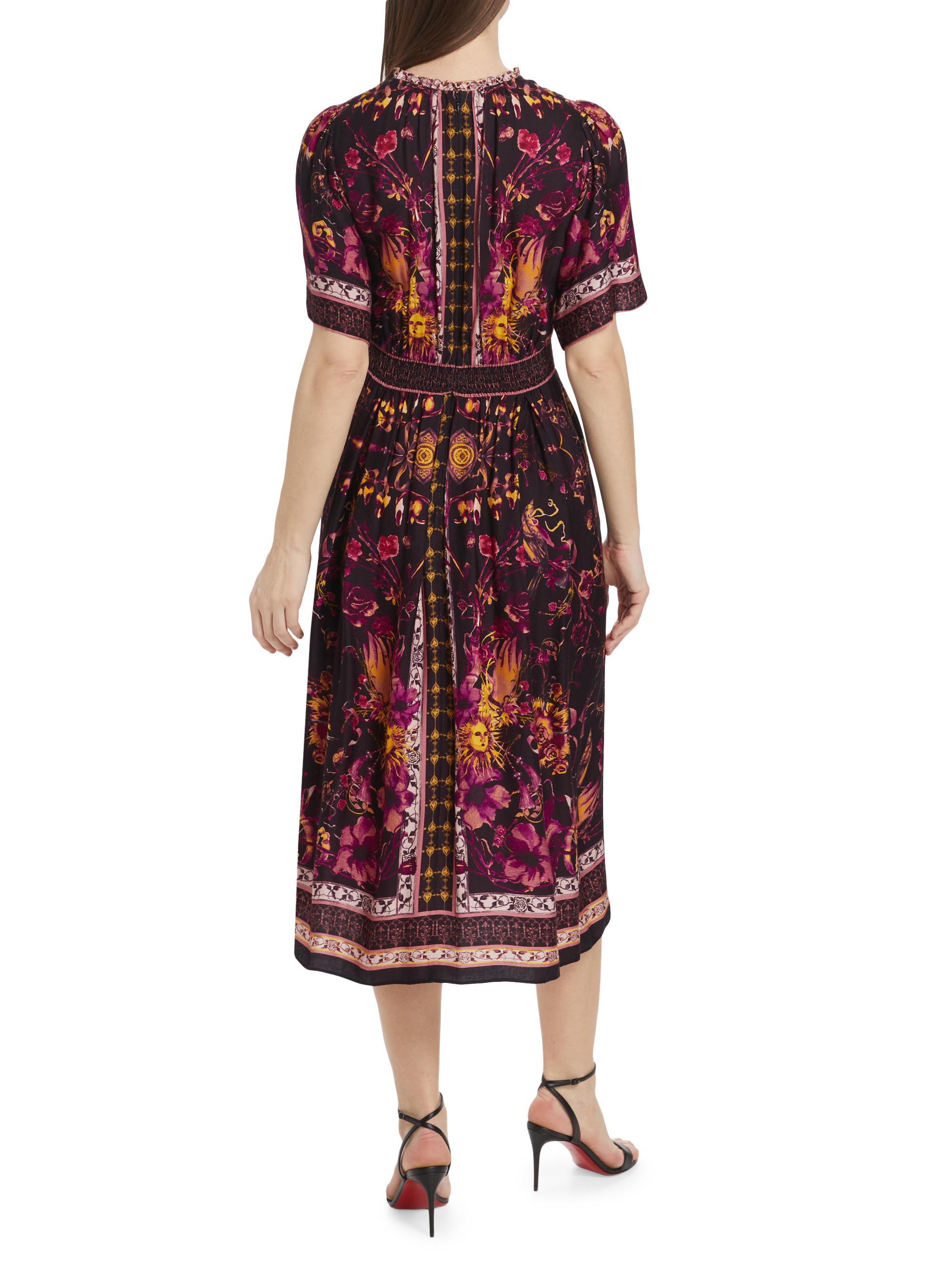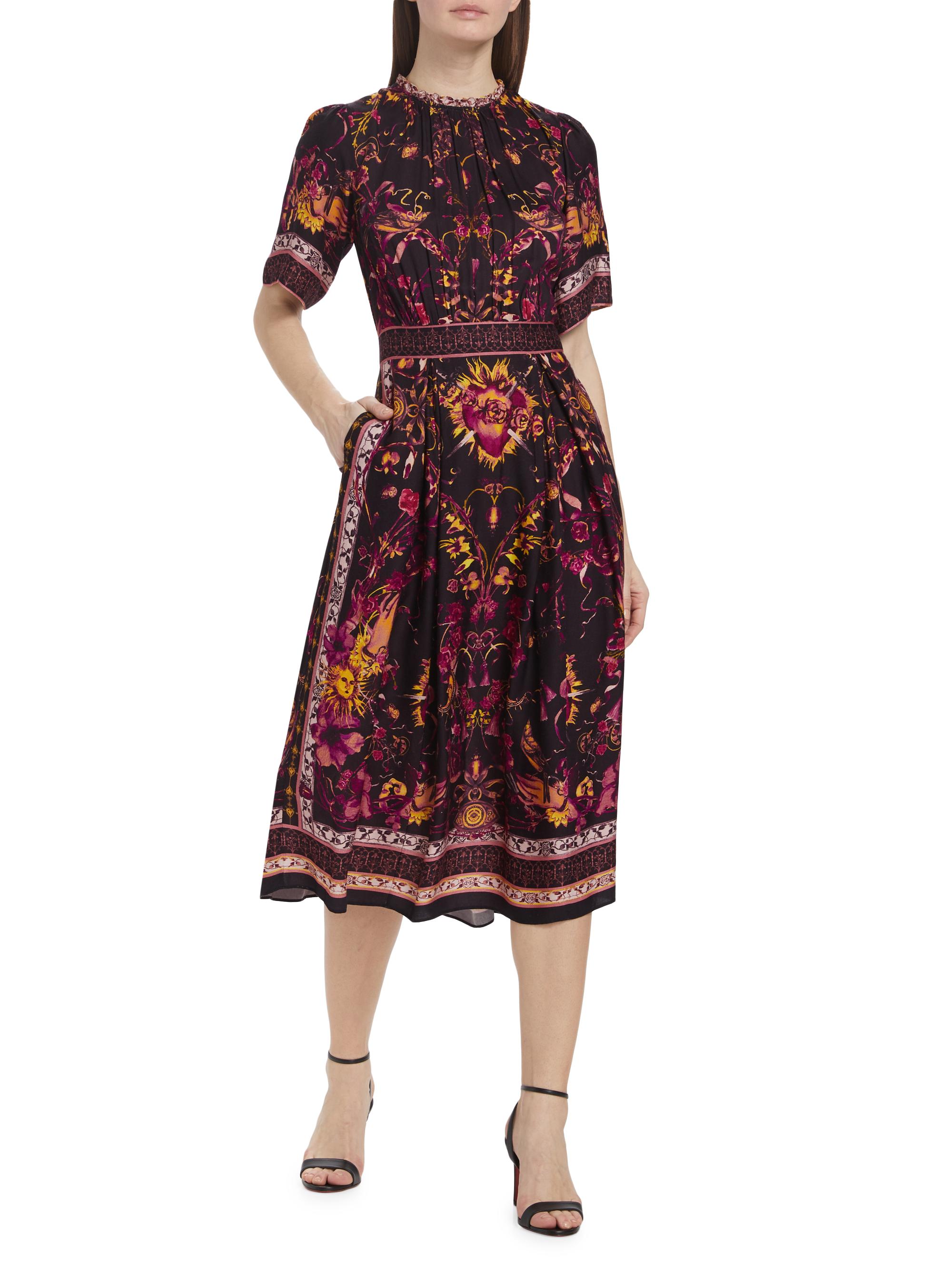 Marchesa Rosa Soma Scarf Print Midi Dress