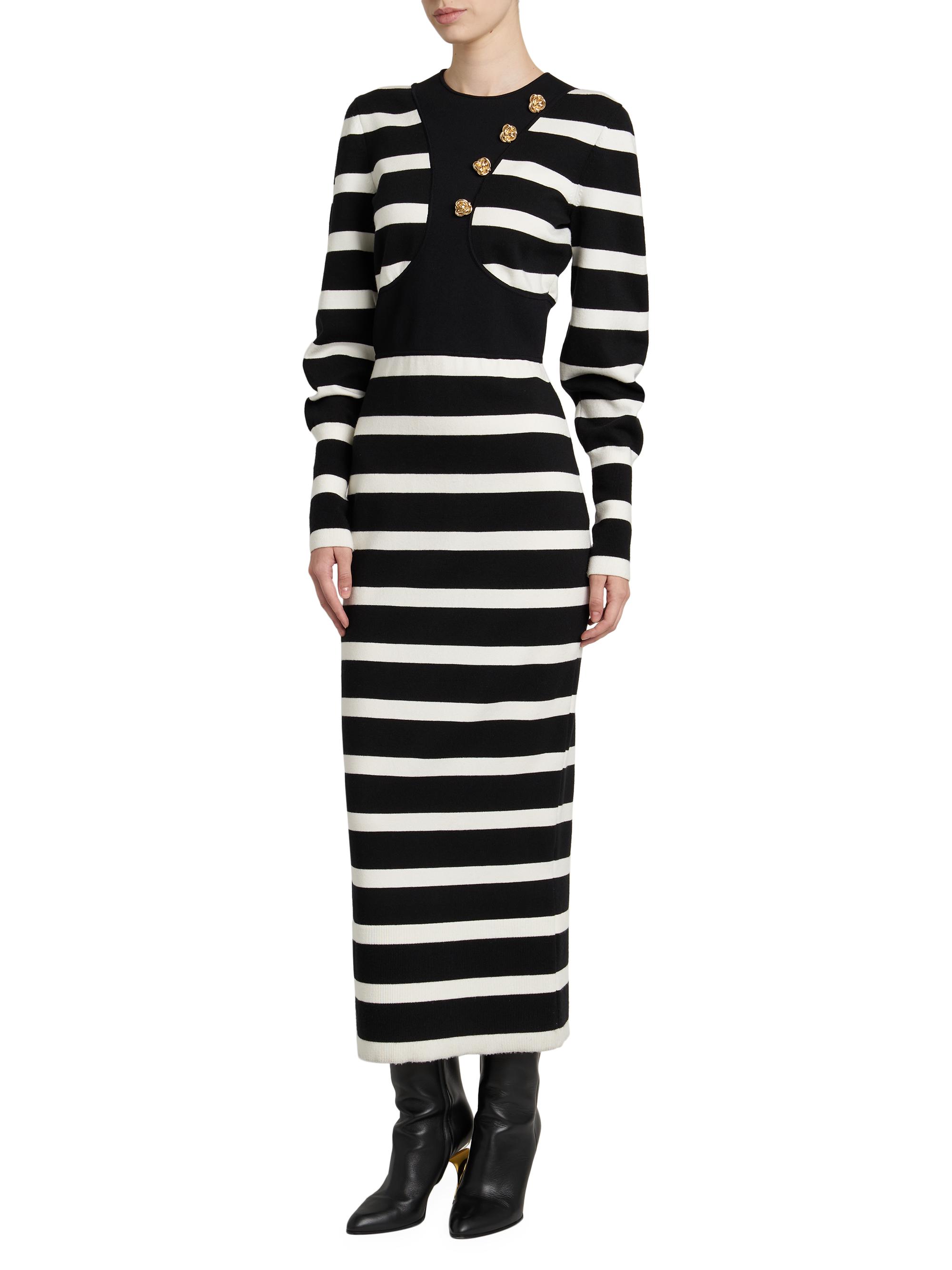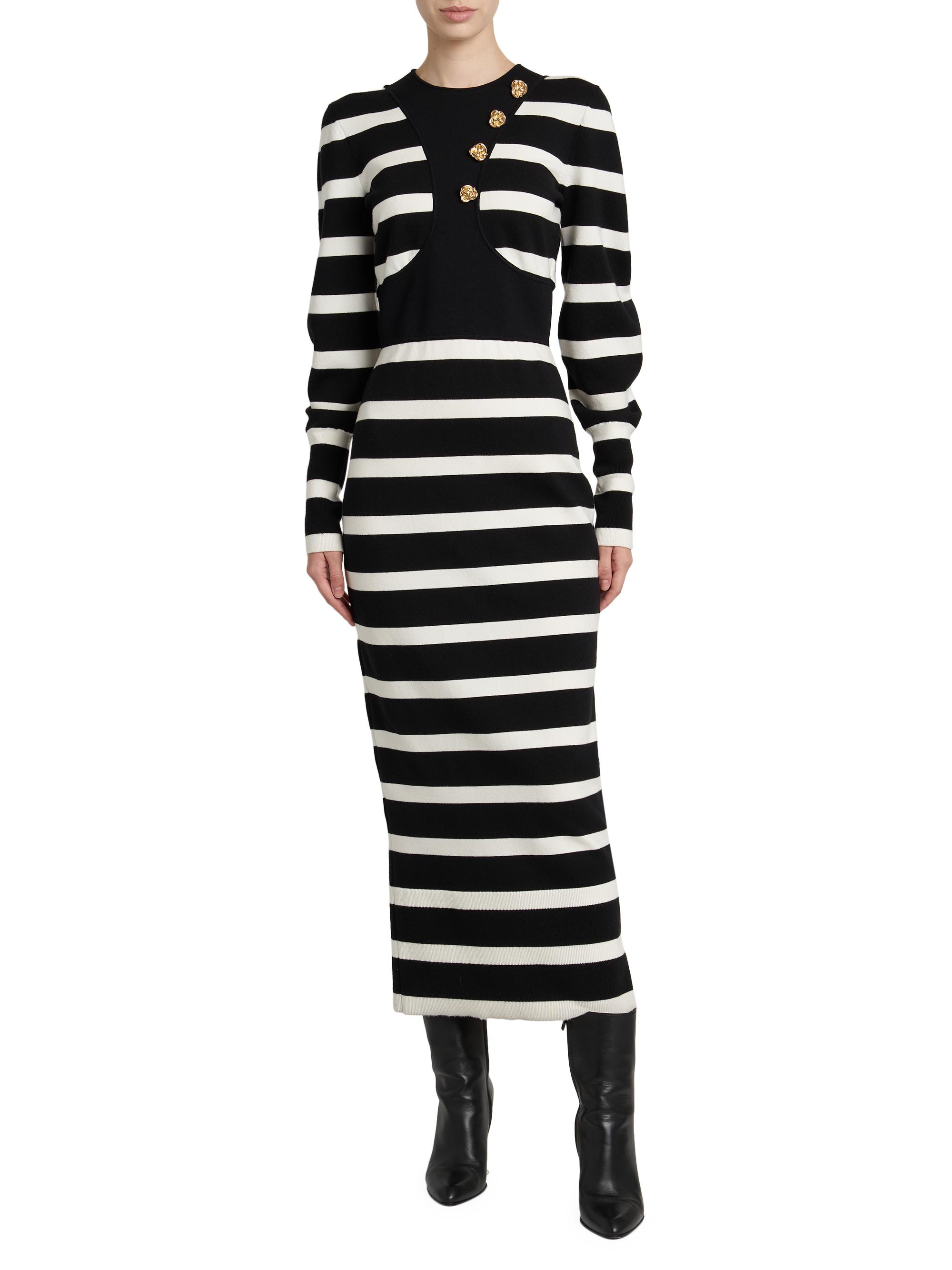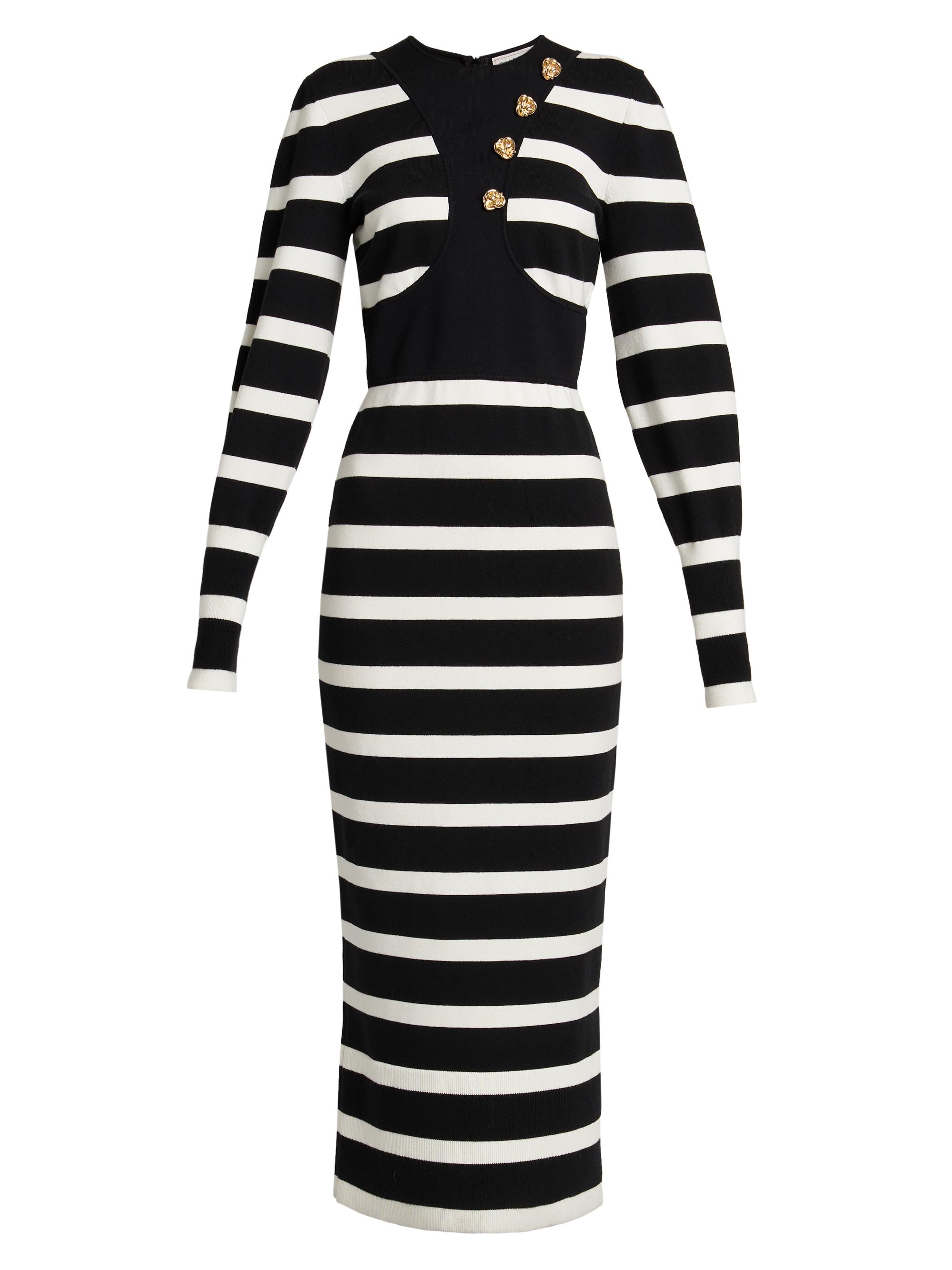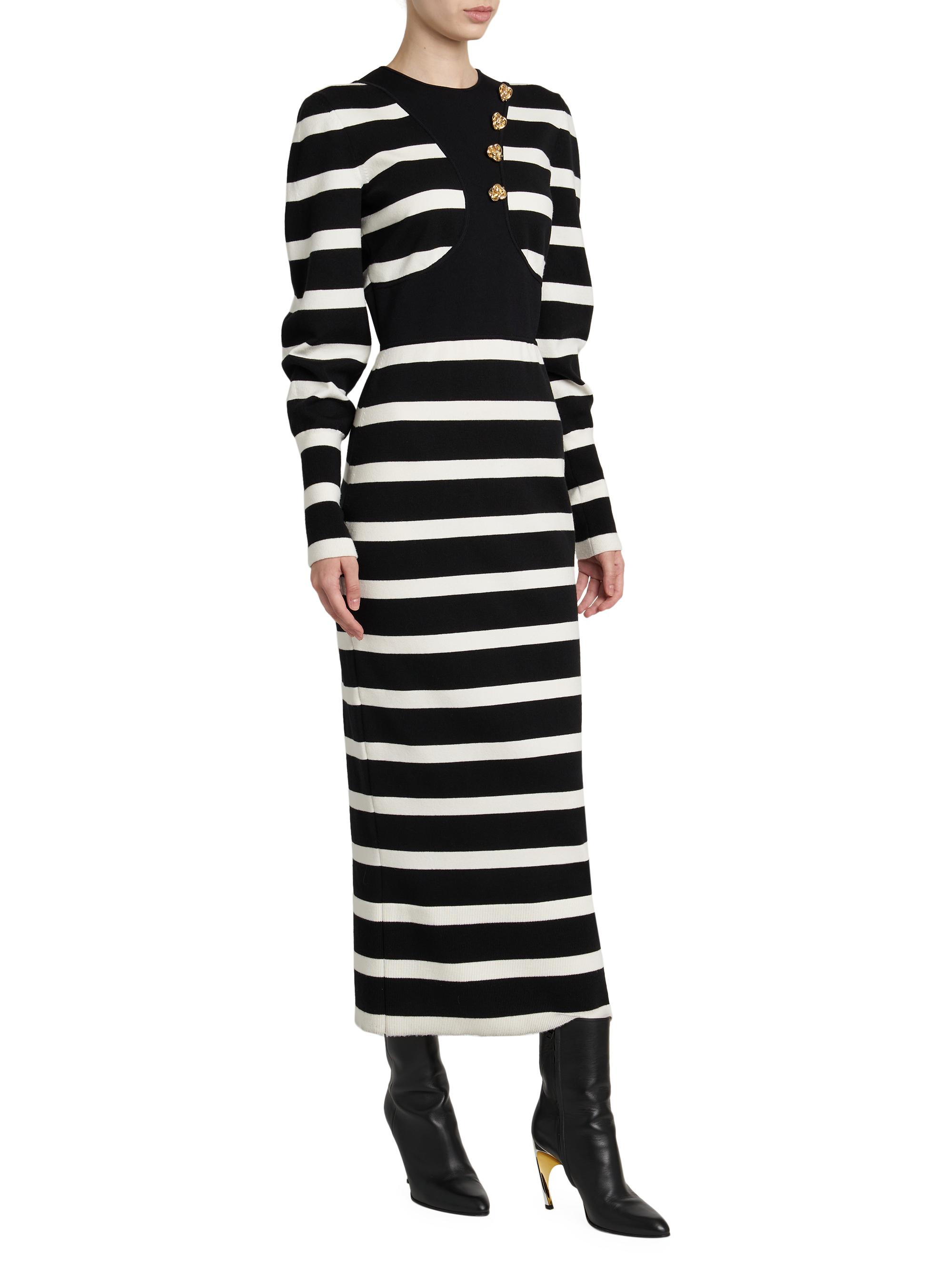 Alexander McQueen Striped Wool-Blend Harness Midi-Dress