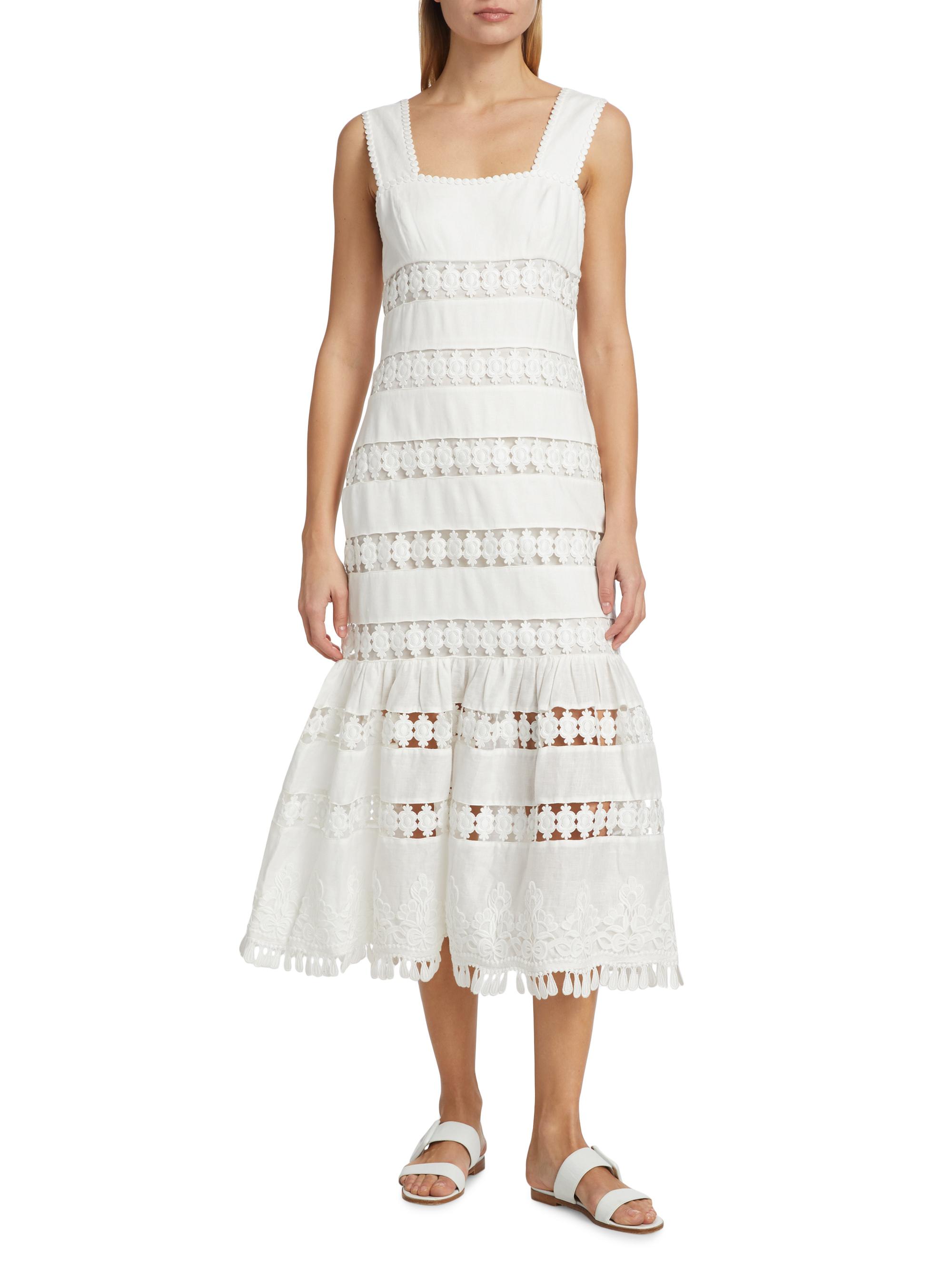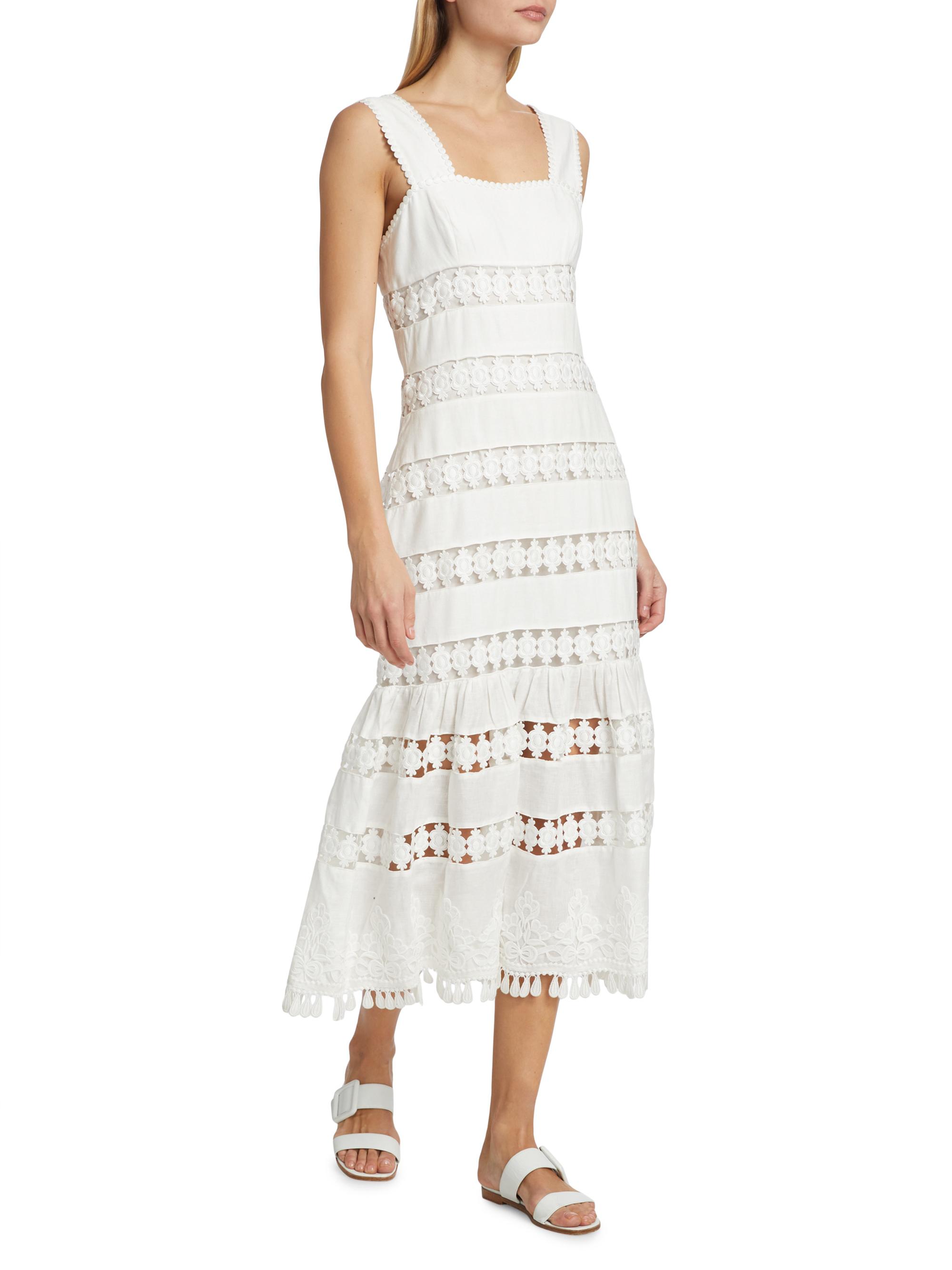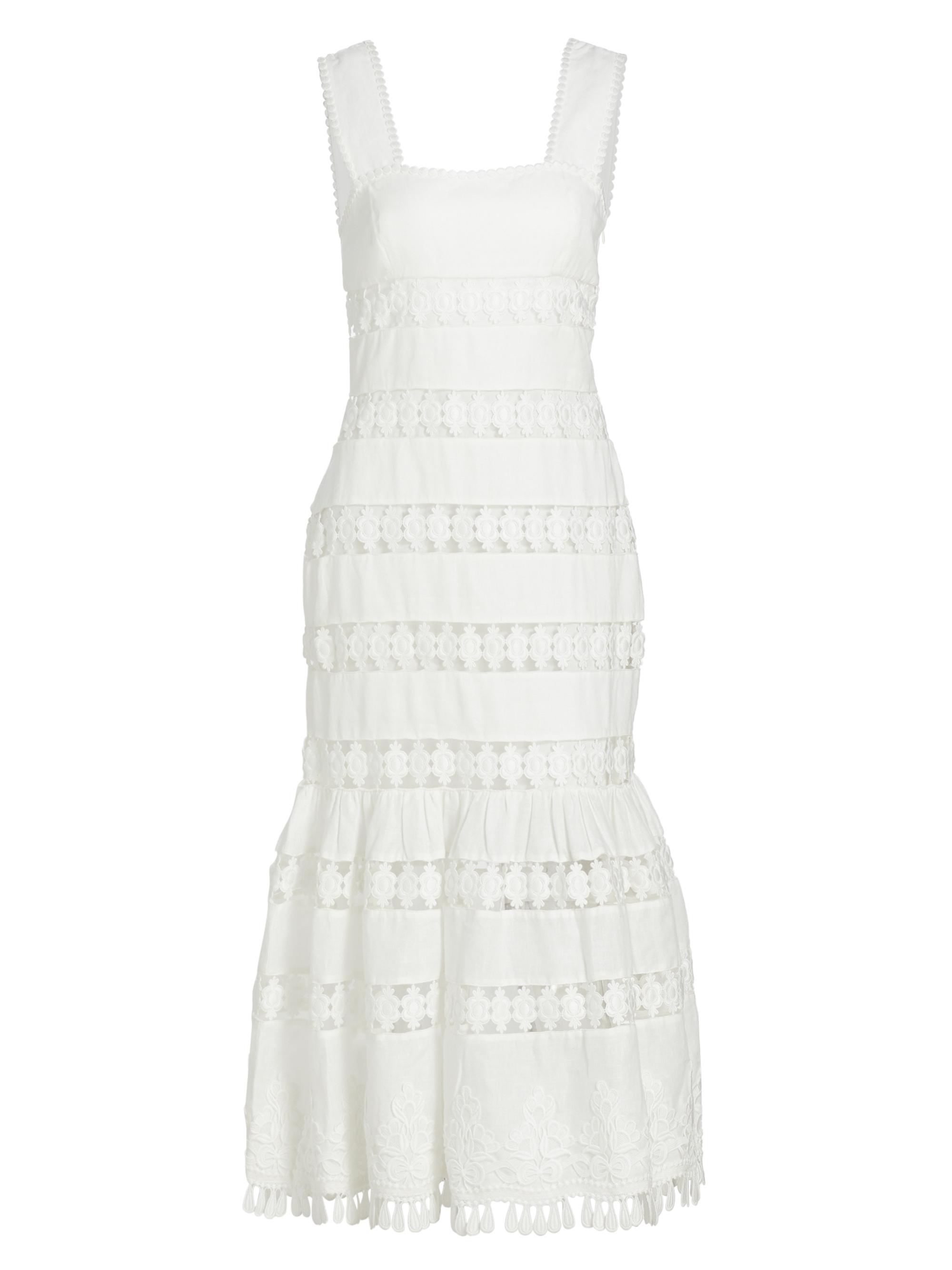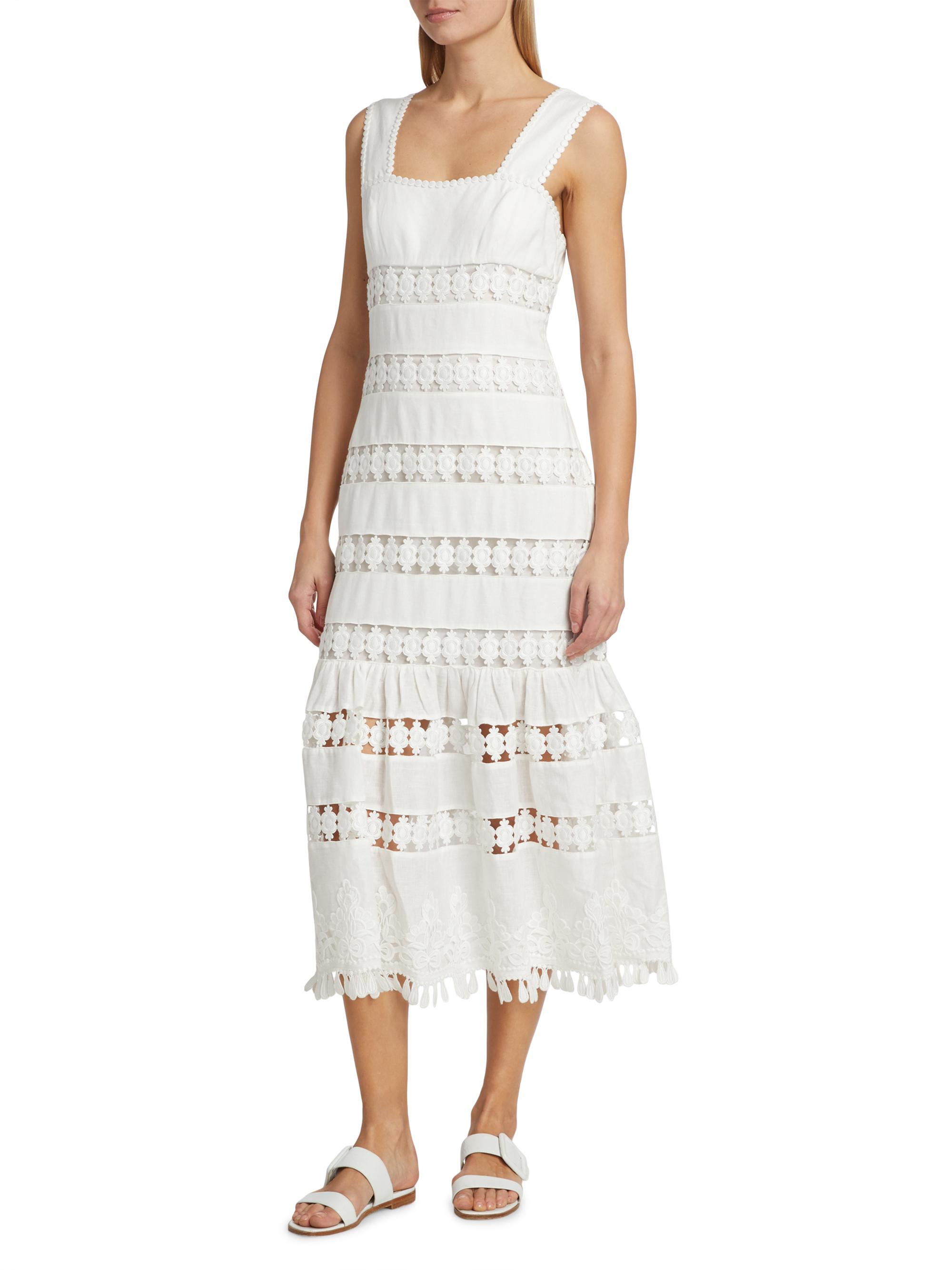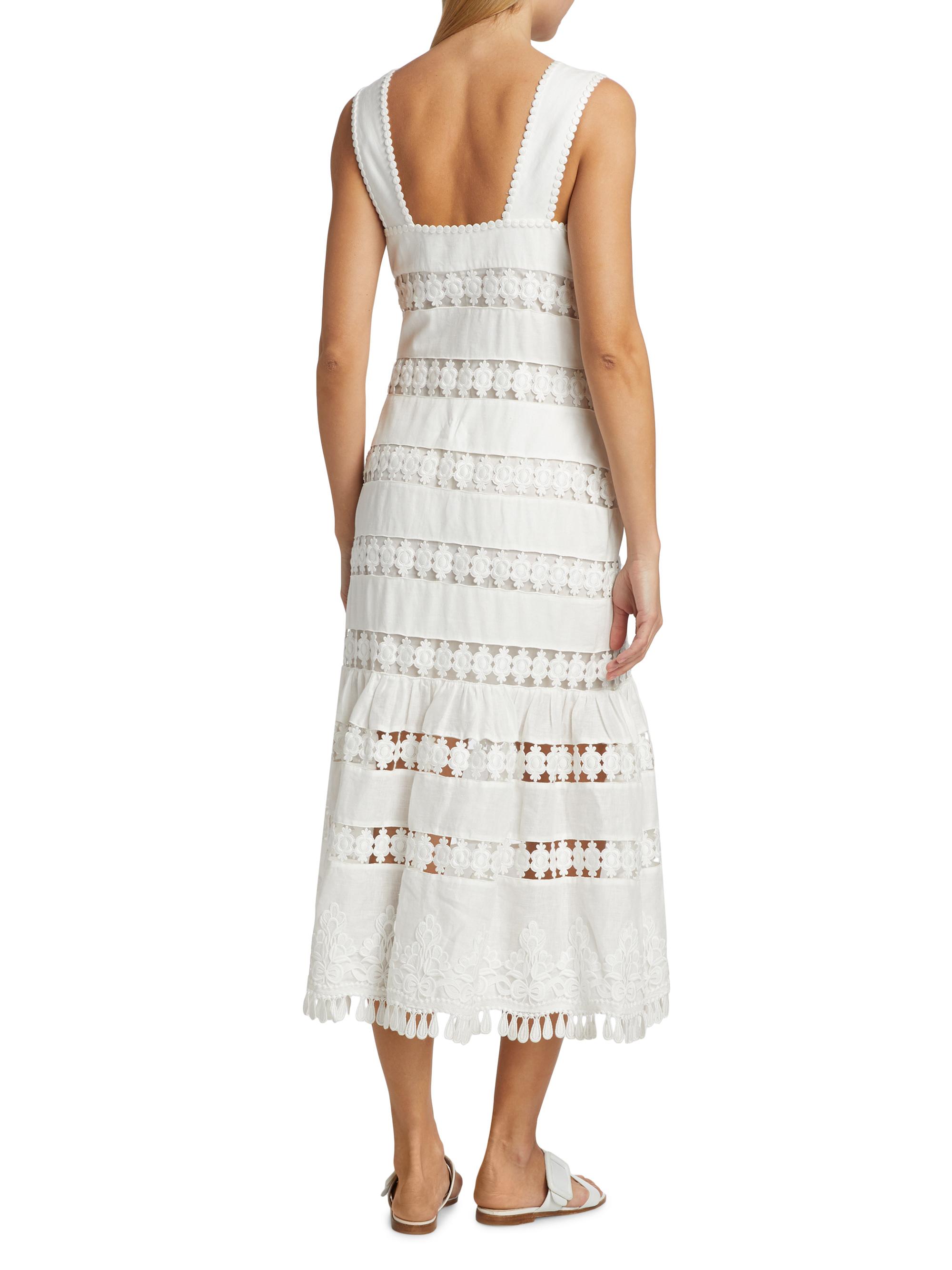 Zimmermann Pop Linen Lace Paneled Midi-Dress
