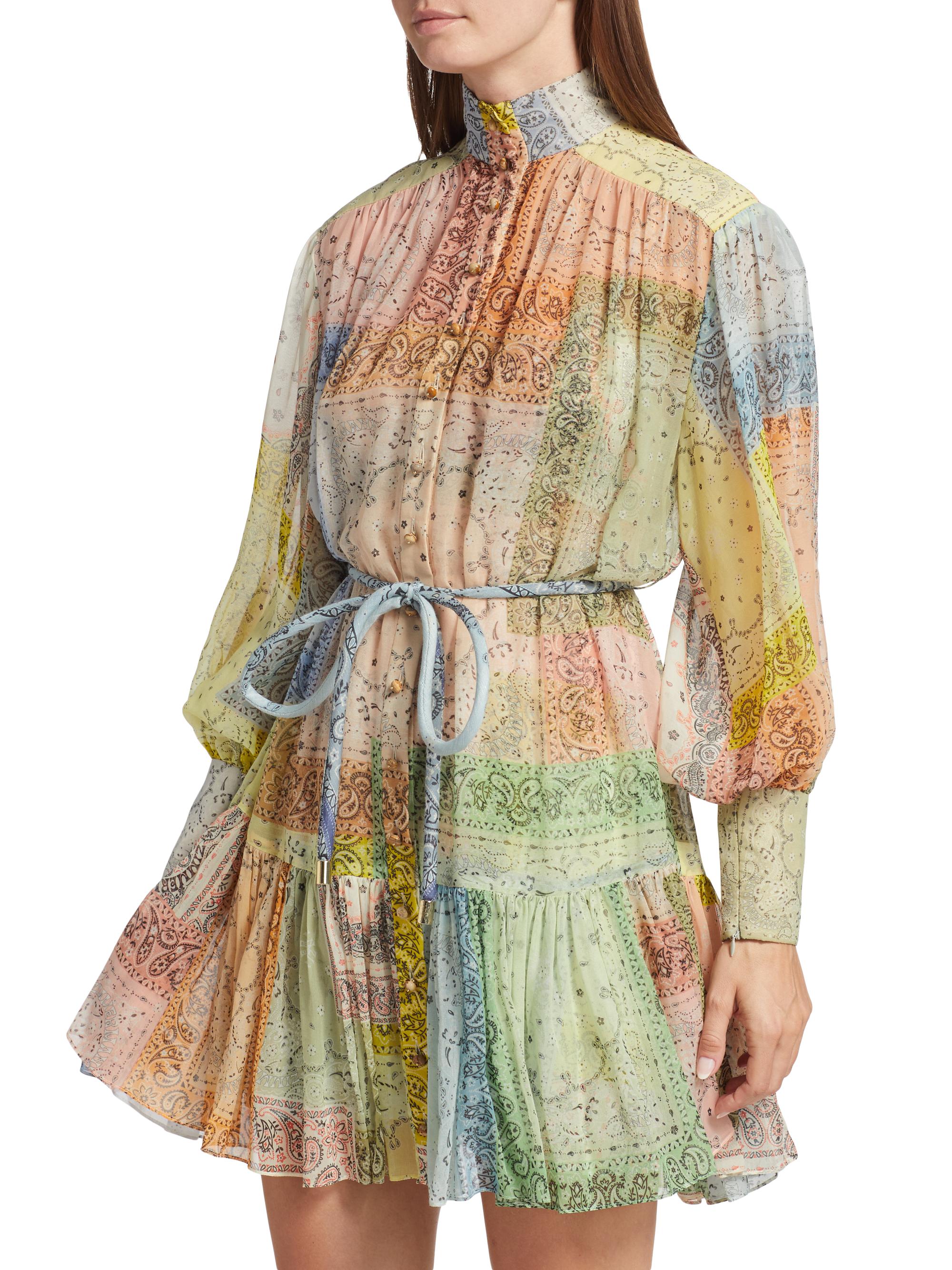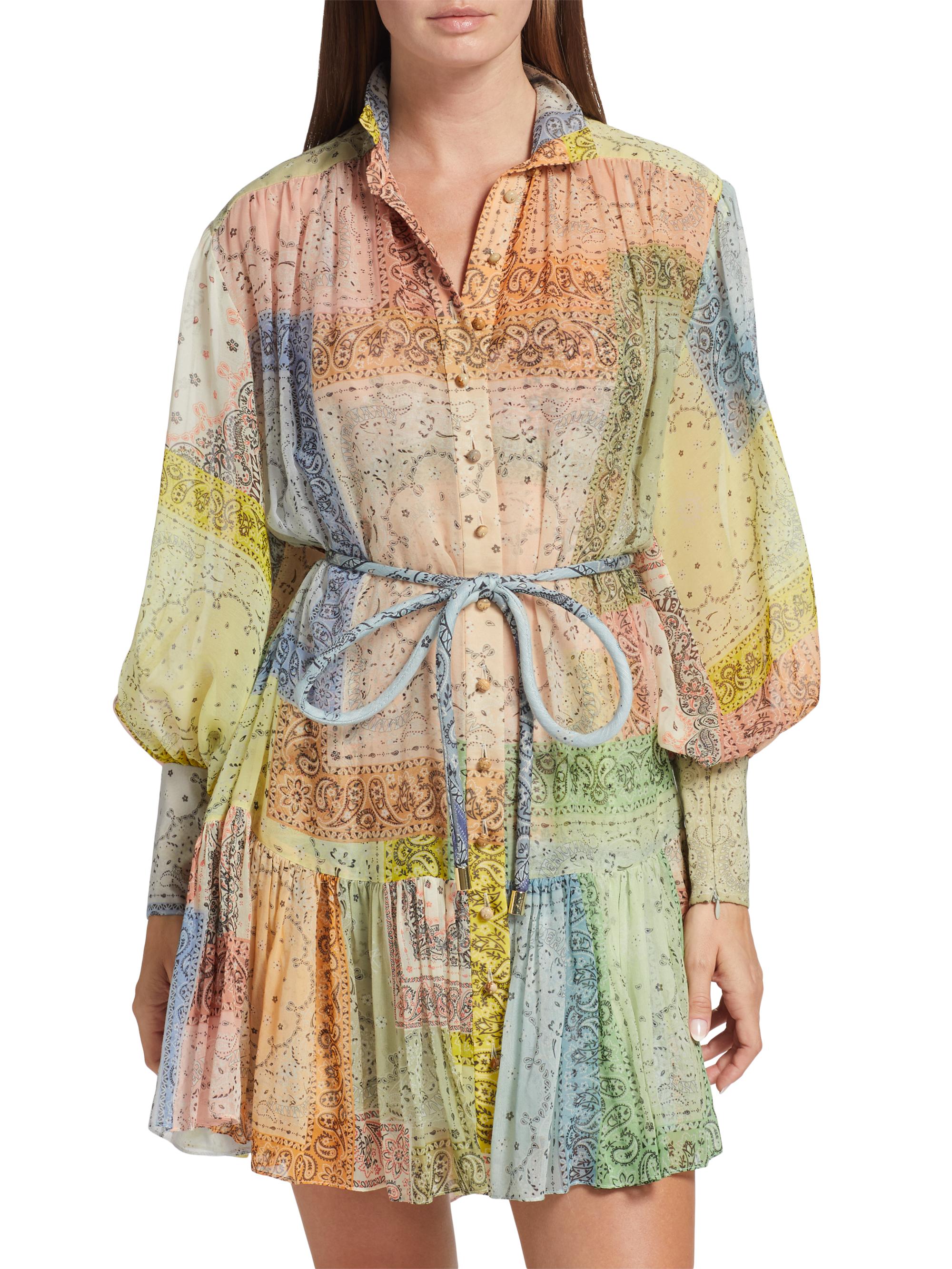 Zimmermann Matchmaker Lantern Belted Cotton & Silk Minidress