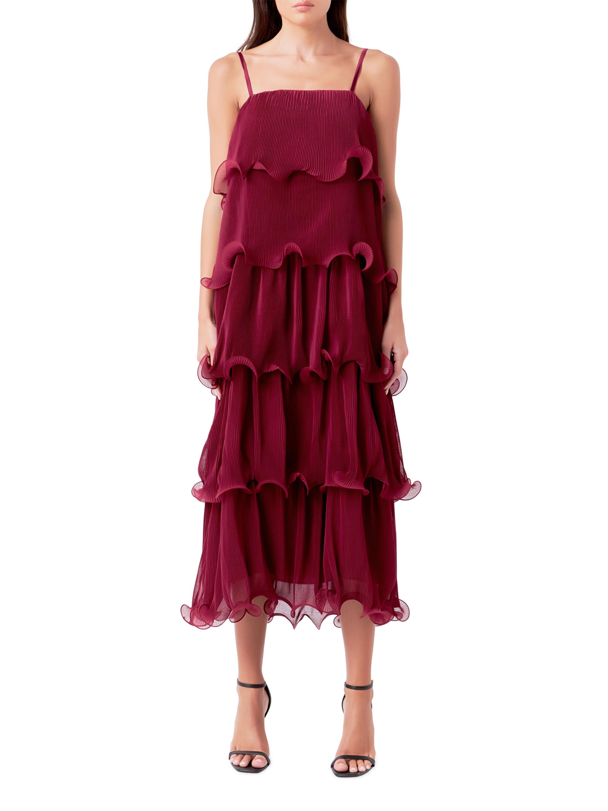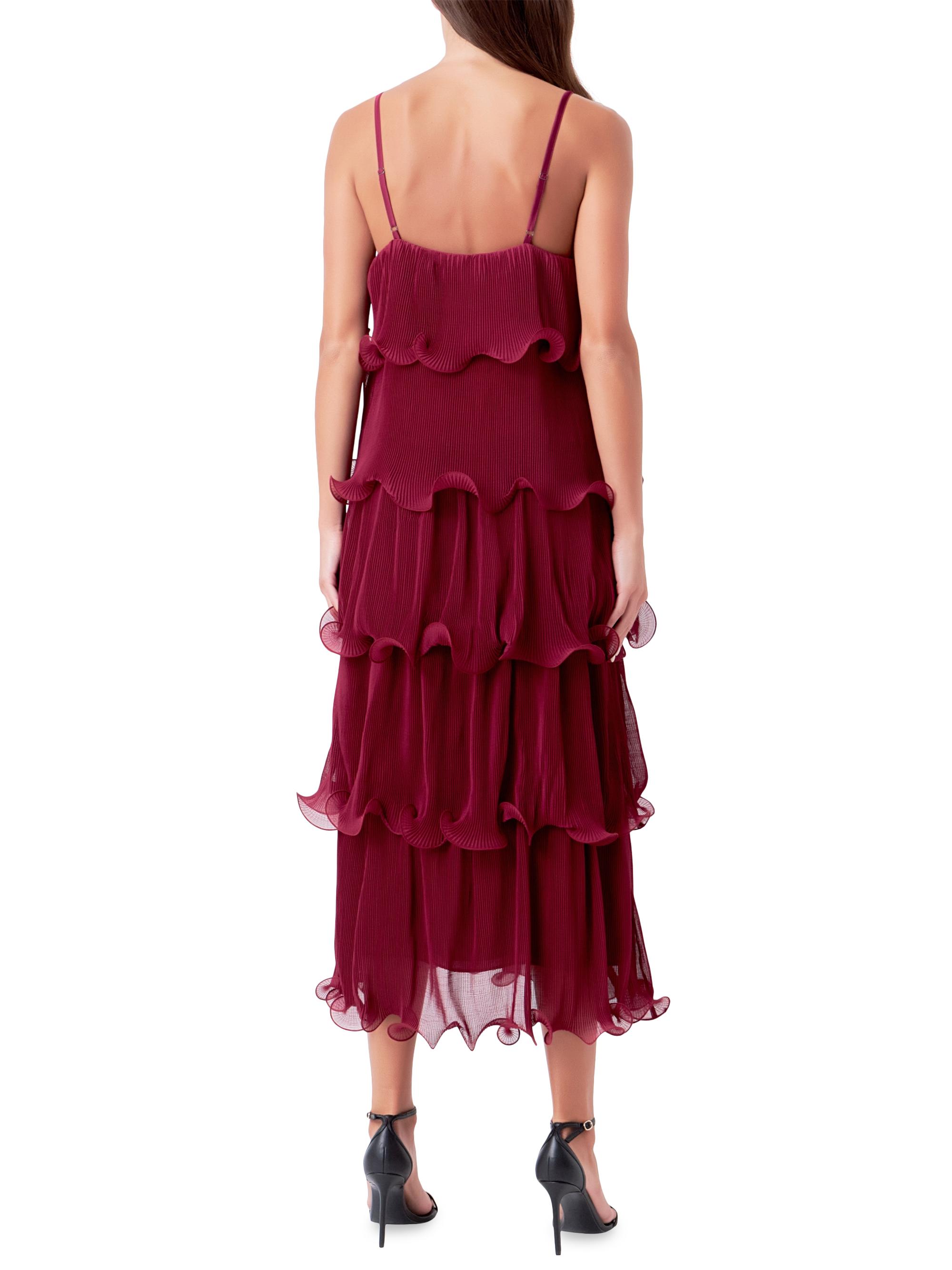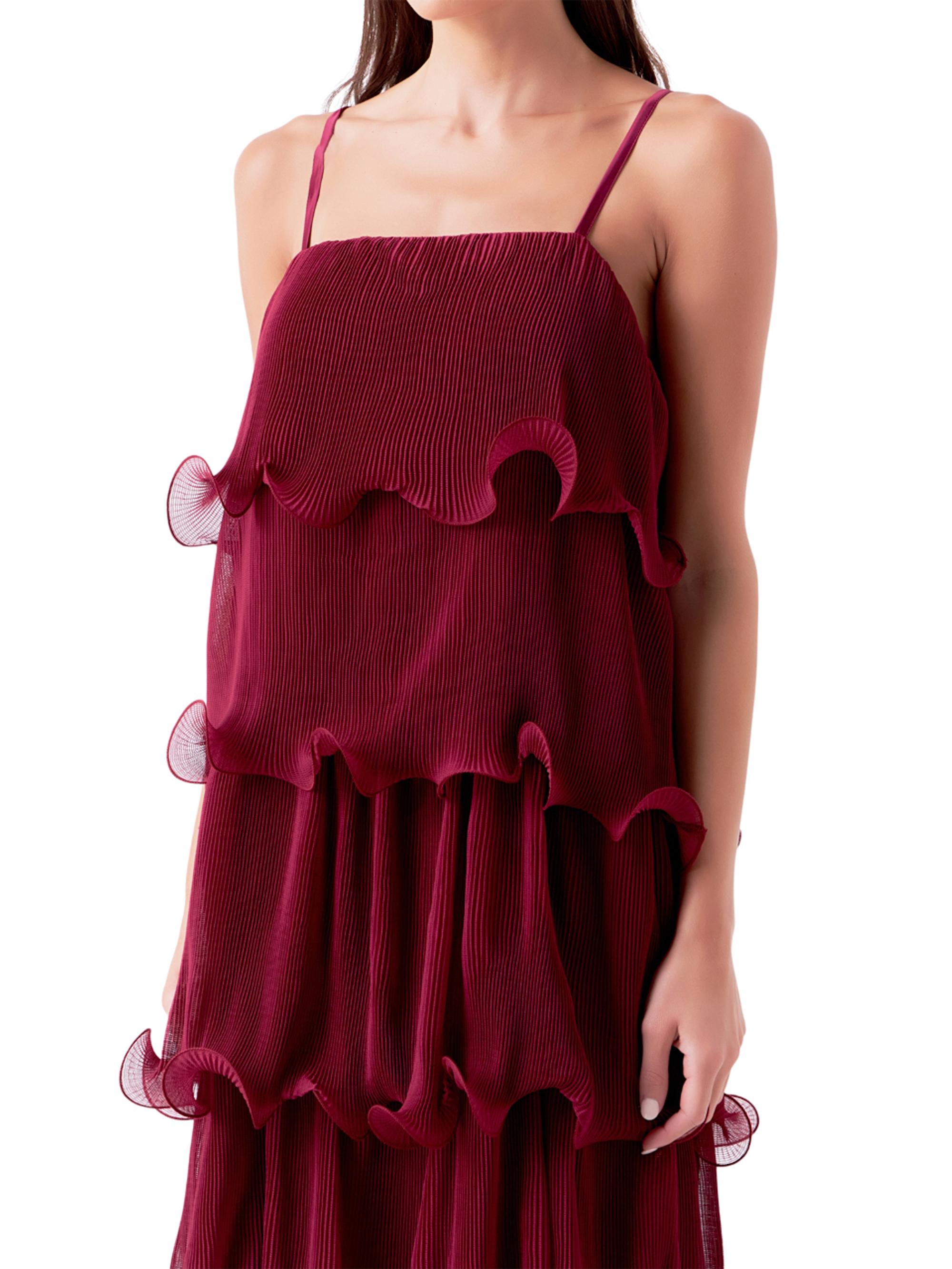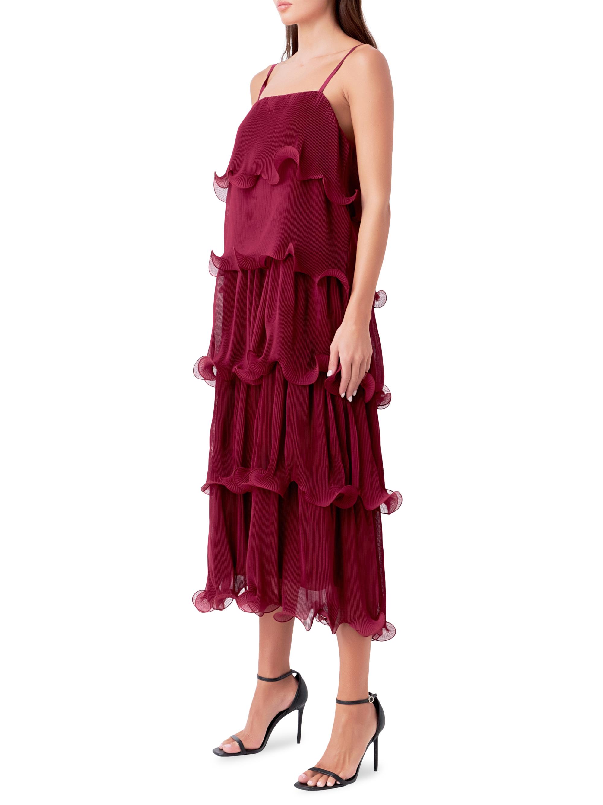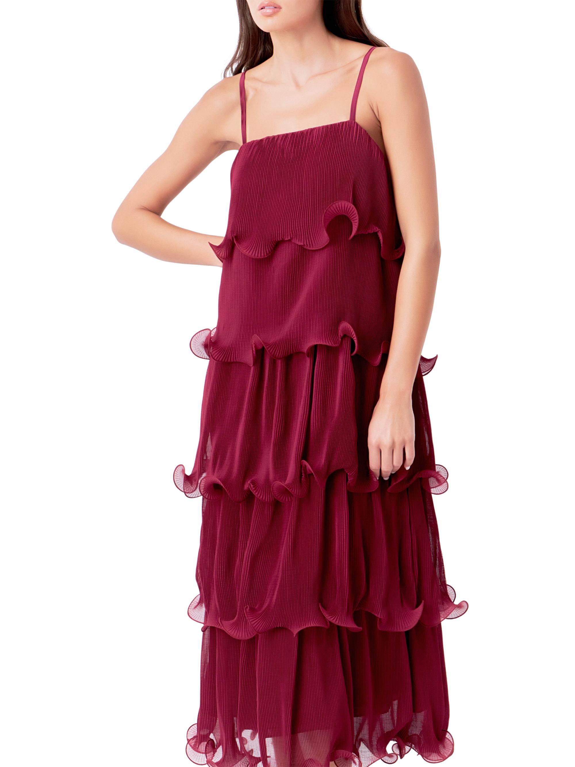Endless Rose Pleated Tiered Long Dress BURGUNDY