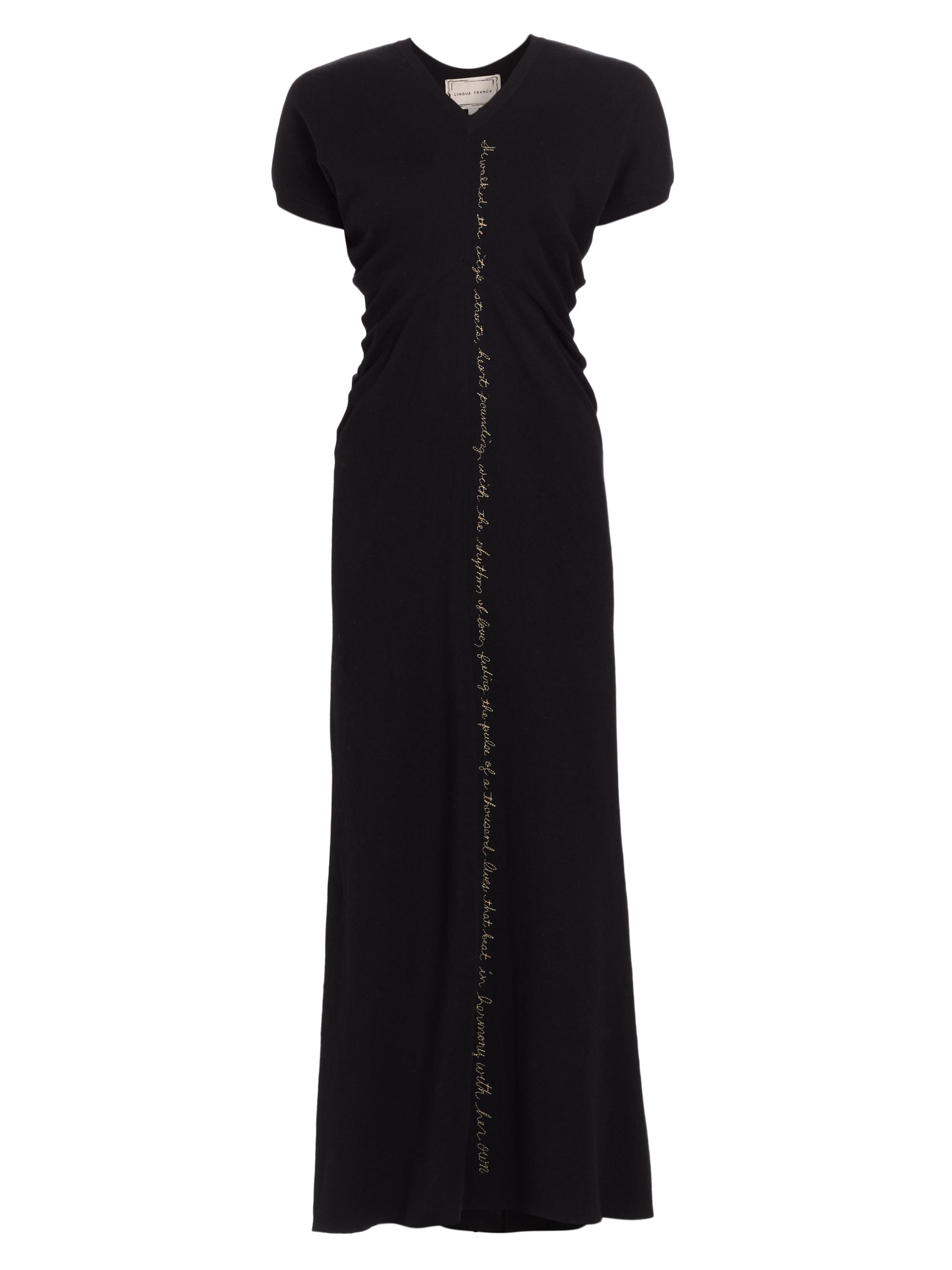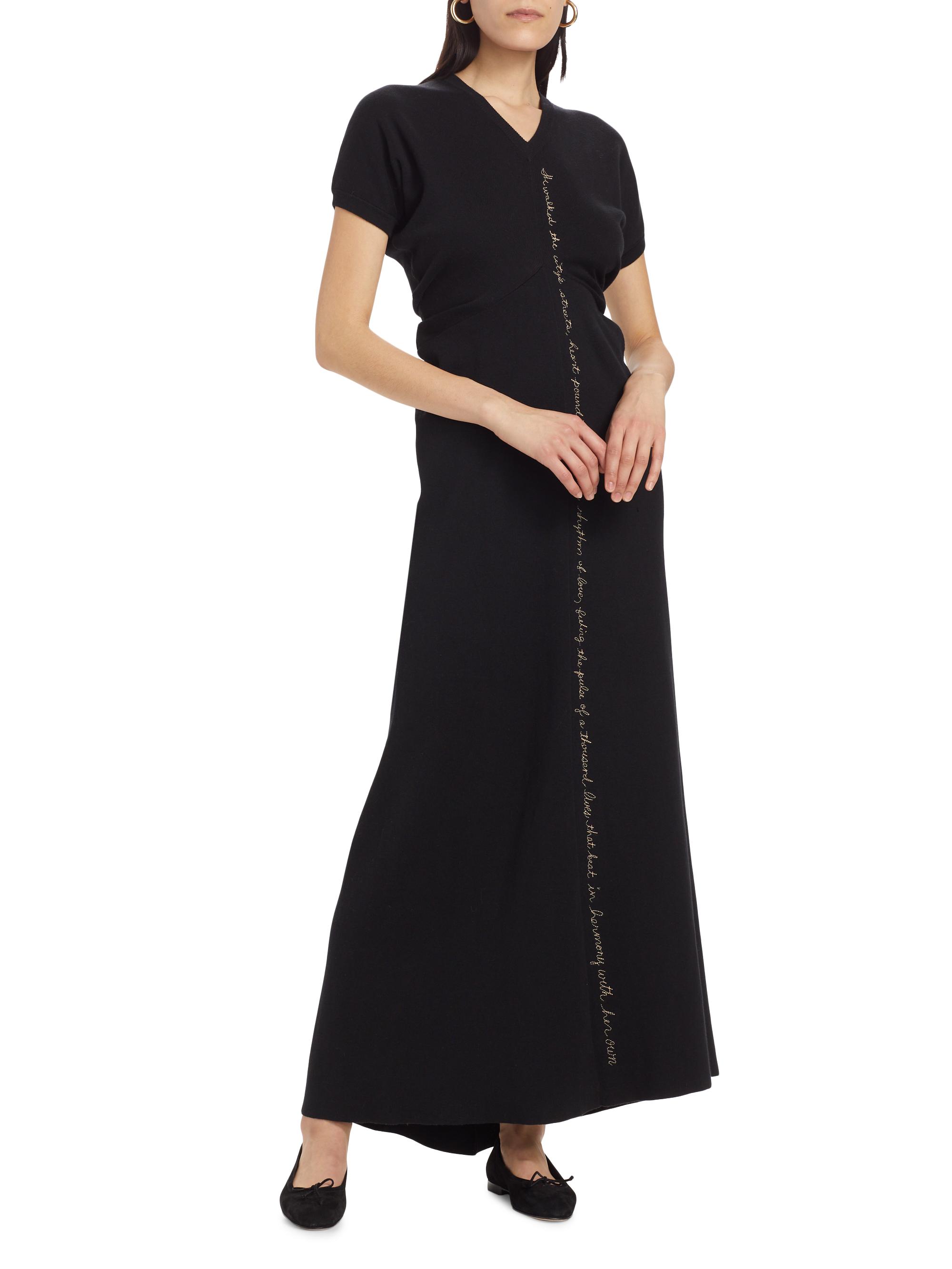 Lingua Franca Jane Embroidered Knit Maxi Dress